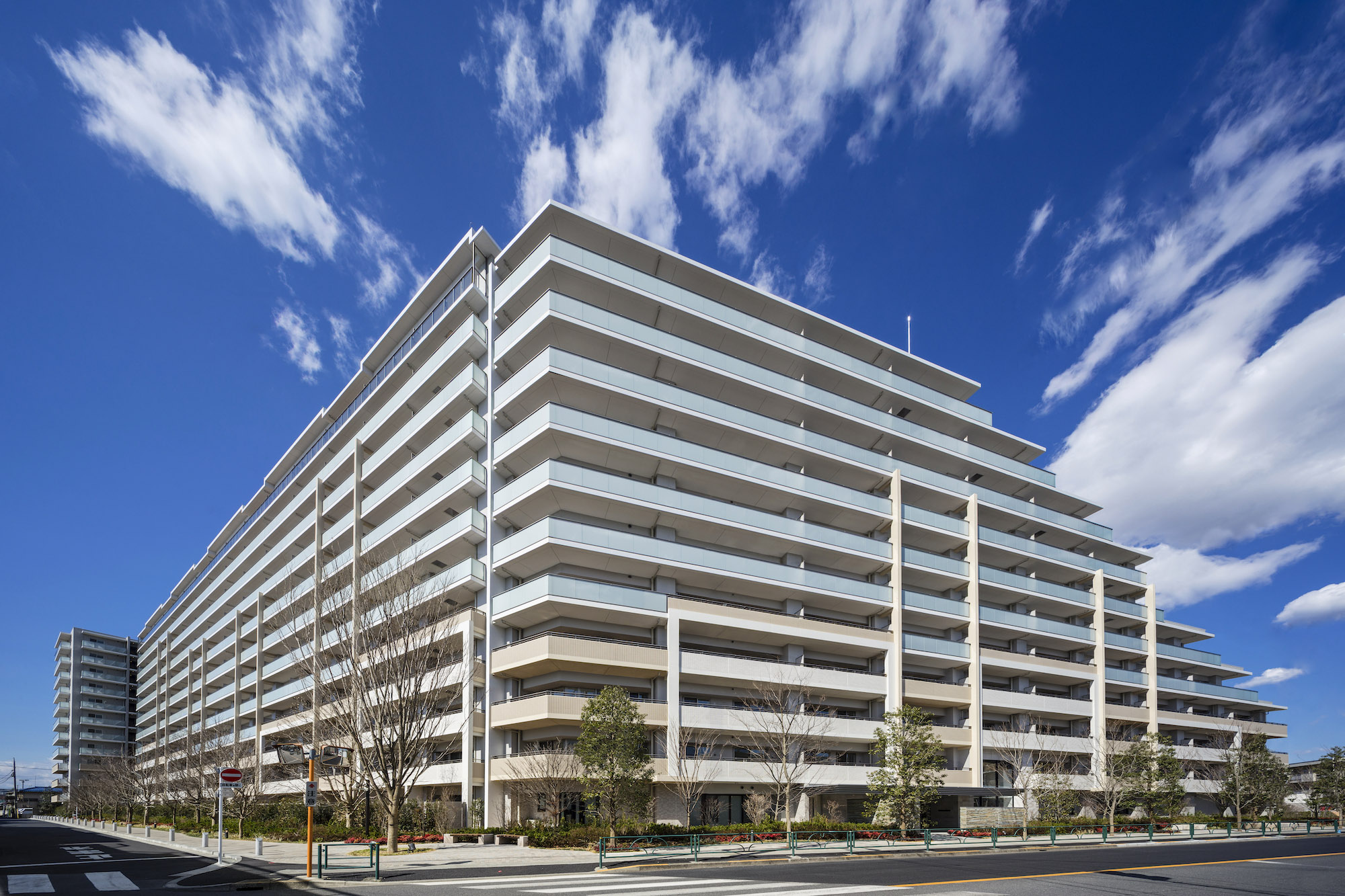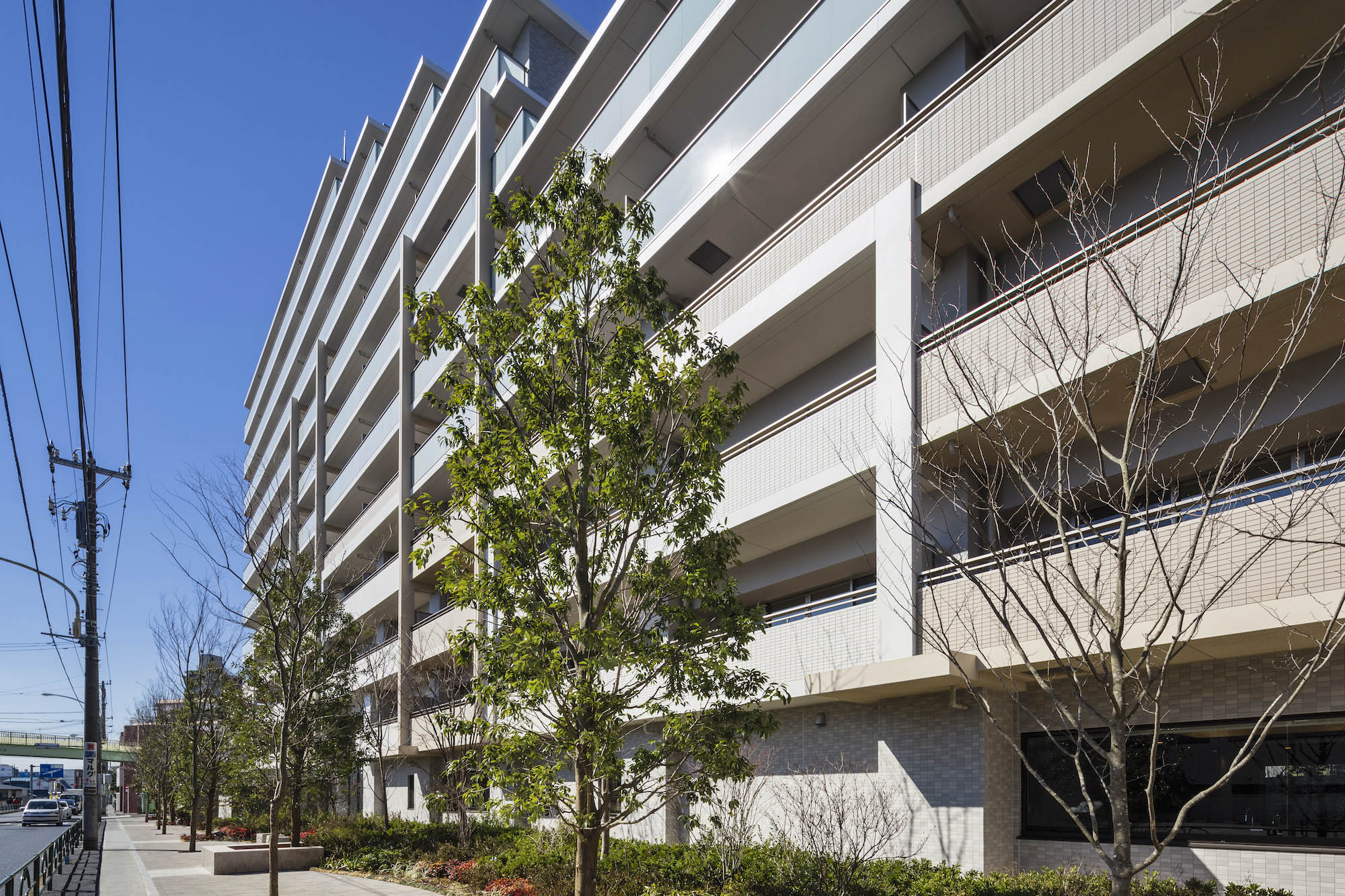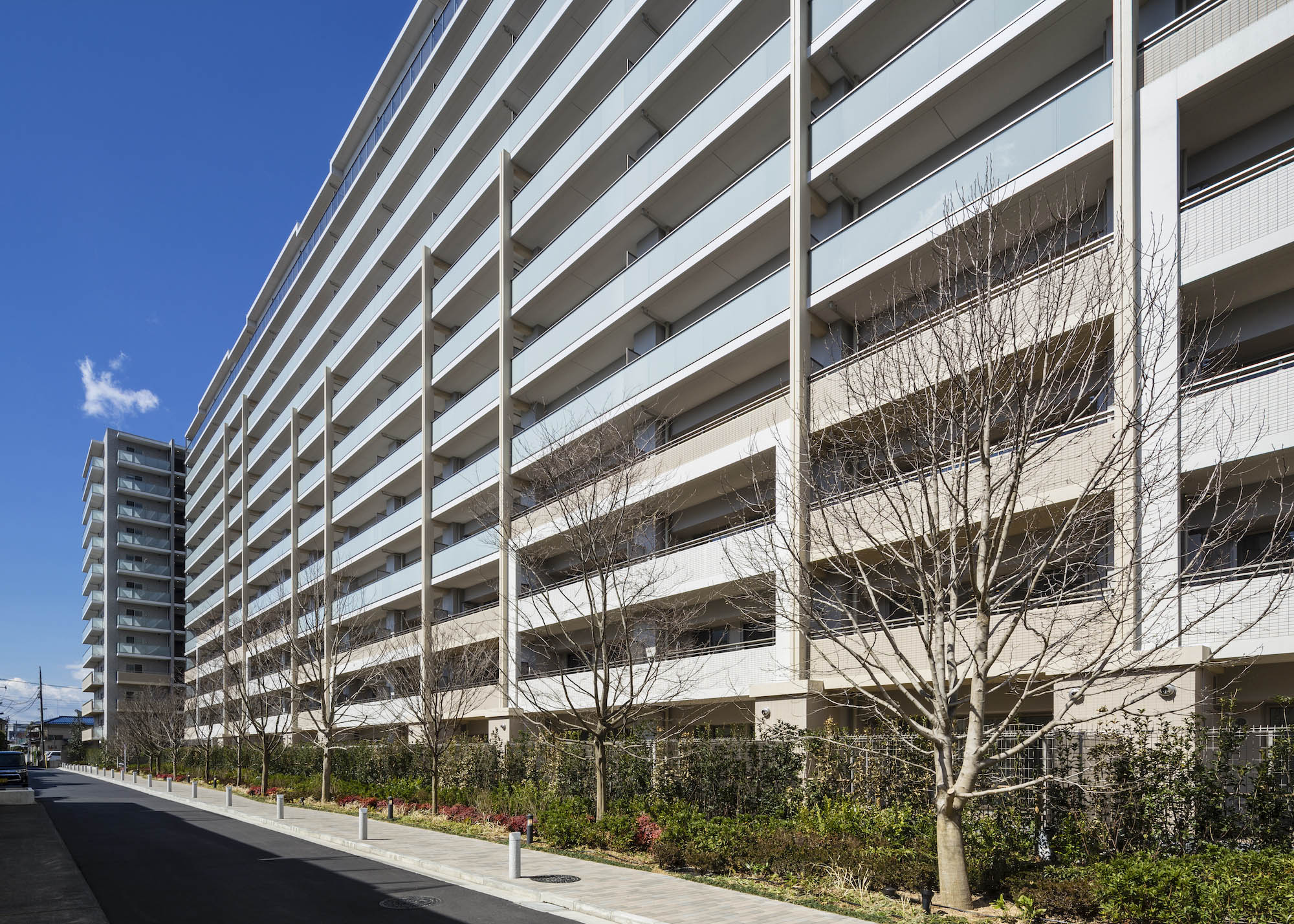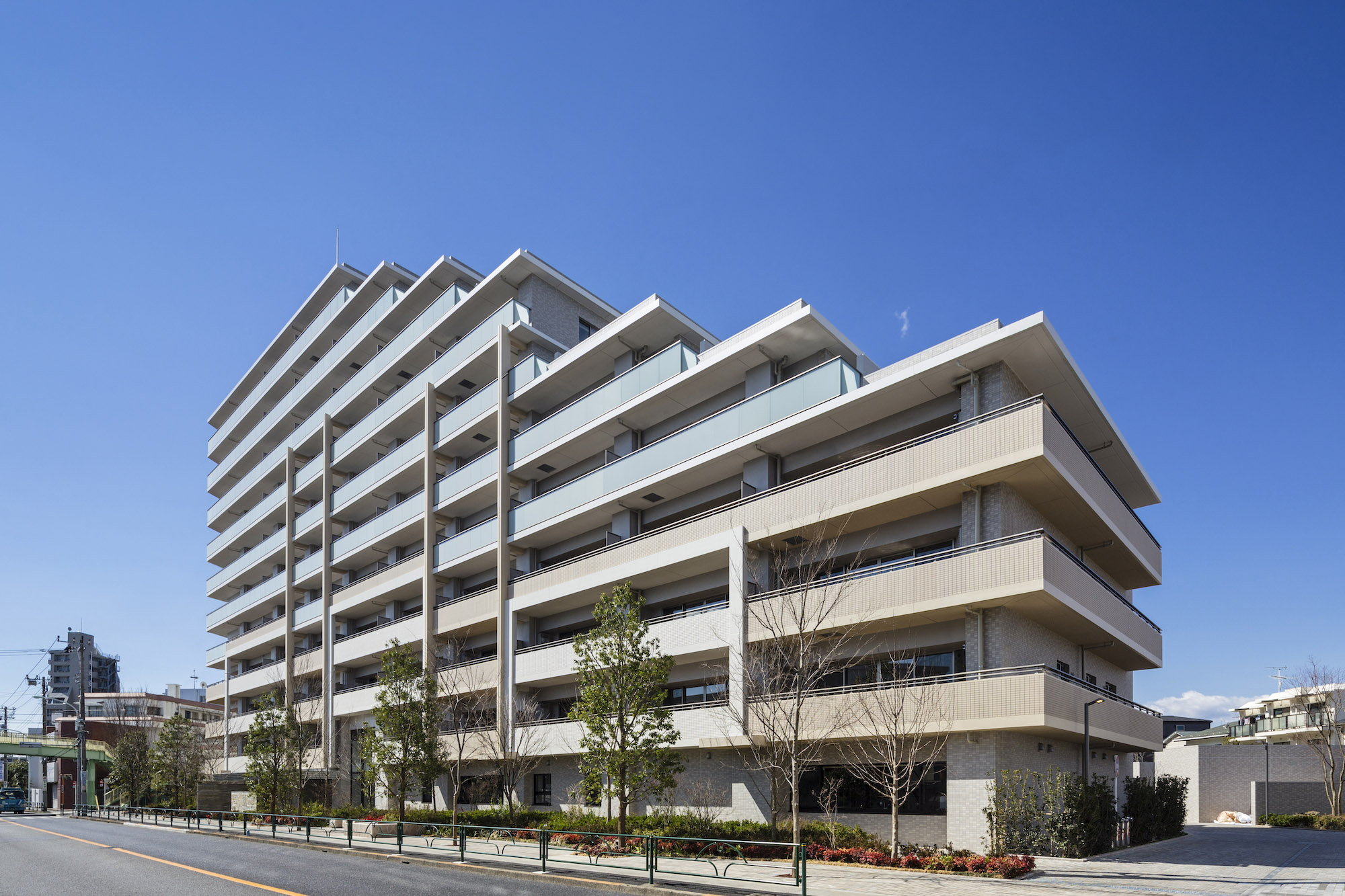 大らかな空、爽やかな風、豊かな大地を育んできた川などの立川の自然要素を建物デザインに踏襲。軽やかさや涼しさ、流れを感じる「縞模様」をモチーフとして、全体が表現されています。リズム感を持たせたタイル構成や飾り柱のマリオン、空を映し込むガラス手すりなどさまざまな工夫を重ねて、自然の美しさと現代的な造形を融合。地域に調和する表情と風情を演出しています。