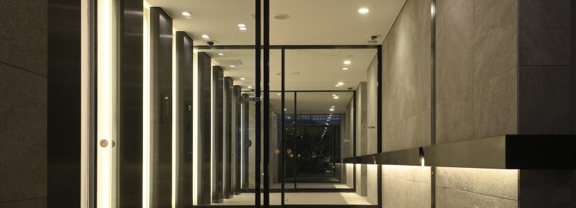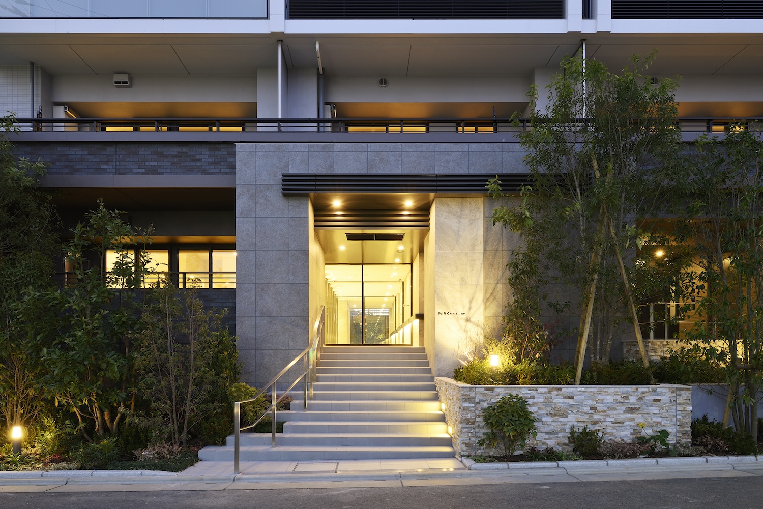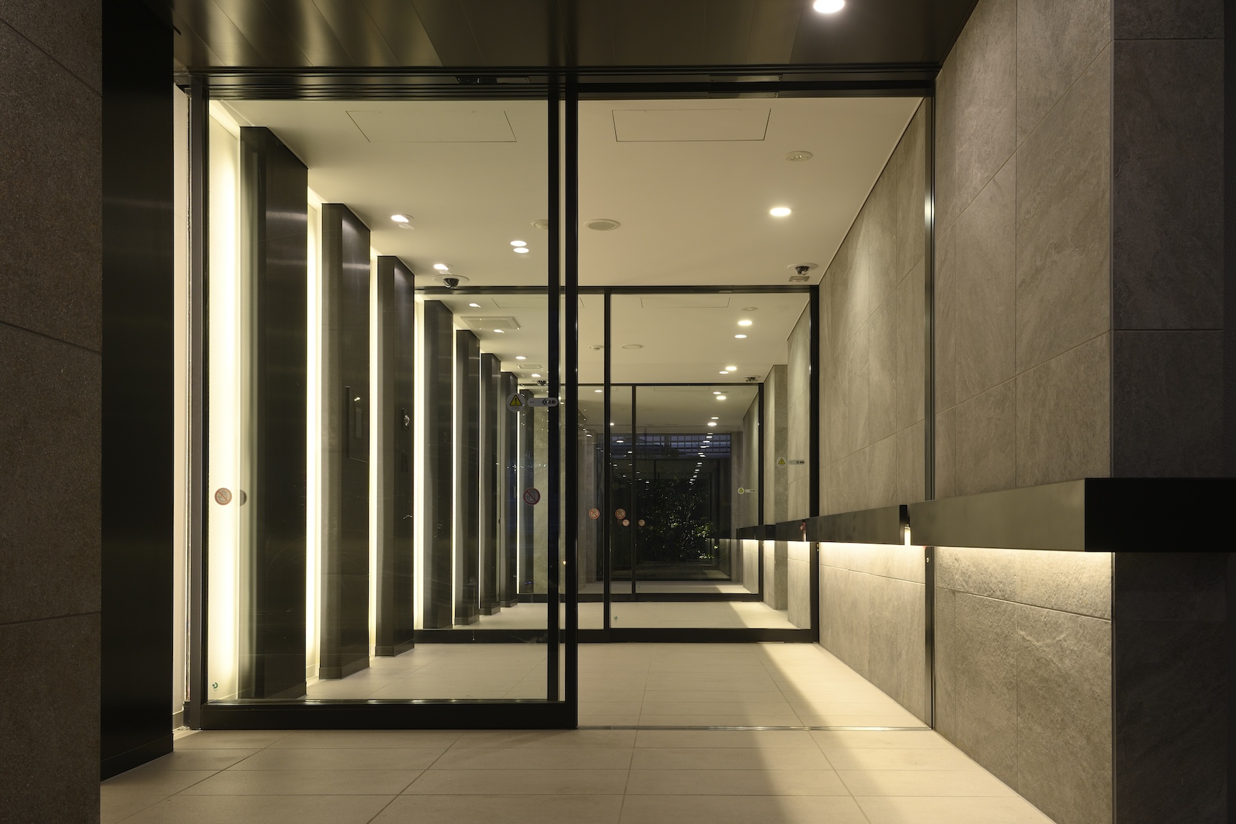 豊かな緑の潤いを感じながら、ゆったりとした階段を上がっていけば、悠然と佇むゲートがお出迎え。高品位レジデンスの顔にふさわしいエントランスは、ここから出かけ、ここに戻ってくる、そんな日常のシーンでも、上質な暮らしの歓びを実感させてくれます。また、入って正面には、季節ごとの景色が愉しめる坪庭を配置。エントランスホールからエレベーターホールにかけての空間に明るさと開放感をもたらし、日常に潤いを与えます。