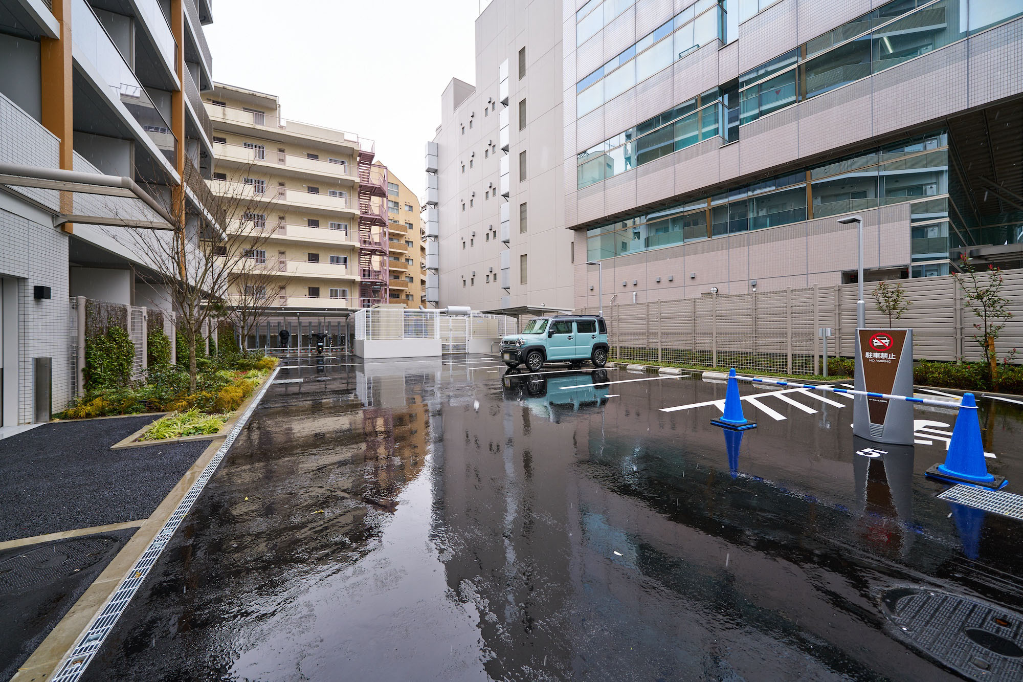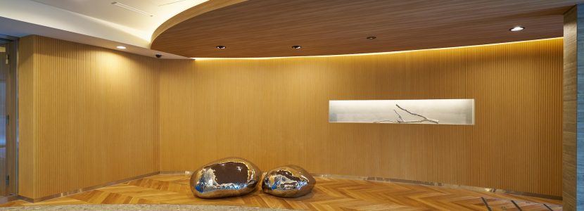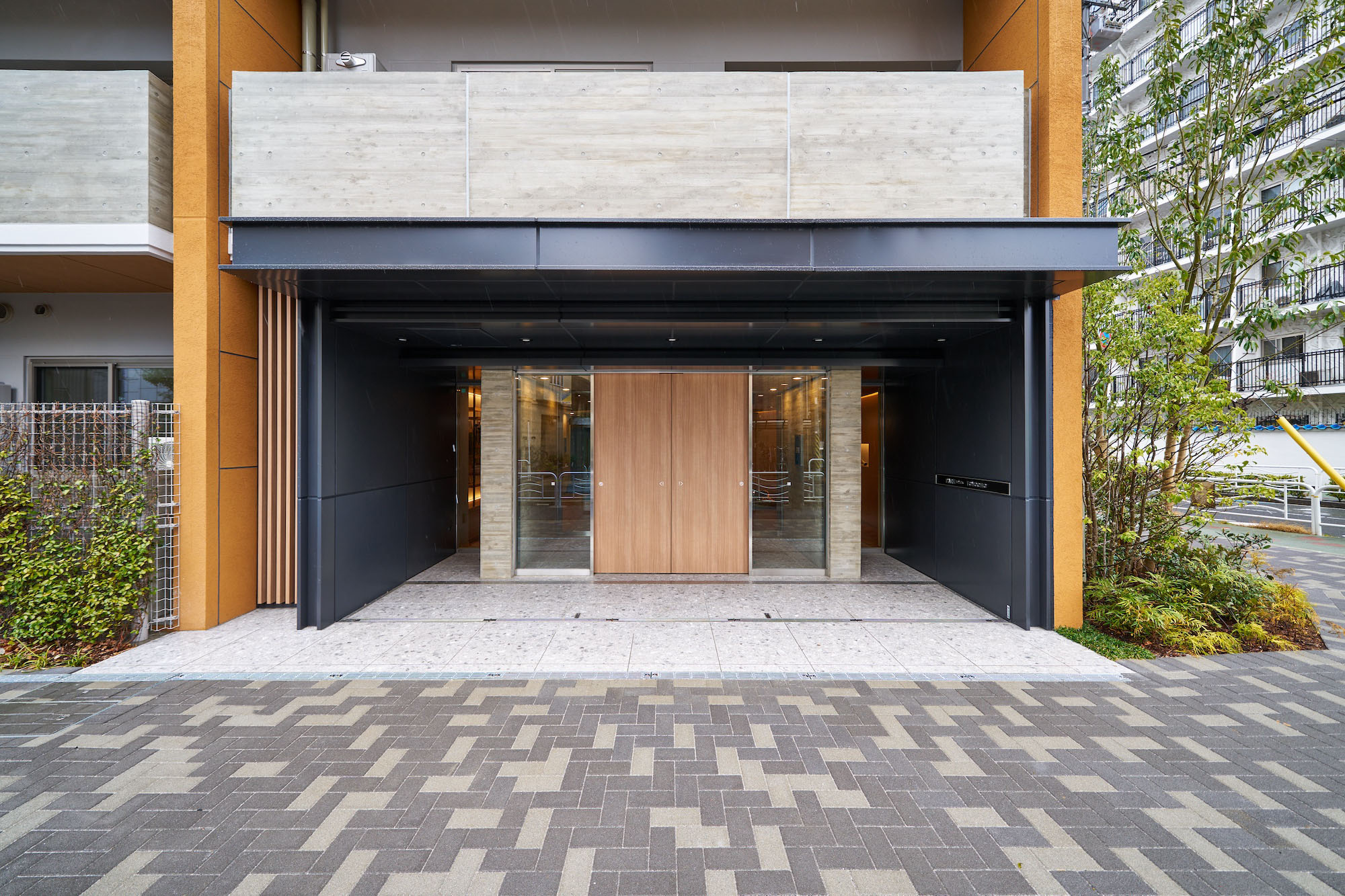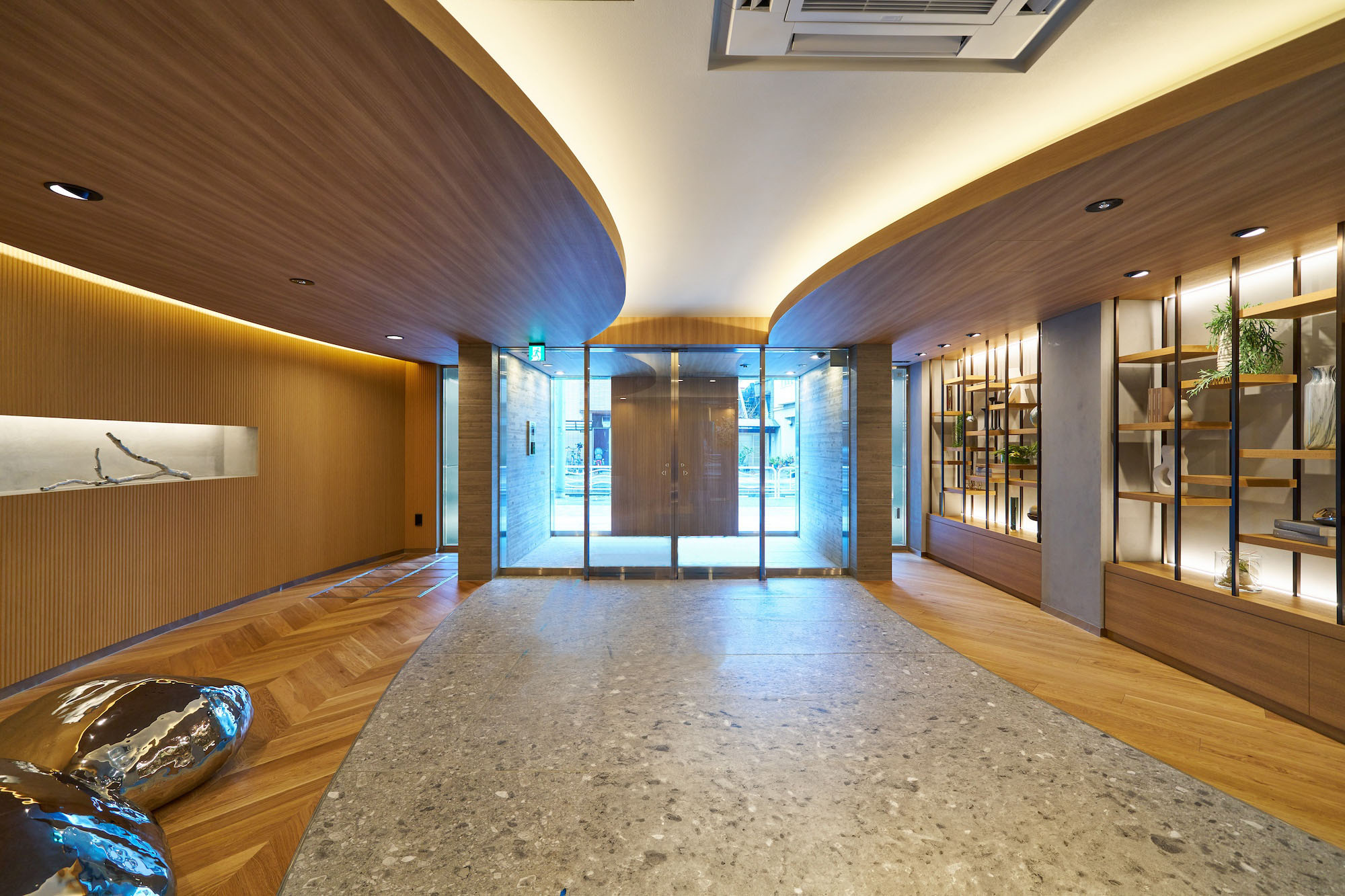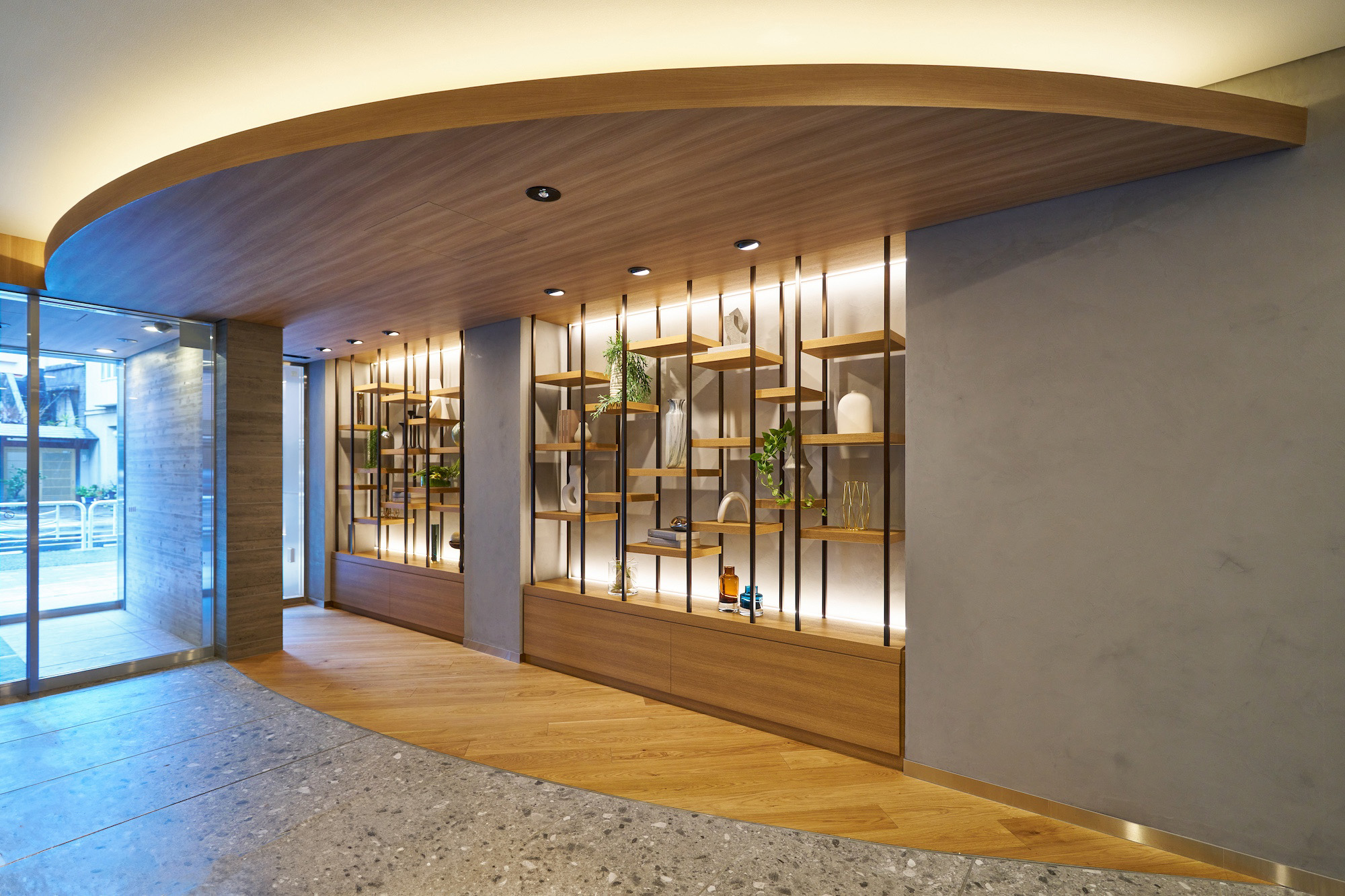 エントランスホールは、ふんだんに木を取り入れながら、かつての水運を想起させる緩やかなカーブを取り入れたデザイン。床面は川底を模した「研ぎ出し調のタイル」を採用し、折り上げ天井・間接照明で木の温かみを演出。壁面には縦ルーバーや木で構成された飾り棚を設え、心地良さに満ちた上質な迎賓空間に仕上げています。都心を満喫するライフスタイルにフィットする、プライベート性の高い内廊下設計は、ホテルライクな高質感と、雨や風はもちろん、他人の視線からも守るプライバシー性能。落ち着いた住戸アプローチが毎日の暮らしのクオリティを高めてくれます。