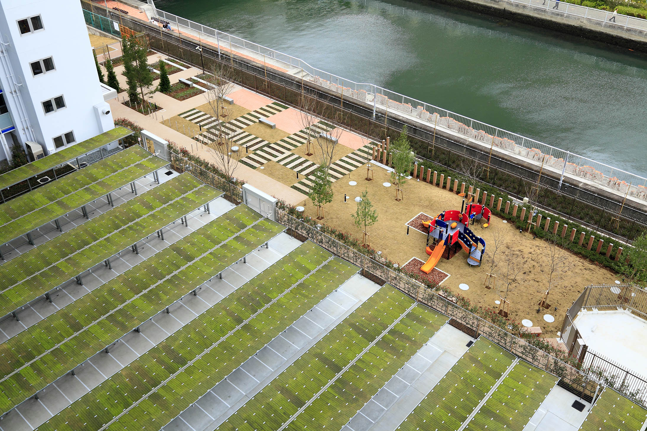 敷地の中心に位置し、ハーブの広場、サクラの広場、芝生の広場3つの広場で構成されています。
