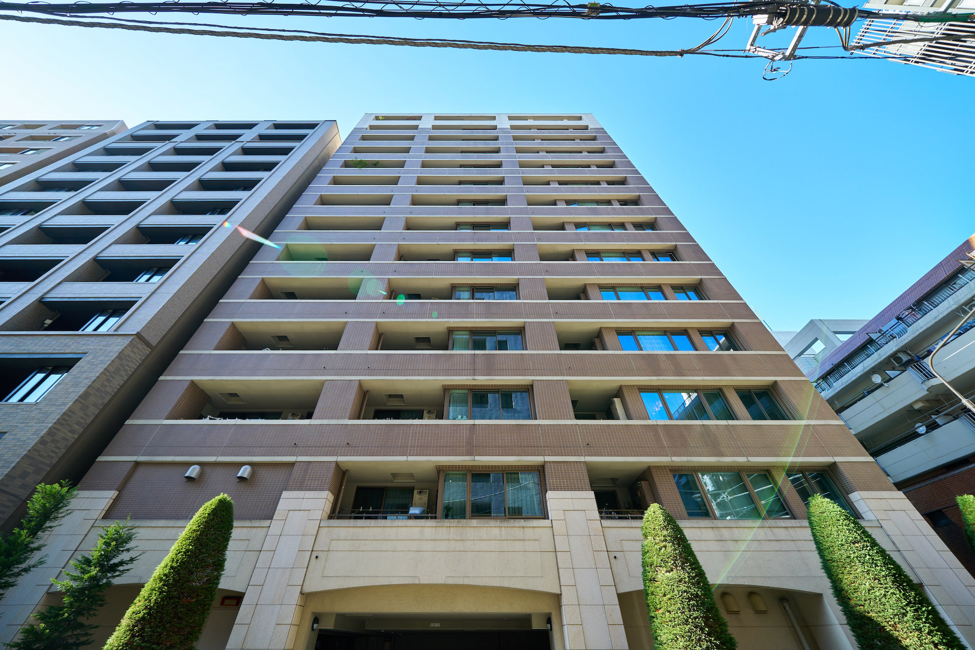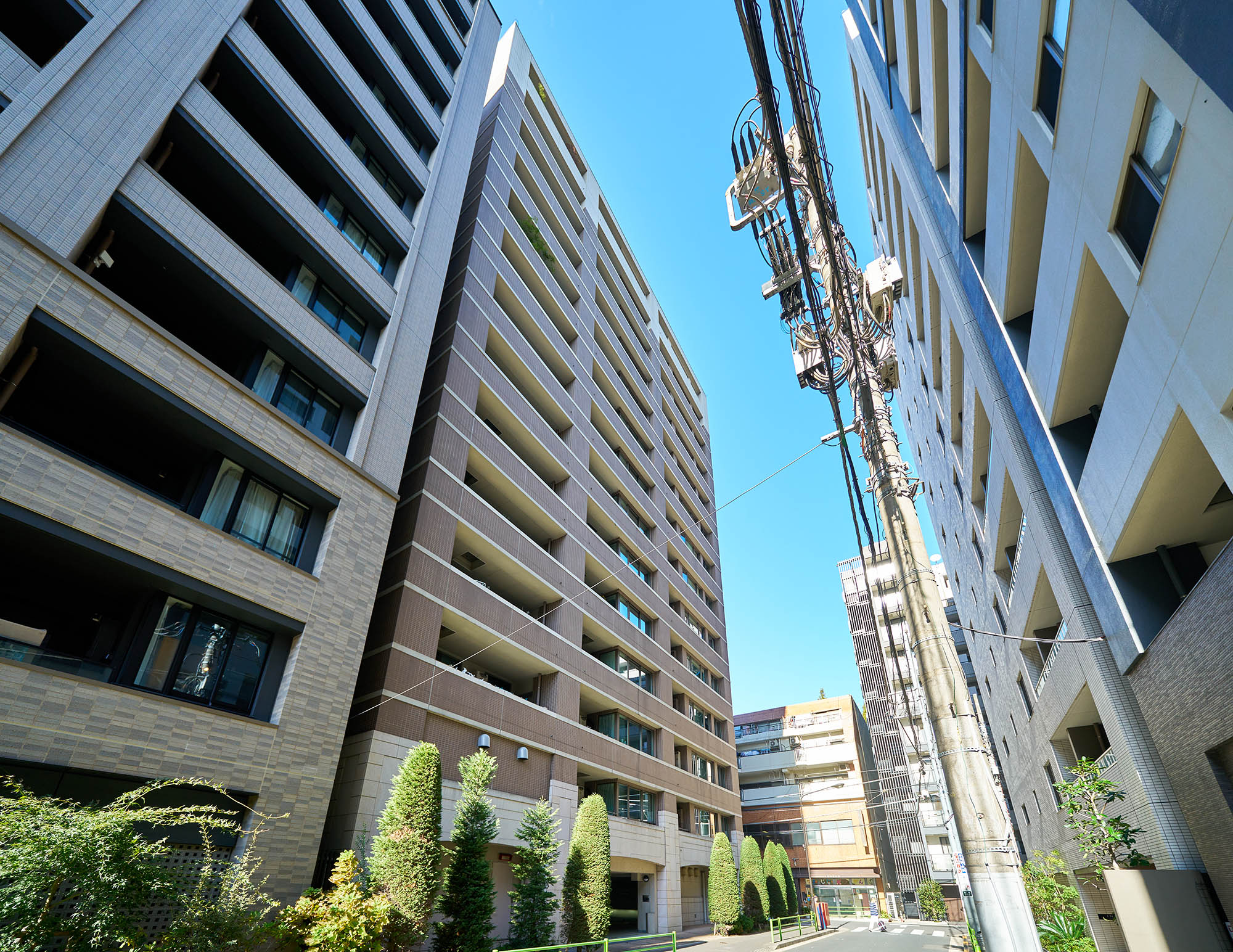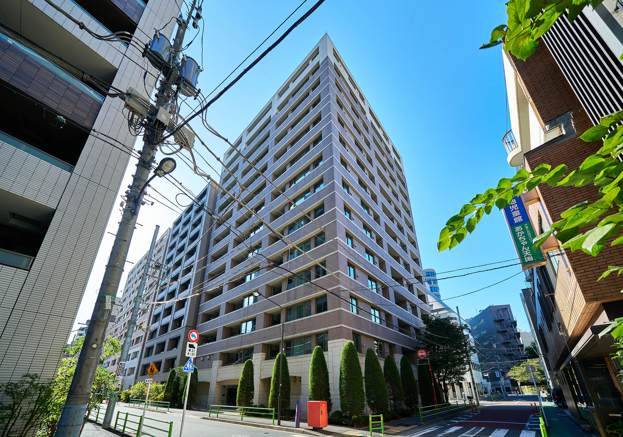 デザインのテーマはノスタルジー。築地付近は外国人居留地だった歴史があることから、モチーフとしてレンガを建築に取り入れ、街との一体感を演出しています。外装は織物のように陰影あるファサードを追求。基壇部は、赤茶色とのコントラストが印象的な、石貼と左官仕上げ。色やディテールにまでこだわった、新しさと懐かしさをあわせ持つ外観デザインです。