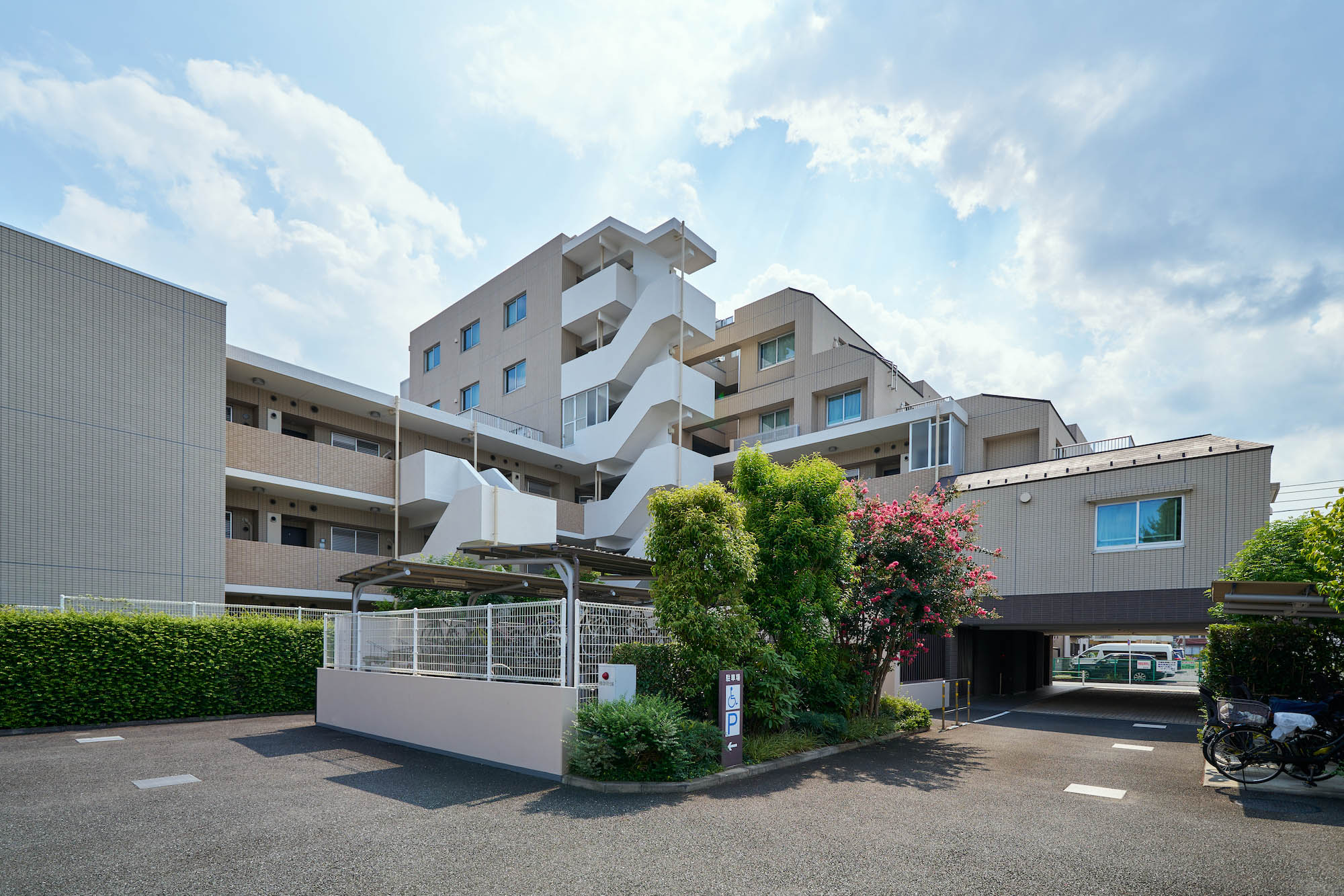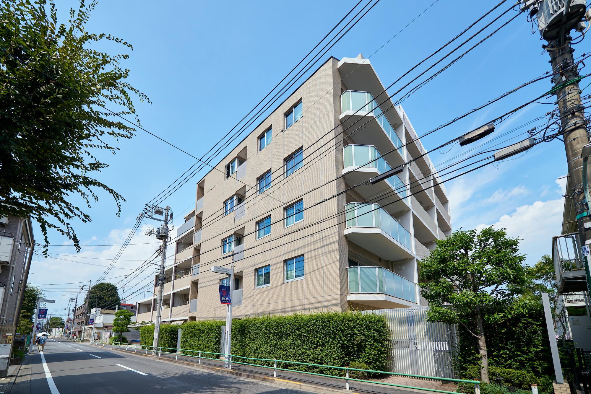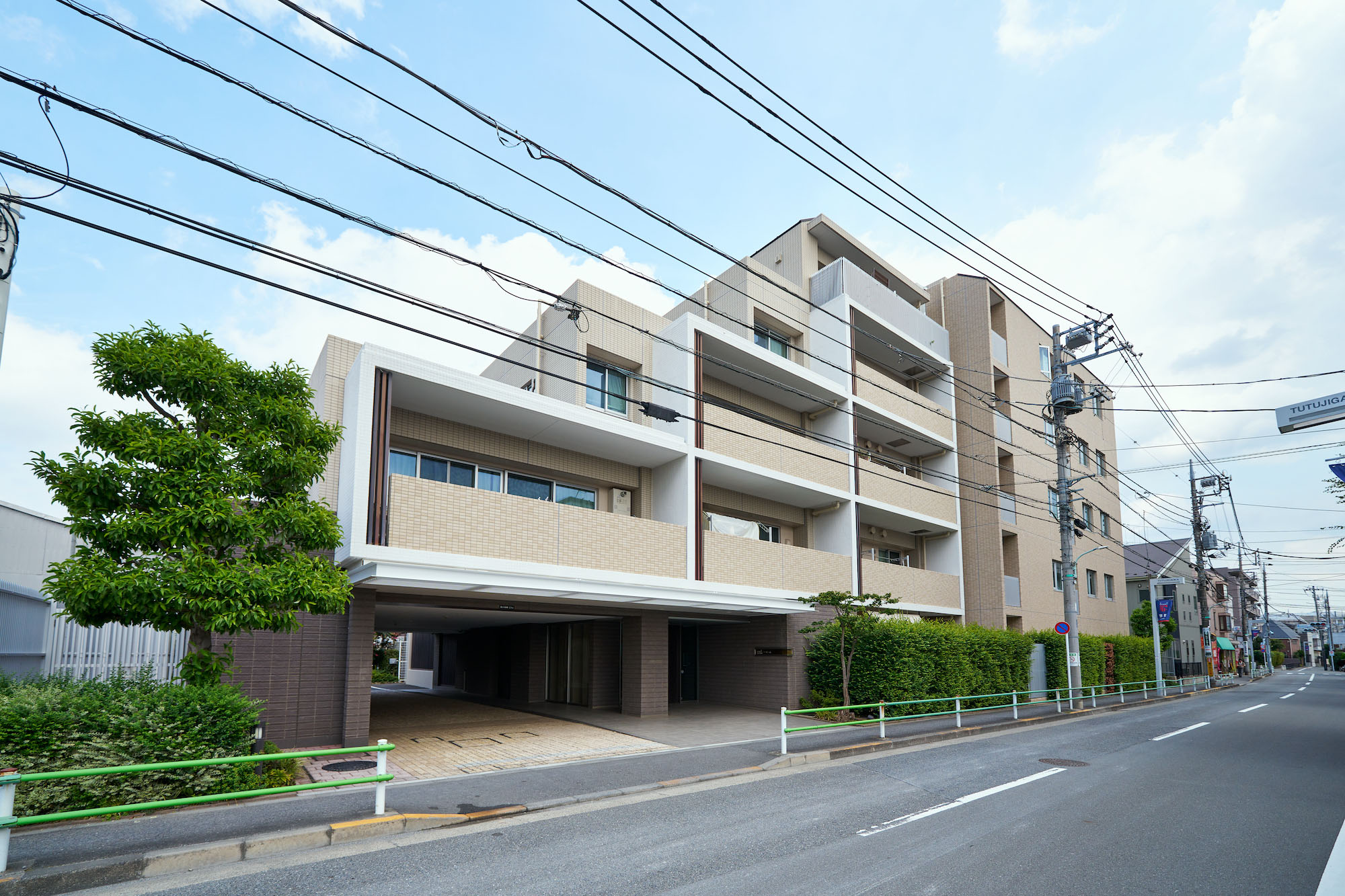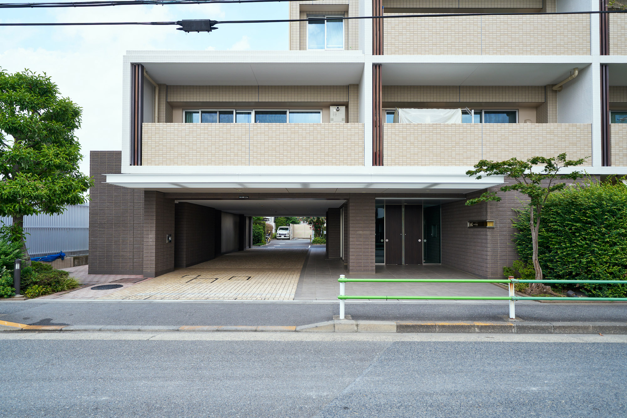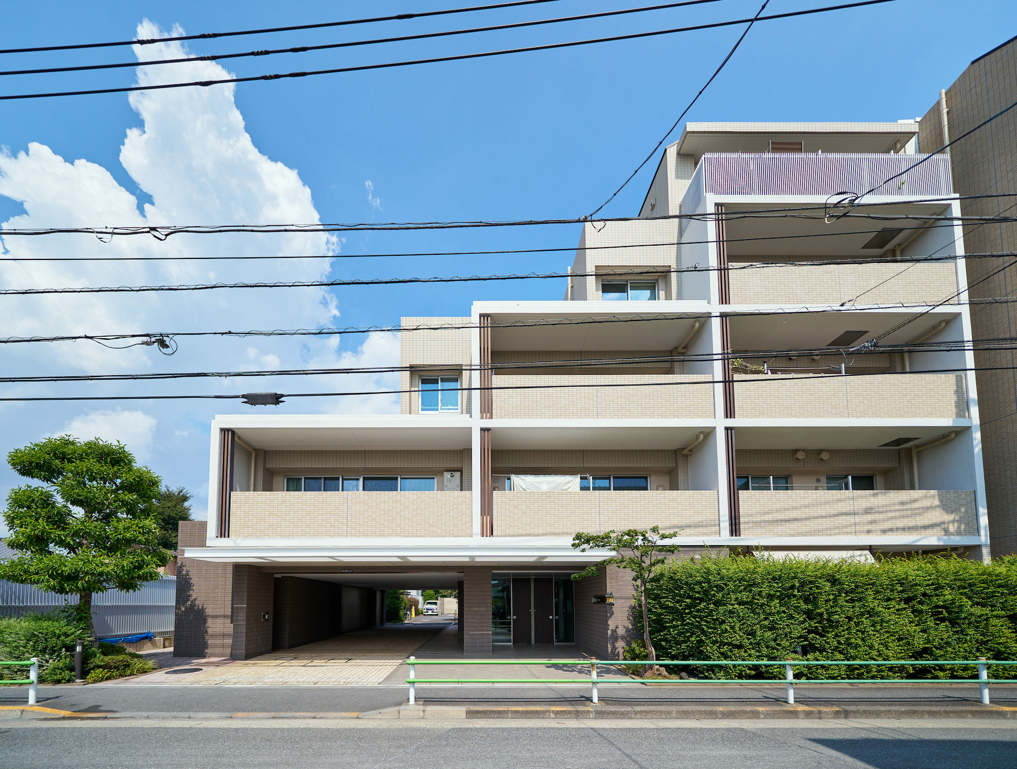 歳月を経てなお味わいを深める邸であるために、外観意匠は穏やかな街の気風や自然と美しく調和し続ける「オーセンティック・モダン」を目指してデザインされました。外観は、優しく上品な淡いベージュの基本カラーに、白いグリットがアクセントとなり、モダンな表情を創出。自然の風合いを持つ表情のあるタイルや、ボリュームのある植栽の緑、そのすべてが色あせない上質感を構成しています。エントランスは、遠景を意識した外観に比べ、近景の高級感を追究。モノトーンで踏襲しながらも、素材感のある2種類のボーダータイルの組み合わせにより、さらに味わい深い陰影のある表情を醸し出しています。アプローチから邸へと続く列柱など、造形的な美しさも一層の高級感を高めています。