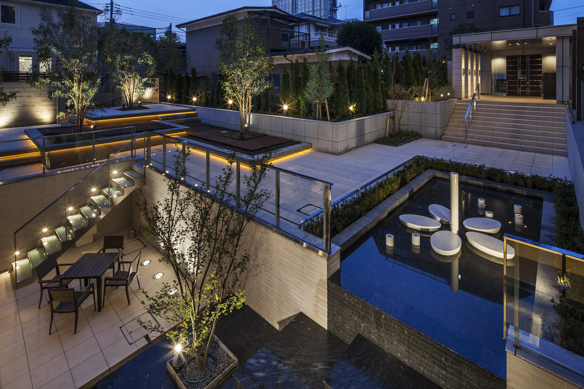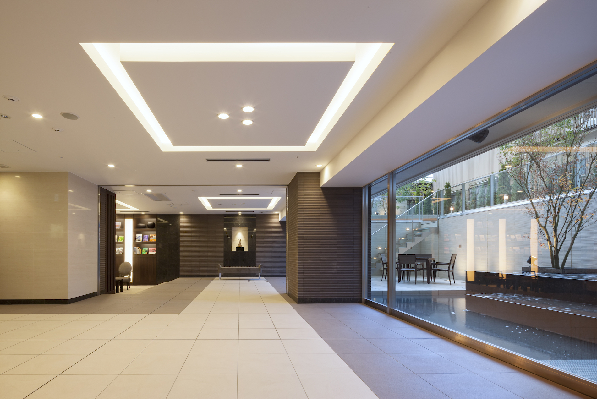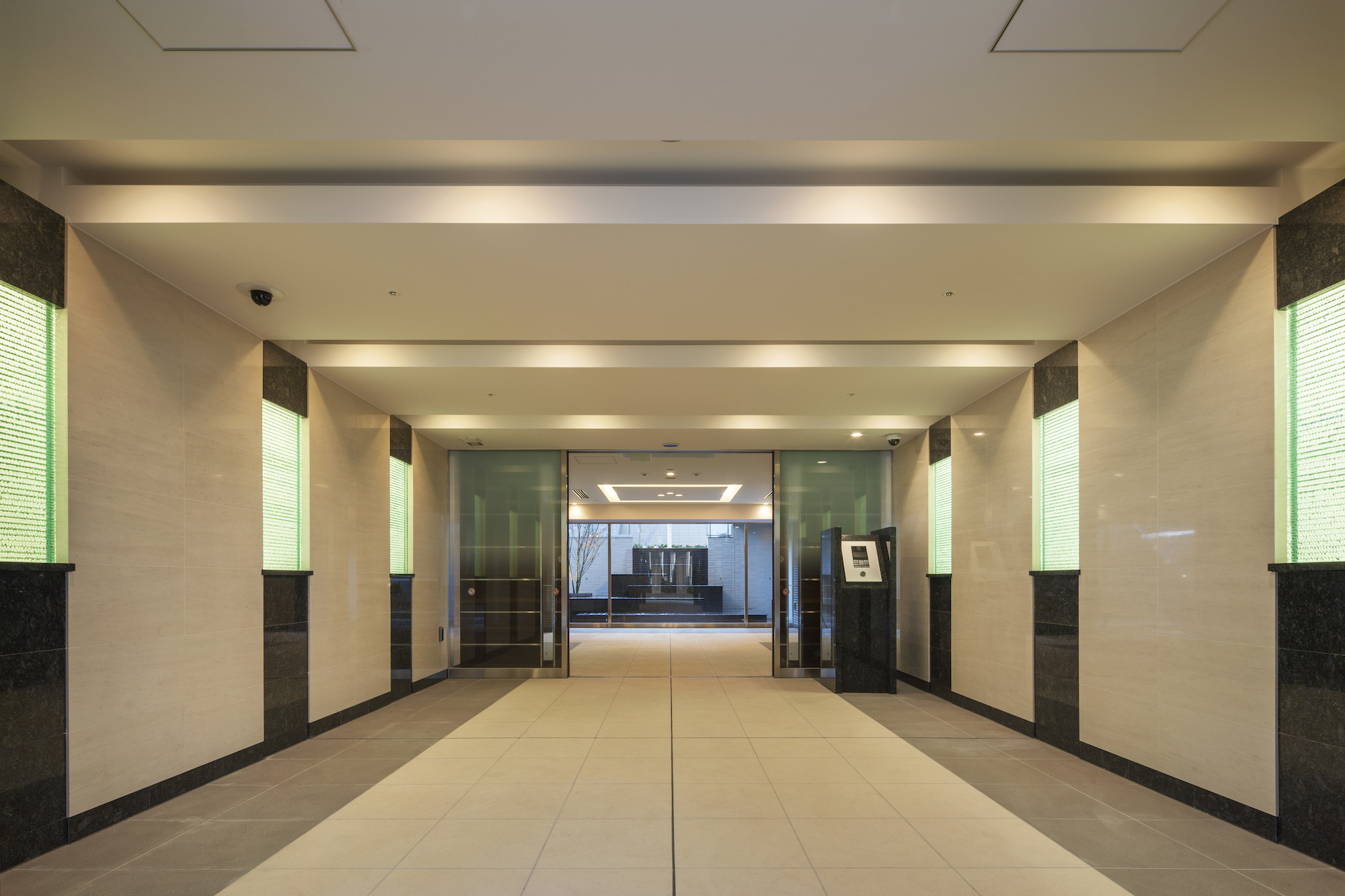 人がホテルに求めるのは、非日常の時間とラグジュアリーなもてなし。そんな迎賓の空気感が、この住まいには漂っています。優雅で格調高い雰囲気のグランドエントランスから入ると、エントランスロビーの正面で出迎えてくれるのが、土地の高低差を利用した美しい「カスケード(滝)」。その傍らには、日本の四季の変化を象徴する樹木であるモミジが配され、人の気持ちを和らげ、優しくもてなしてくれる空間を演出しています。 エントランスロビーのとなりには「ライブラリー &アートラウンジ」があり、ゆっくり読書を楽しむのはもちろん、勉強をしたり、サークル活動をしたりと、多目的に使えるスペースとなっています。壁には季節ごとにアートを変える「四季のギャラリー」も設置。まるで美術館のような静寂と美、そして洗練された時間が流れています。