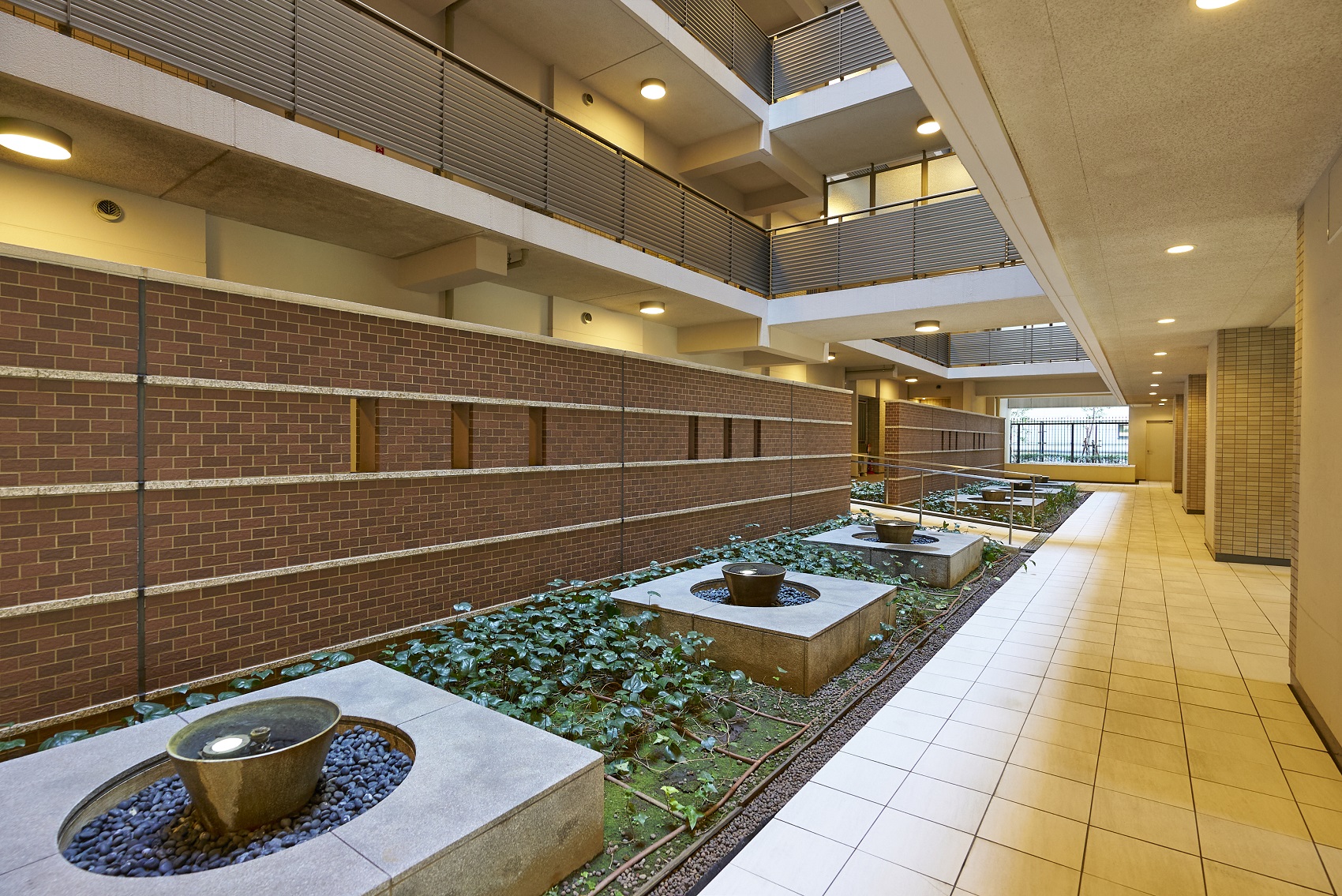 やわらかな灯りが人を優しく包み込む、2層吹き抜けのグランドホール。ブラストぼかしやエッチングを施した装飾ミラーが、ステンドグラスを思わせる優美な輝きを放っています。そして2階には、落ち着いた雰囲気のラウンジ。モダンなオブジェやアートなどで彩られたギャラリー風の空間は、住まう方の感性と心地よく響き合い、アーティスティックな日常を生みだしてくれます。