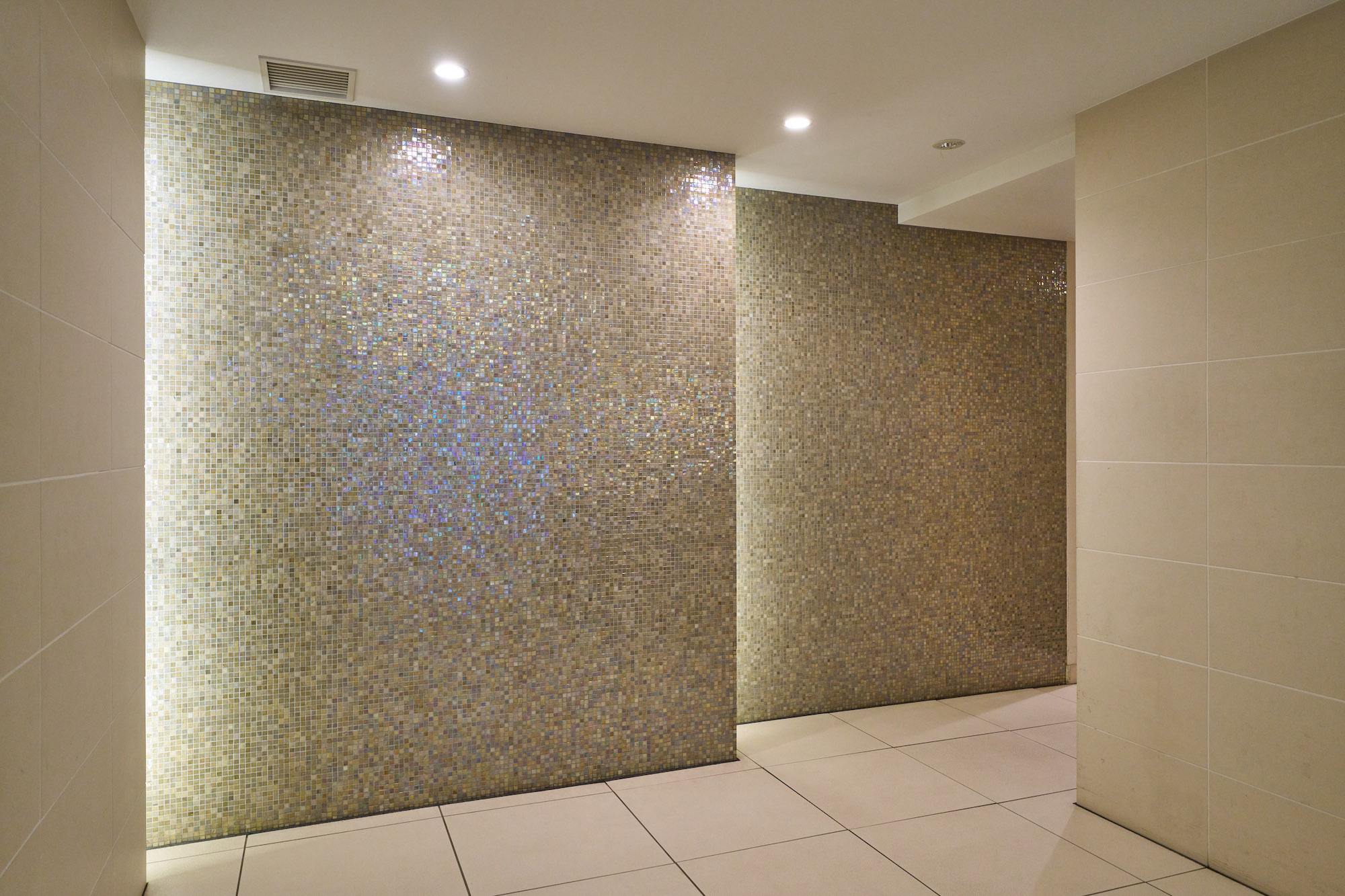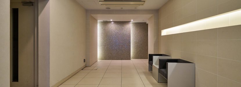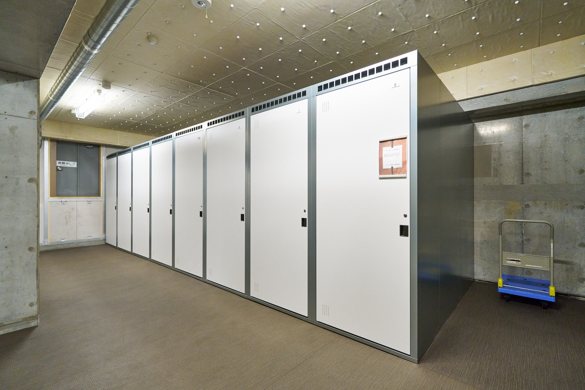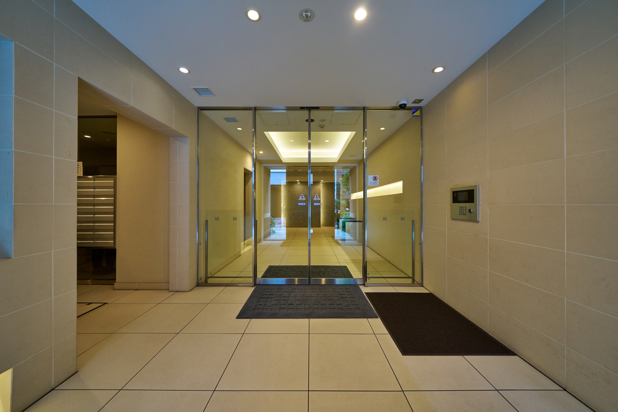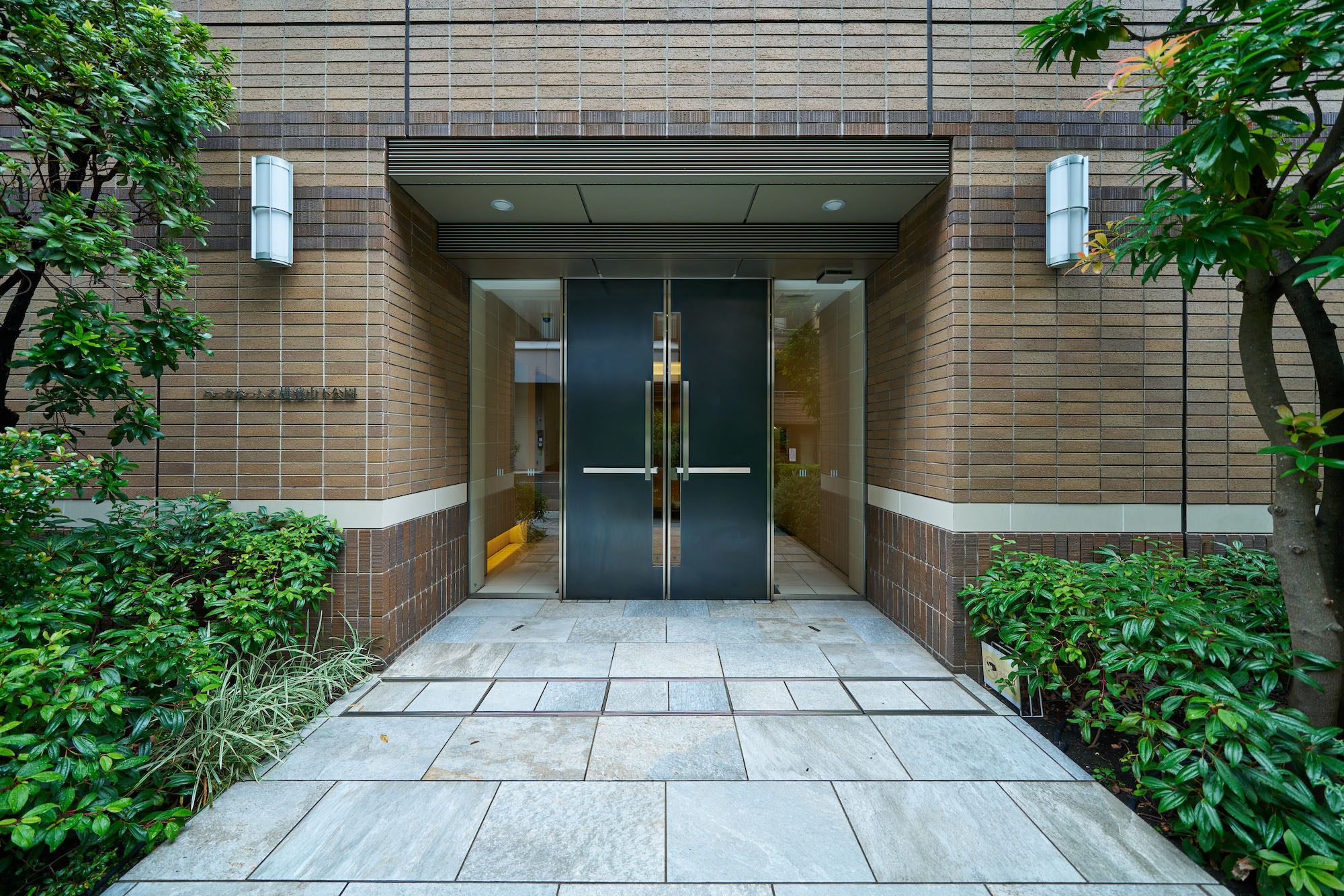 気高く落ち着いた気配を漂わせるエントランスは、都市の緊張をほどきながら優しくお出迎え。息づく緑が内部空間へと導く役割を担うとともに、通りからの視線を遮る役割も果たしています。クランクした動線も、プライバシーへの配慮のひとつです。エントランスの扉の先で待っているのは、外とは別の世界を演出したホール。住まう方が「私に還る」ための気品あふれる空間です。目を惹くベネチアンモザイクでしつらえた正面の壁が、華やかに煌めきながらエレベーターホールへと誘います。駐輪場は建物内、専用エレベーターで上がった3階にあり、自転車を雨風から守り、乗り降りにも便利です。トランクルームも用意されており、快適な生活を後押ししてくれます。