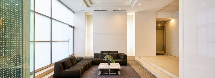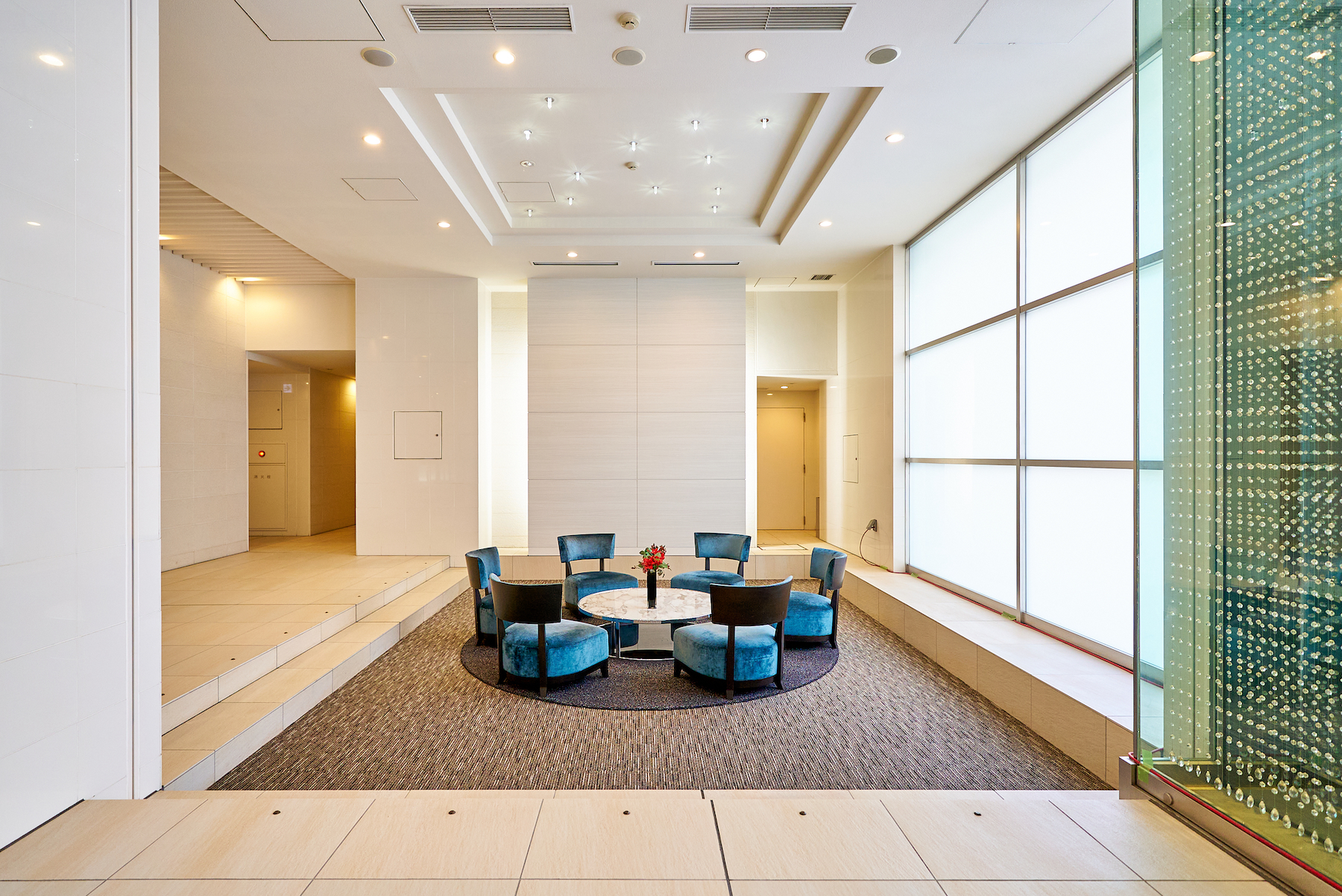 「パークリュクス恵比寿」の一つのシンボルとも言えるのが、天井高3.3mの開放的で広々としたエントランスホール。壁の2箇所に美しくきらめく「スワロフスキー」の光壁をシンメトリーに配置。デザインコンセプトである「ジュエル恵比寿」がここにも具現化されています。両サイドに設けられたラウンジは、素材や色をしぼって、シンプルかつ上質感あふれるデザインに。おしゃれで、華やかで、そして大人な、恵比寿の街にも合い通じる「もてなしの空間」です。