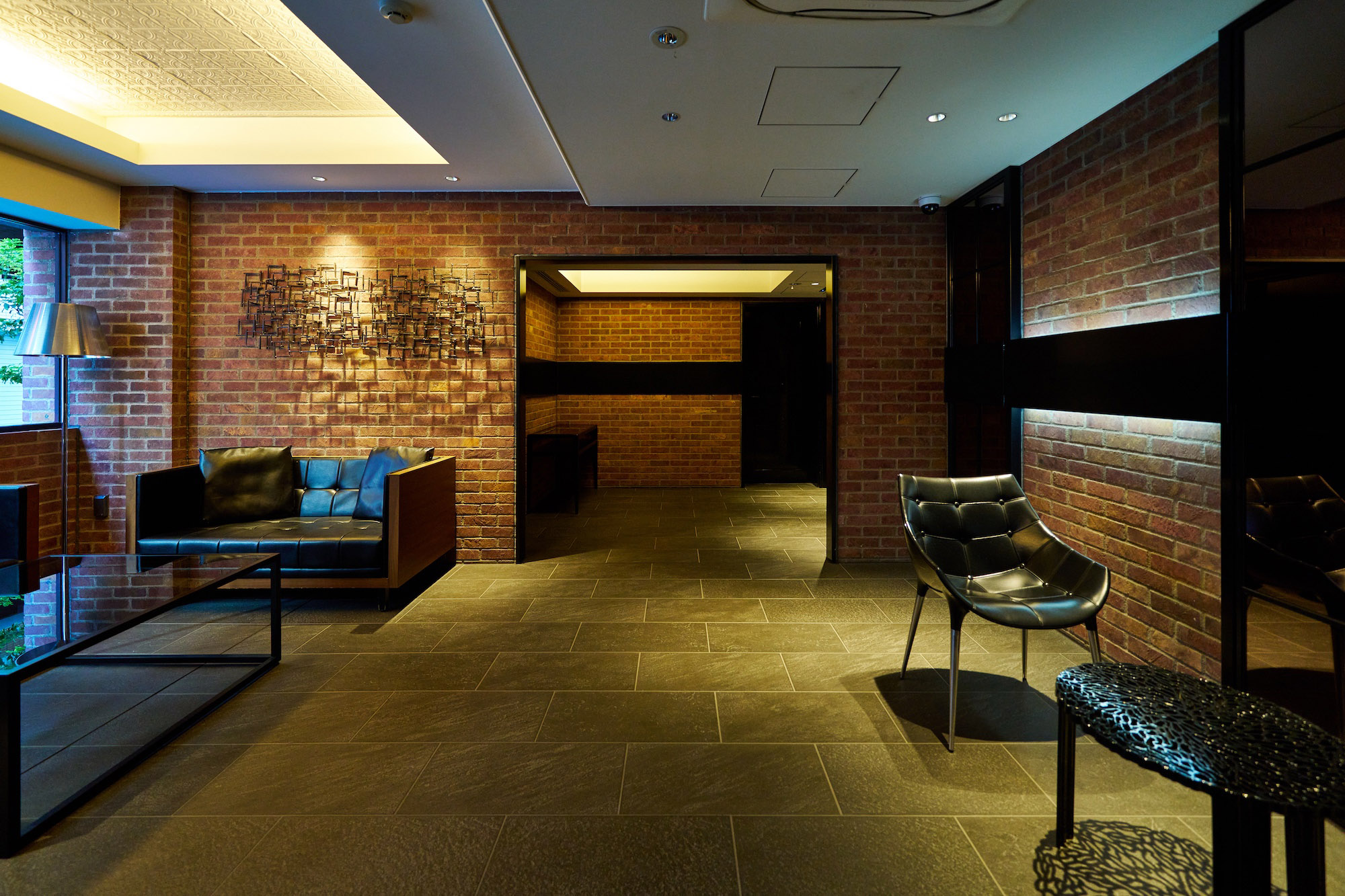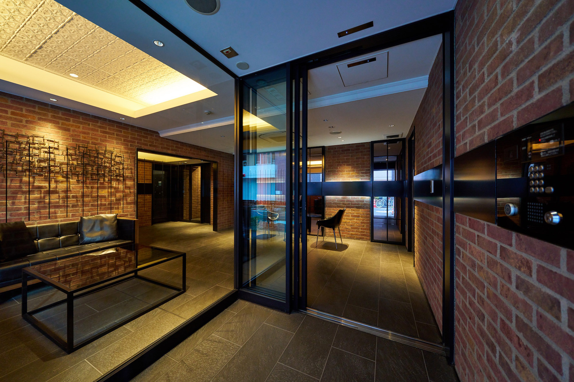 エントランスはホテルのロビーのような落ち着きを感じさせながら、SOHOの打合せスペースとしての使い勝手にも配慮したラウンジを用意。銀座らしさを感じさせるオーセンティックな家具や、表情のある素材を使用し、Wi-Fi環境も備え、「住」と「働」を兼ねるシーンに相応しい空間となっています。内部は内廊下設計の静謐な空間。街のにぎわいから少し離れ、心解き放たれる穏やかな時間が流れています。