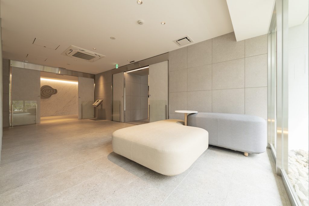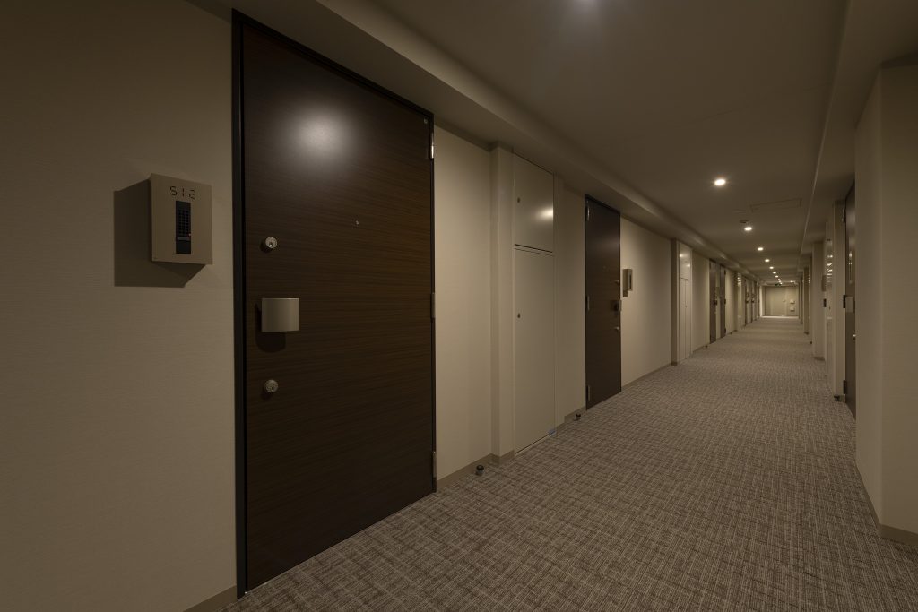 共用スペース 充たされた私時間へのプロローグ。 エントランス、そして、住う人たちの和みの場であるエントランスホール。それぞれの私邸へつながる共用スペースは、邸宅の顔です。どこまでも洗練され優美な雰囲気を醸し出す空間が、深い寛ぎに癒される時間のはじまりを演出します。 エントランス エントランスホール 内廊下