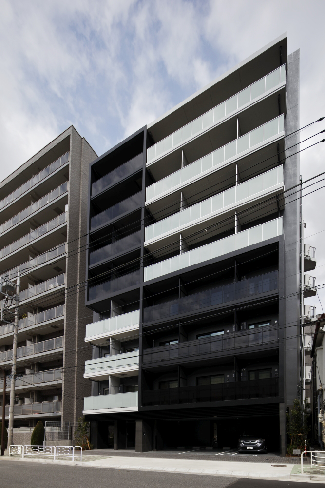 デザインコンセプトのベースは、コンテンポラリーアートを未来に継承し、広く愛される美術館を目指す「東京都現代美術館」の世界観。スタイリッシュで洗練されたライフスタイルをかなえる、流行に左右されない、シンプルモダンな建物デザインです。なかでもシンボリックなのが、南面のあふれる陽光を取り入れながらプライバシーにも配慮した、黒ガラスと乳白色のガラス手摺。サッシやパーテーションの色も合わせ、シャープで上質な統一感を持たせています。