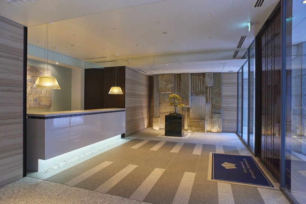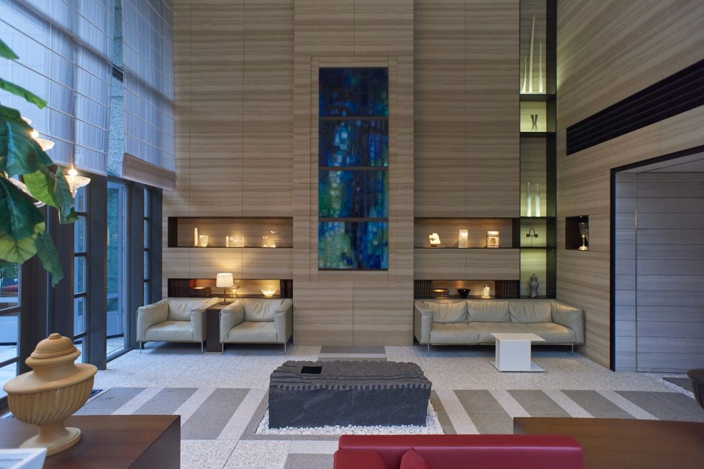 格調高く迎えるフォーマルなエントランス。ラグジュアリーホテルのような上質な温かさを纏いながら、モダンアートが紡ぎ出す洗練された空間が広がる。