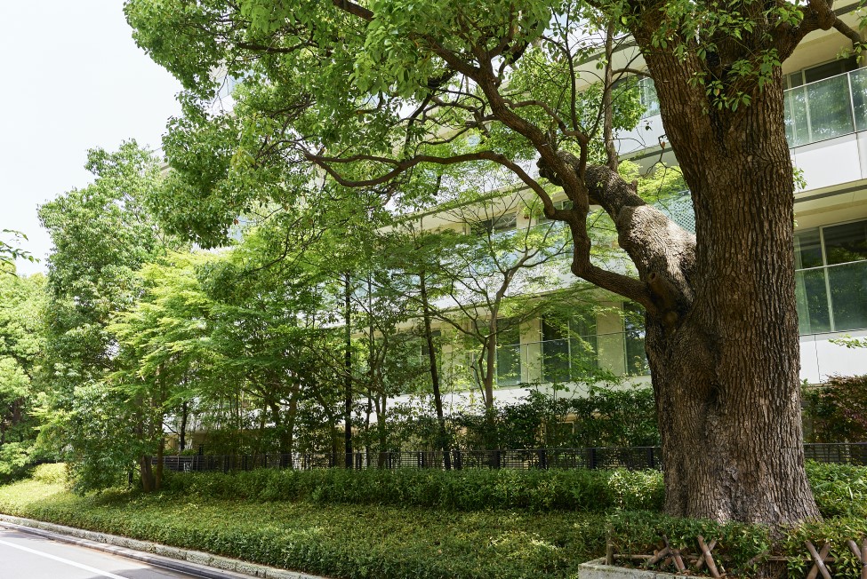 土地の記憶を伝える和の余韻と美しく調和するエントランス。豊かな自然に穏やかに迎えられながら、建物に入るとそこにも緑の気配。繊細にして精緻なデザインは私だけの時間へとつながる、新しい静寂を生みだす空間です。