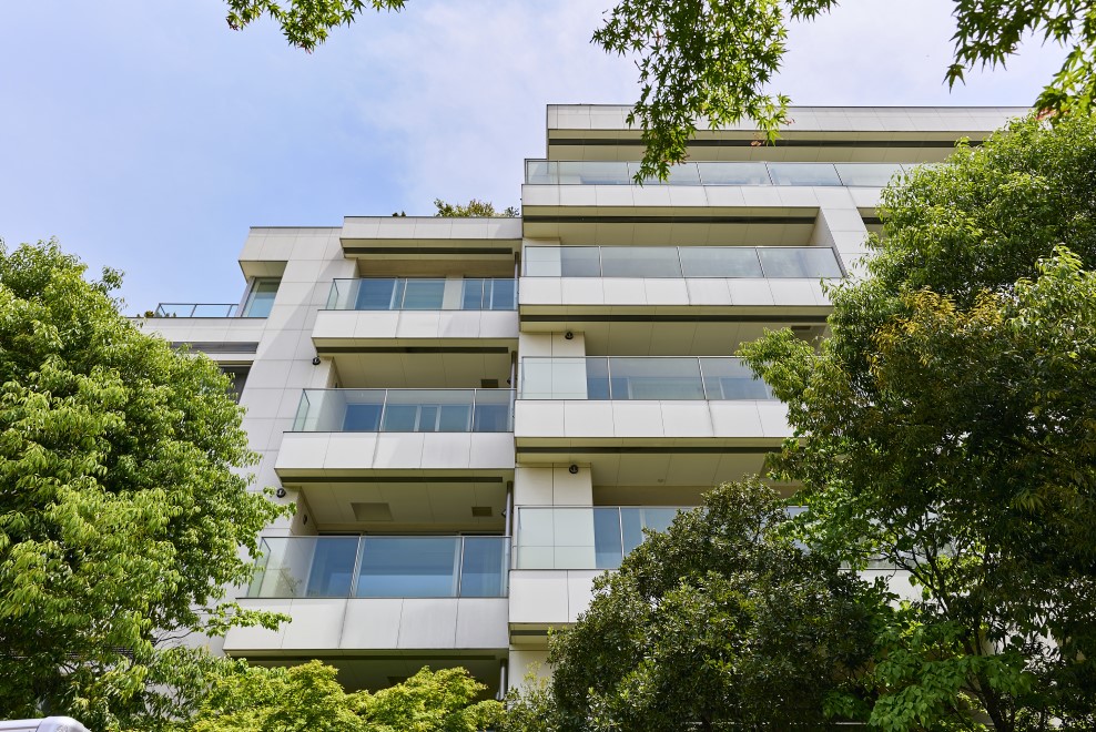 「パークマンション南麻布」の外壁には、天然素材ライムストーンが使用されています。その自然に映えるやさしい風合いは、特に欧州で好まれ、ルーブル美術館などにも使われています。