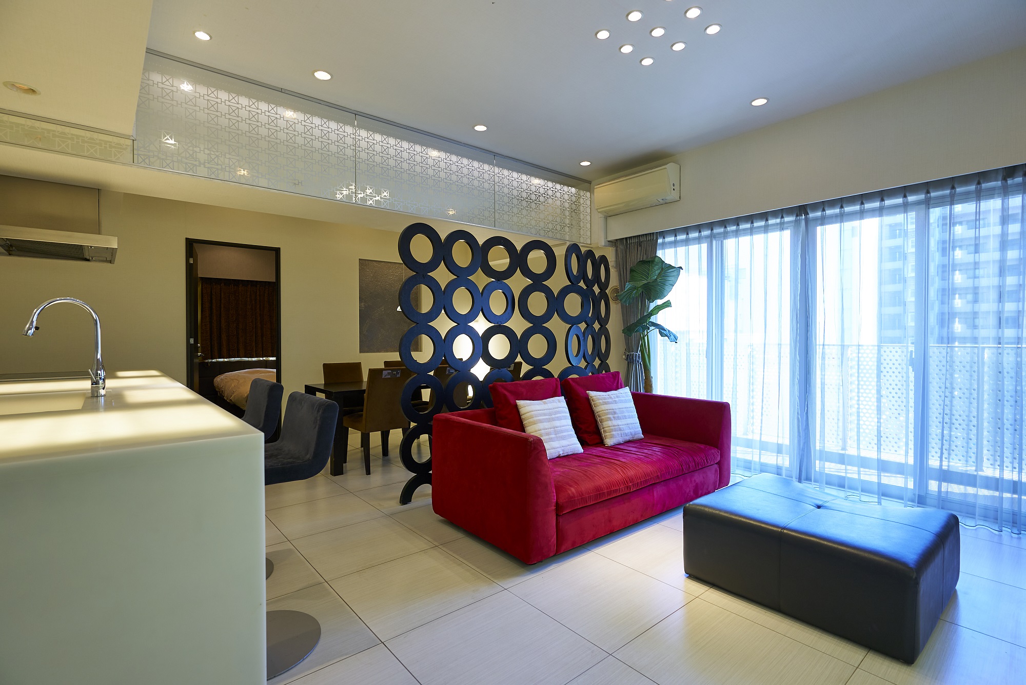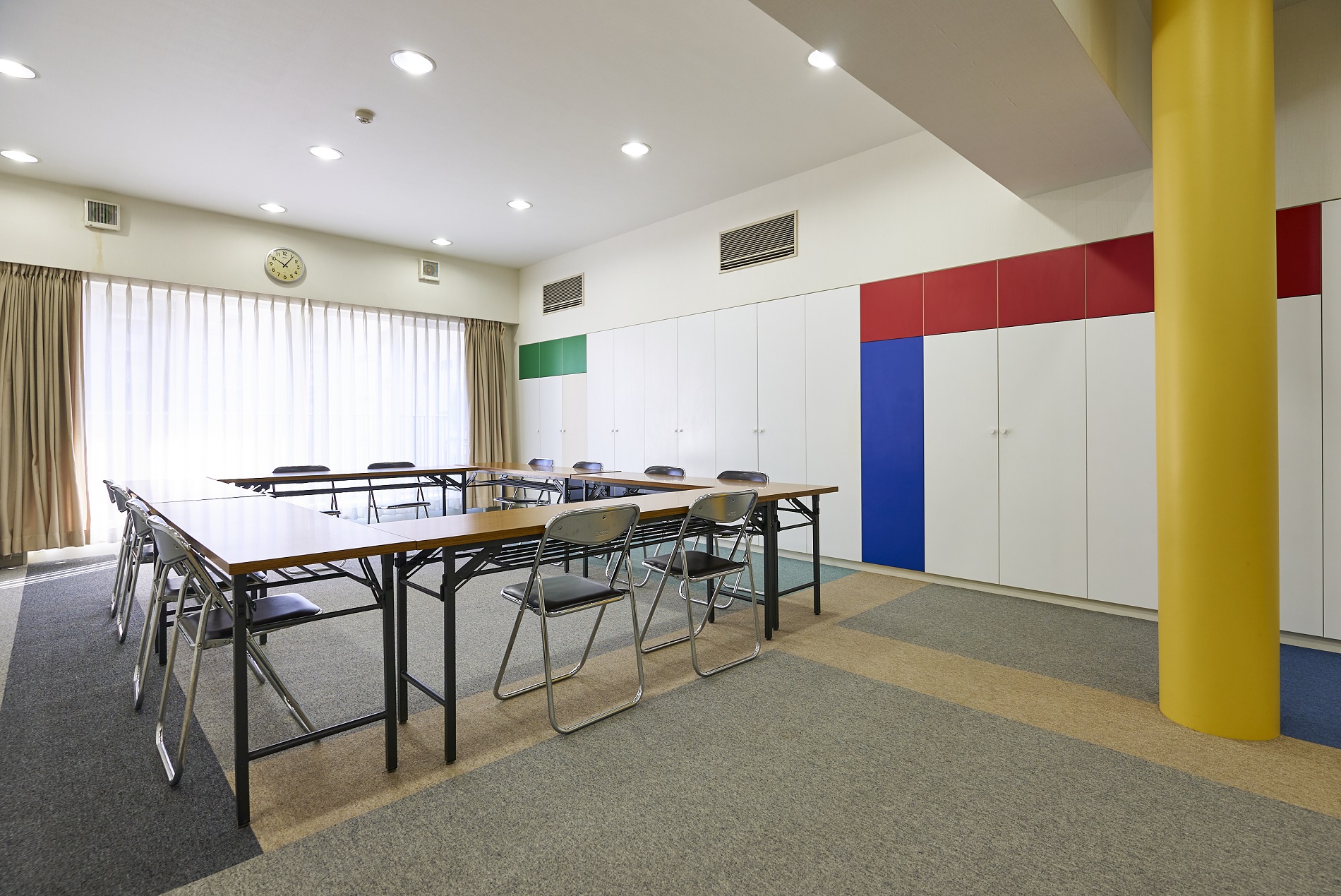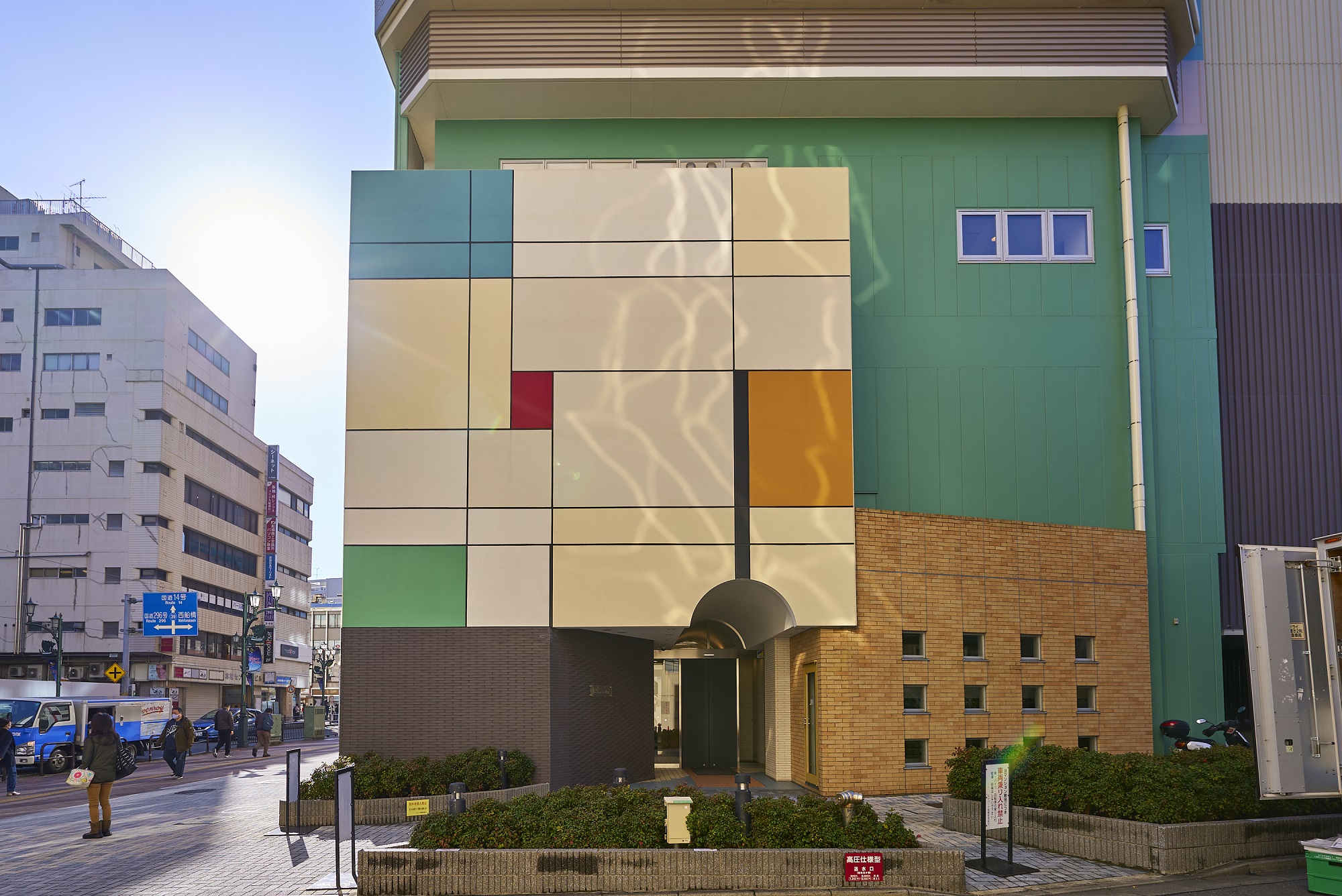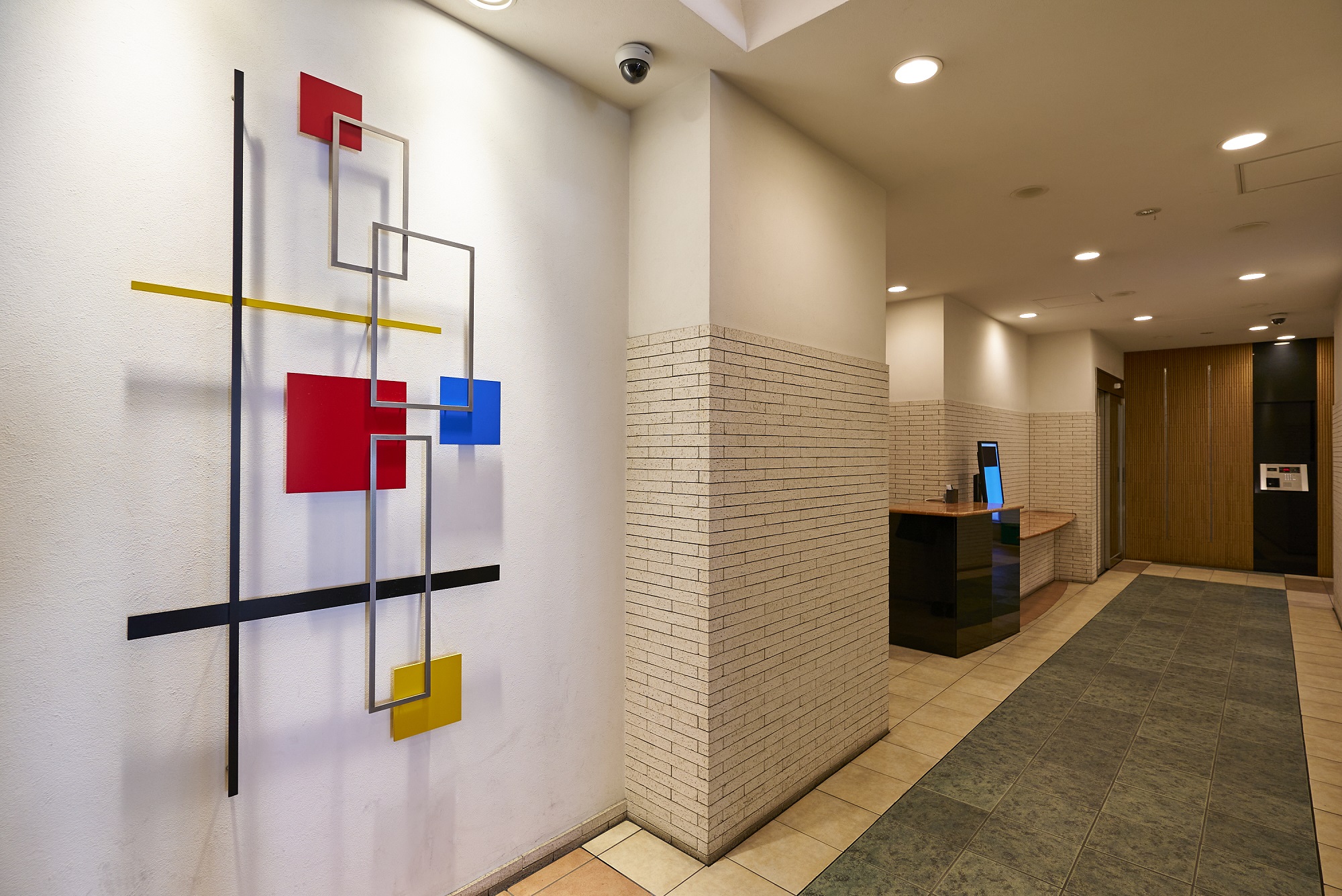 船橋を誇らしく住むタワーへの入り口にふさわしい、ピエト・モンドリアンをモチーフとした幾何学模様の壁面が印象的なエントランス。賑わいのある中心市街地だからこそ、距離感を持たせ、クランクさせることで結界性を高めながら、私空間へと安堵感を深めていくエントランスコリドー。「パークタワー船橋」のコモンスペースでは、色彩と造形の美しさに繊細な照明がさらなる上質感を醸し出します。4階の共用工リアにはゲストルームと集会室が設けられており、ここにも同じコンセプトが貫かれています。通るたびにアートに触れる、五感に響き合うスペ一スが日常を彩ります。