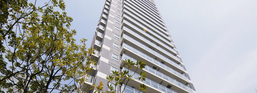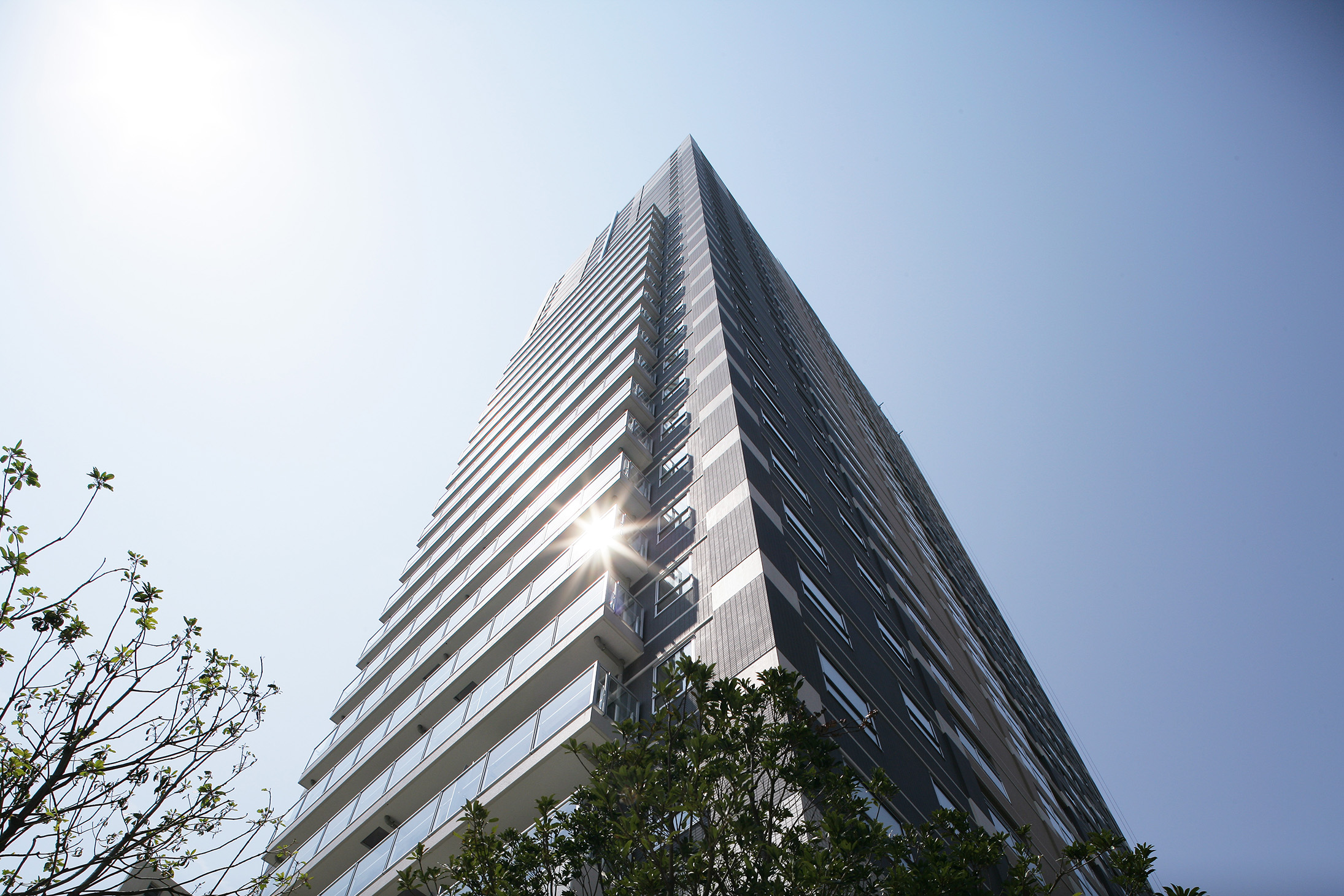 周囲の建物と調和を図りつつも、存在感を主張するスタイリッシュな外観デザイン。ブルーグレイのタイルをベースカラーに、まるでリズムを刻むようなアクセントがゆたかな表情をかたちづくっています。見飽きることのない美しい眺望のように、見飽きることのないタワーデザインです。