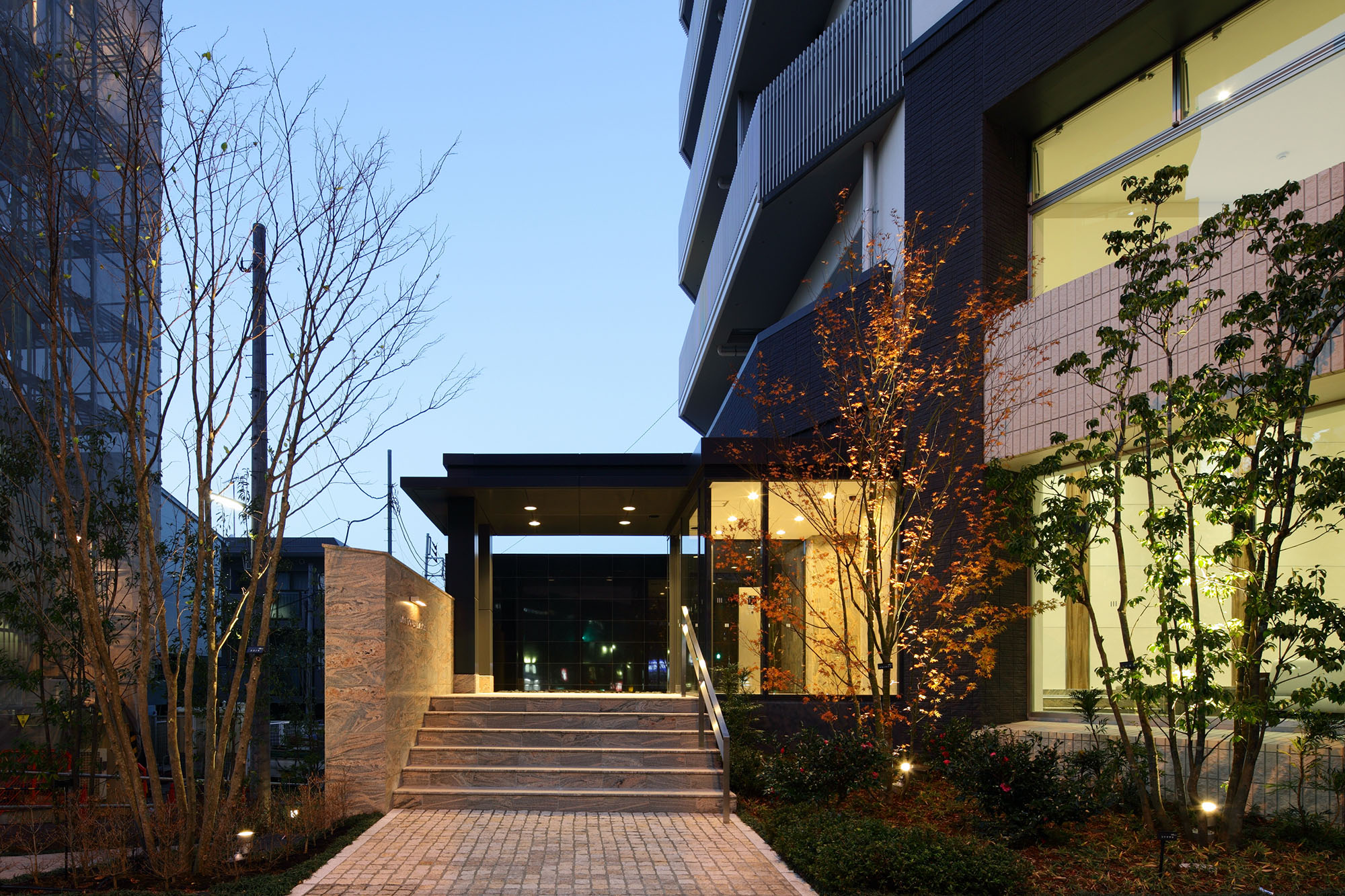 利便性に優れた立地を象徴するような、都会的なイメージを持つシンメトリーでシンプルなフォルムを追求。白系を基調としながら、基壇部では黒系のタイルが重厚感を演出しています。また、コーナー部には、大きなビューウィンドウを設けることにより、圧迫感の軽減された外観を創出。鹿島建設の設計・施工による、信頼の制震構造を採用したタワーマンションです。