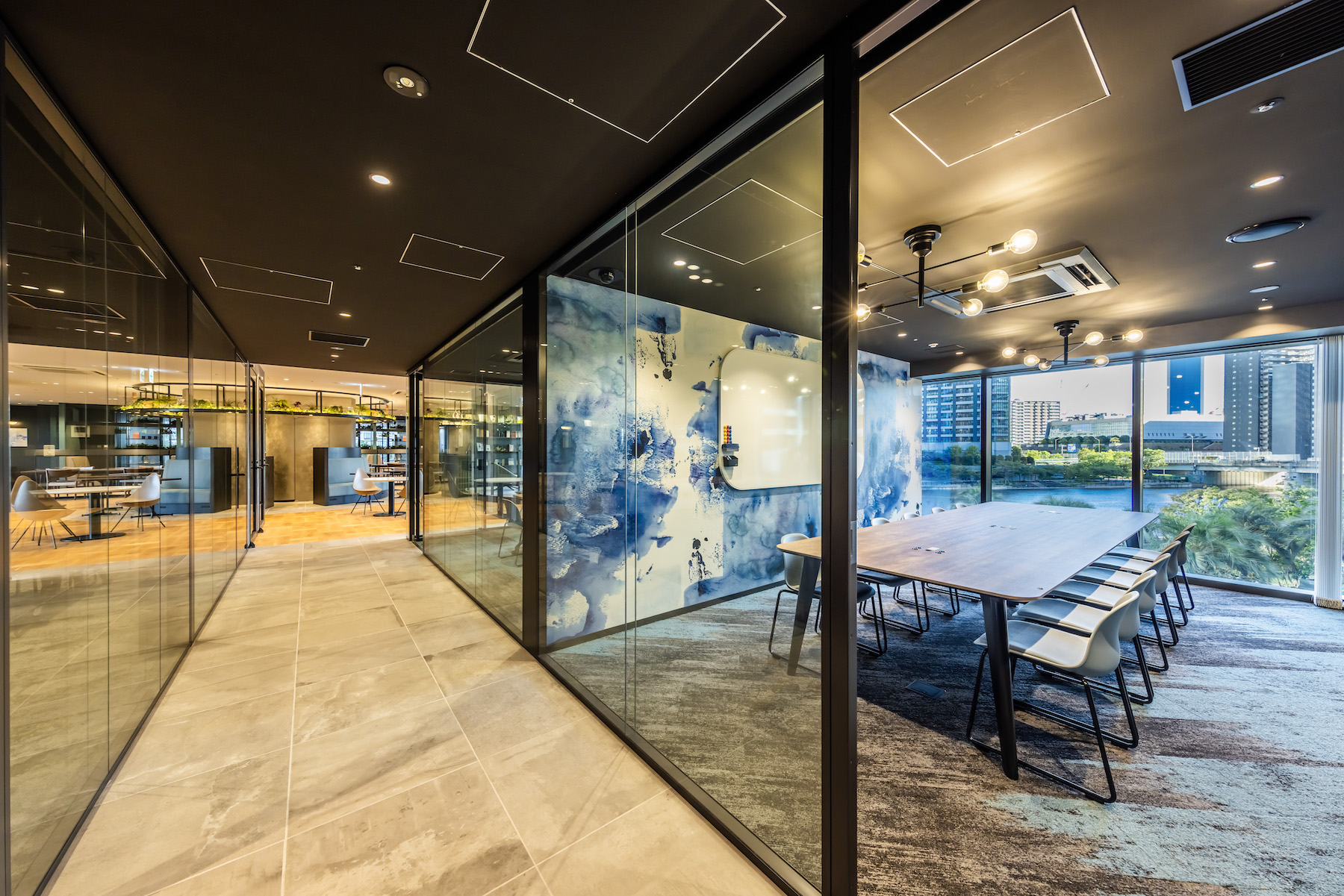 コミュニティスペースを3階に設計。カンファレンスルーム、個人プース、ビッグテーブル、ベンチソファ席、リフレッシュエリア、防音室などをご用意。仕事やプライベートなどの打ち合わせや作業、学習などに活用できる。