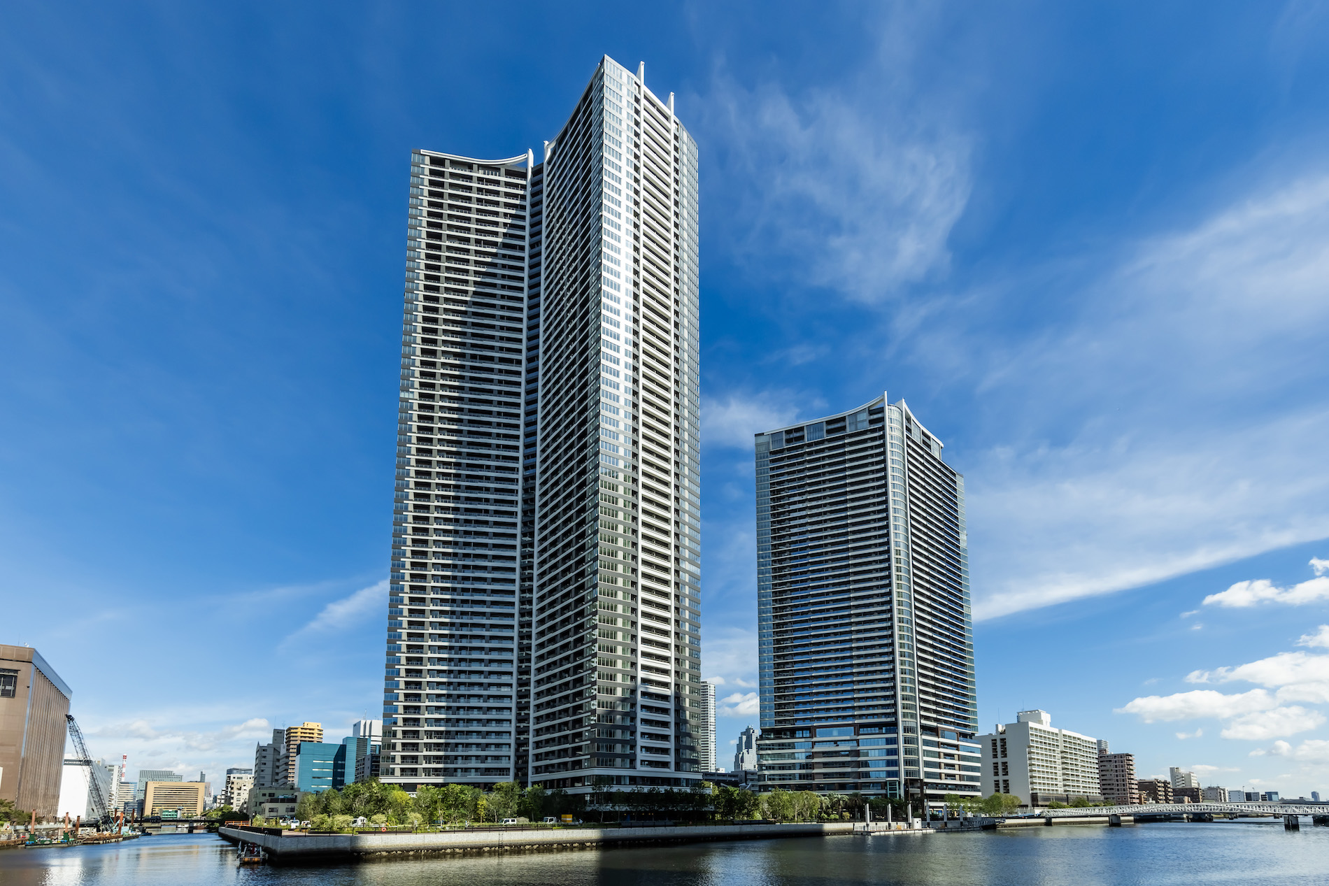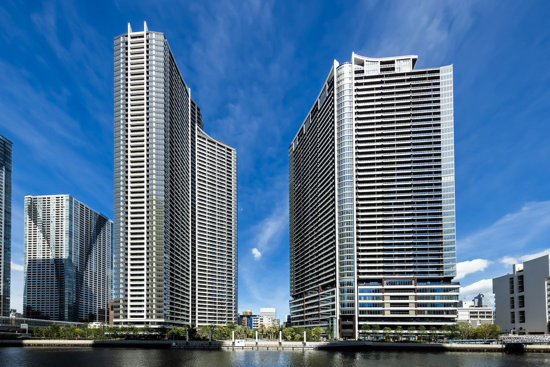 また「パークタワー勝ちどきサウス」では、水辺や緑と触れ合えるサイトや、海辺の自然的要素をモチーフにしたエントランス、トライスター形状を活かした空間設計など、水辺の自然と都市の利便性を併せ持つ、有機的かつダイナミックなデザインフォルムが特徴です。