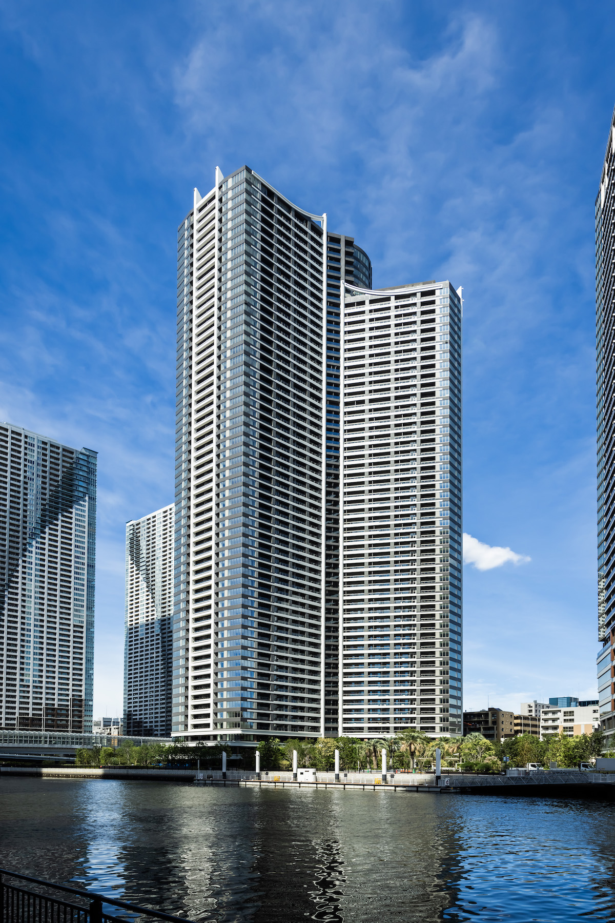 また「パークタワー勝ちどきサウス」では、水辺や緑と触れ合えるサイトや、海辺の自然的要素をモチーフにしたエントランス、トライスター形状を活かした空間設計など、水辺の自然と都市の利便性を併せ持つ、有機的かつダイナミックなデザインフォルムが特徴です。