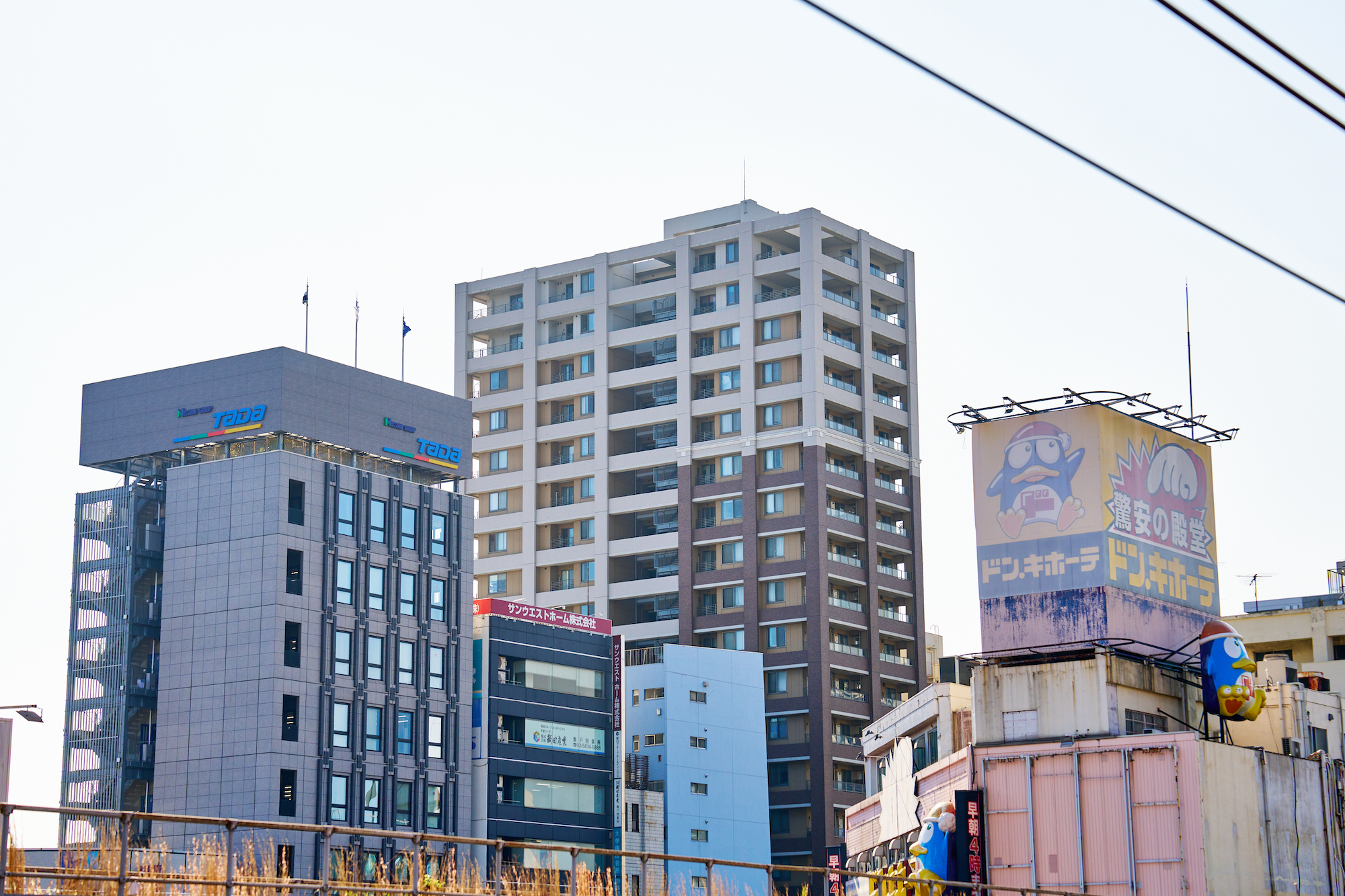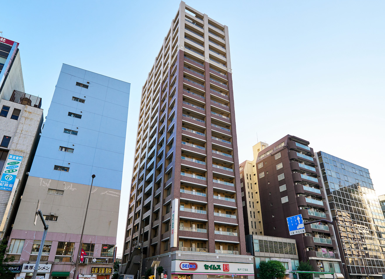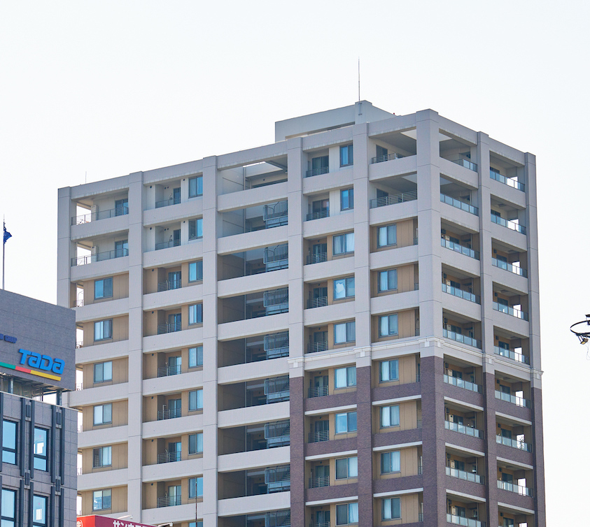 亀戸駅から徒歩3分の地に聳え立つ「パークタワー亀戸ステーションアリーナ」。約64mの高さを活かし、力強い直線を組み合わせたシャープな佇まい。カラーテイストは、歴史ある街に建物が調和するように、洗練された街の代表ともいえるニューヨーク「SOHO」をモチーフとしています。周囲の建物とほぼ同じ高さまでは、深みのあるブラウン系でまとめ、上部は空に向かって溶け込む爽やかなホワイトカラーを採用。全住戸のバルコニーは、ホワイトの横ラインが入り、全体の印象を引き締めるアクセントとなっています。