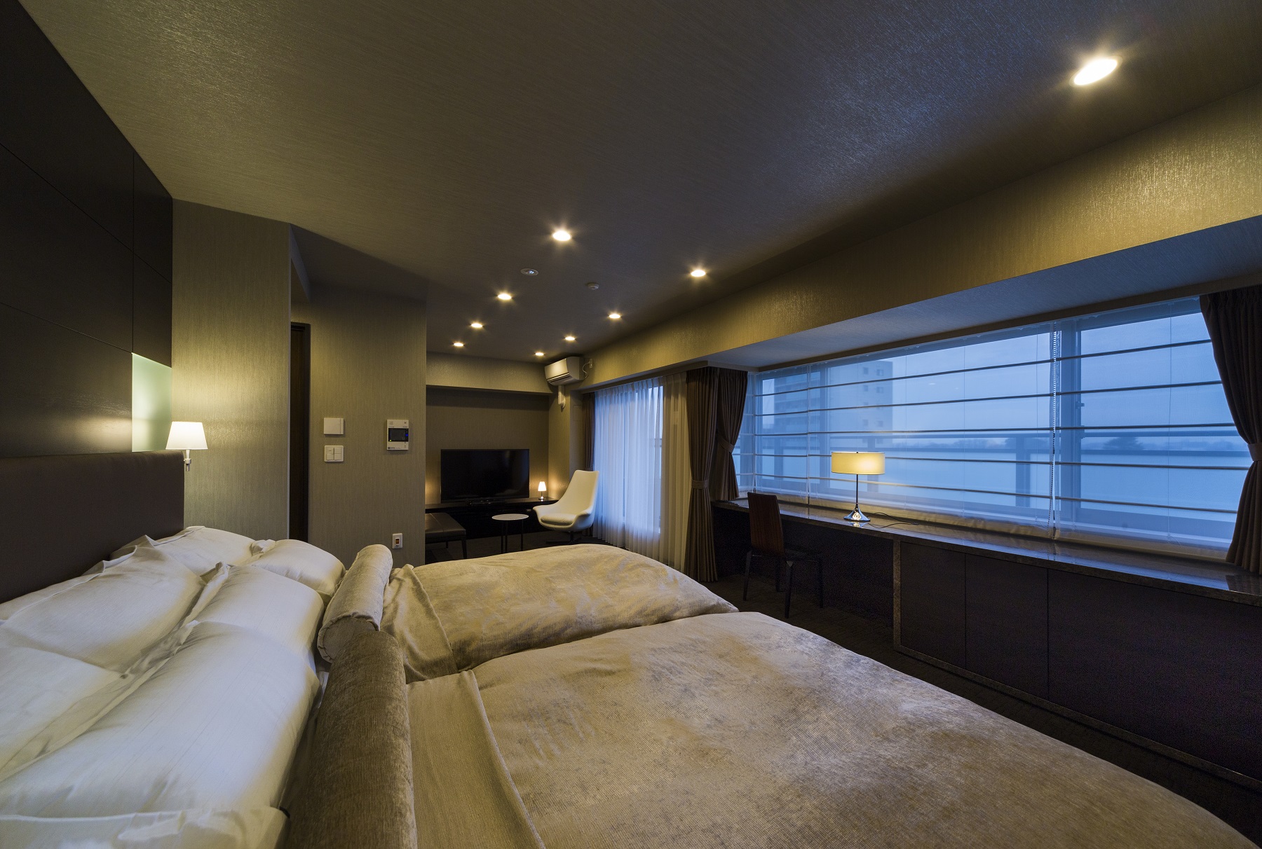 ゆとりあるベッドルームに加え、バスルームやパウダールーム等も備えています。滞在される方に心地よい時間を提供できるように、最上の眠りを追求する「Simmons」のベッドや、こだわりの寝具、ソファーセット等も採用。ホスピタリティで満たされた空間が贅沢な時間を演出します。