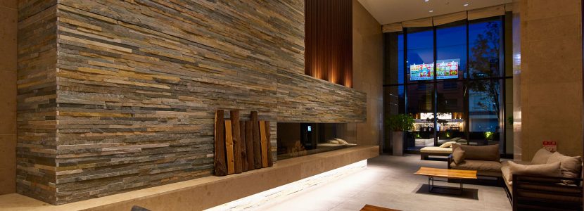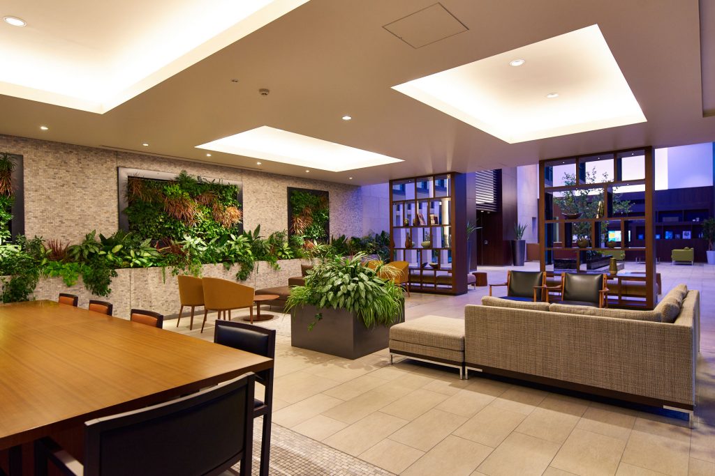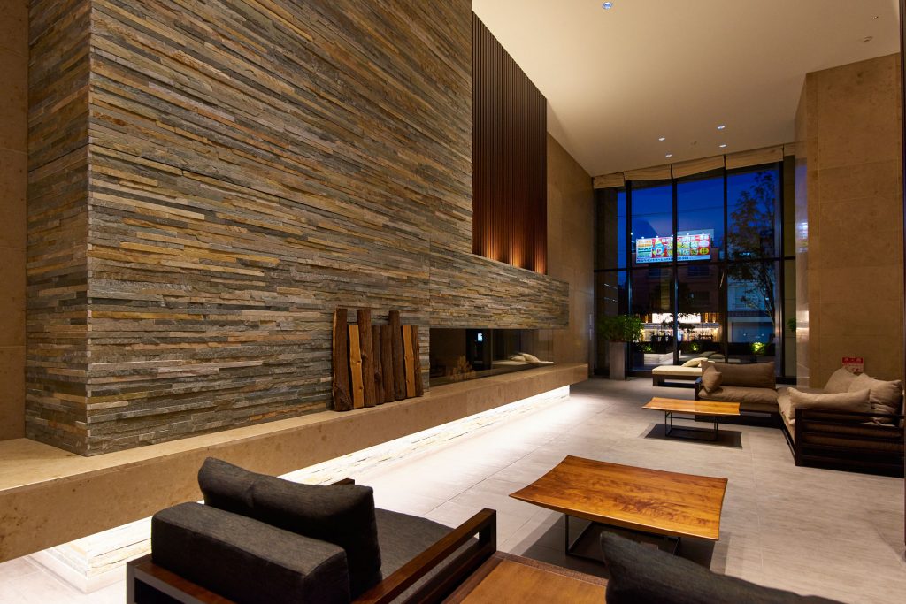 思い思いにくつろげるソファセットを配置したグランドラウンジを設けました。壁面には、炎の温もりに人々が集うガス暖炉を設置。外出時や人を待つ際のスペースとしてご利用いただけます。