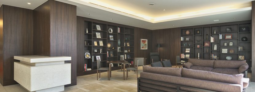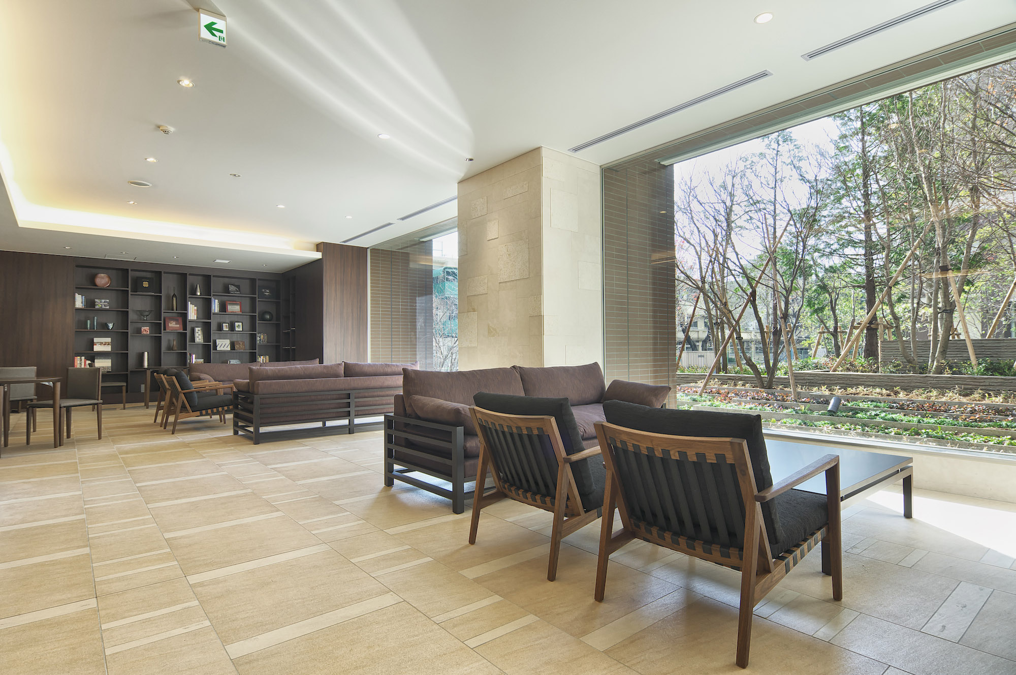 オーナーがリラックスして穏やかな時間を過ごせる「ラウンジ」は、中庭の木々を借景にした上で、スタイリッシュかつ温かみのある設えになっています。その奥には、最新の雑誌などを取り揃え、好奇心を刺激する「ライブラリー」が配されている他、キッズスペースを設けた集会室や2つのゲストルームなど、心地よくライフスタイルを広げる共用空間が用意されています。