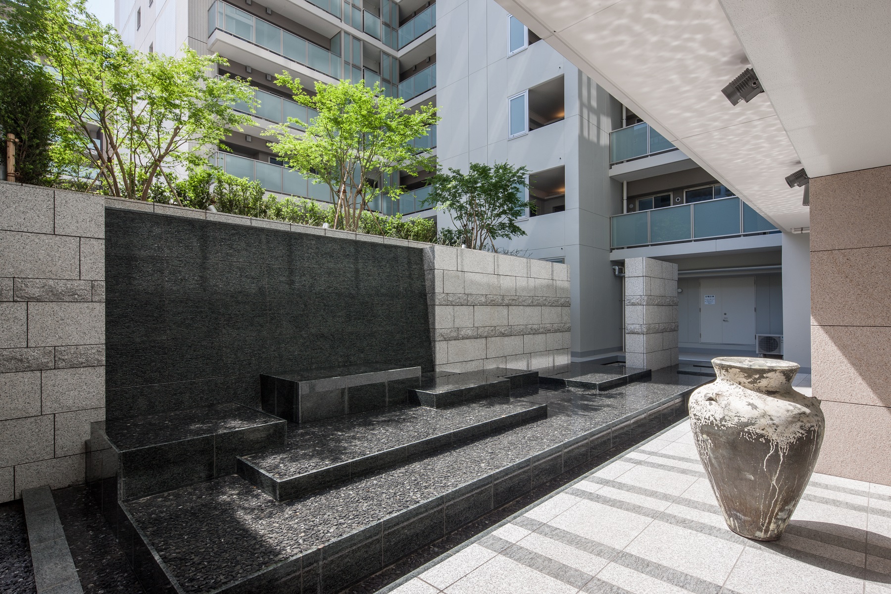 住まう方がゆっくりとくつろげる、もうひとつのリビングルームとしても利用できるカスケードホール。正面には優雅に広がる「カスケード(滝)」があります。流れ落ちる水、美しい水面と光の演出。眺めているだけでこころ癒される空間です。