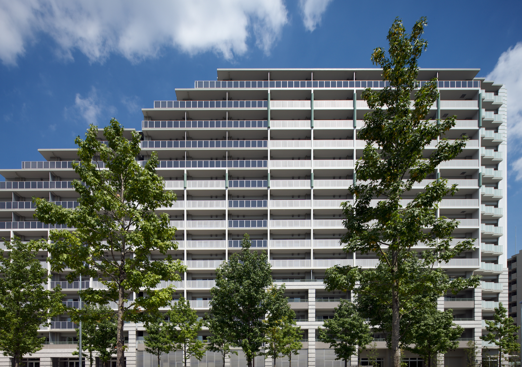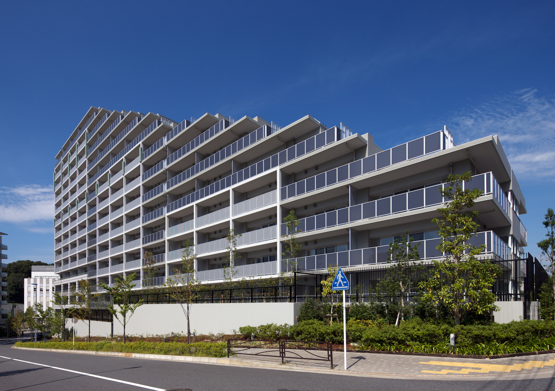 堂々と存在を主張しながらも、軽快感のある佇まい。デザインコンセプトは「Authentic & Modern」。鳥が大きく翼を広げたようなシンメトリーなフォルムに、輝く白に配されたペールグリーンのバンドストーンが心地よいリズムを演出。大空を背景に佇む勇姿は美しく、街路樹やガス灯とも共鳴して、さらなる存在感を放っています。