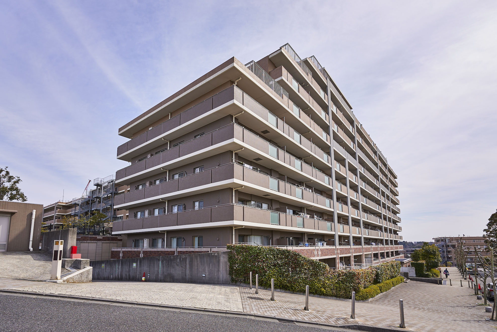 国際都市・横浜を象徴する「QUEEN」の名を冠し、イングランドをモチーフとした雄大な街「クイーンズ・ガーデン」。良質の環境を創り、そこに良質の住まいを創る“環境創造”というコンセプトのもと、横浜市街地を見晴らす丘の上に、おおらかに広がっています。「クイーンズ・ガーデン」では、いつでも緑の中を散歩したり、季節の移ろいを肌で感じたりできる憩いの空間をゆったりとレイアウト。建物外観は、なだらかな南傾斜の敷地形状を生かしたフォルムと、緑・空・光に映えるファザードにより、ひときわ優雅さを感じさせる景観を創出しています。