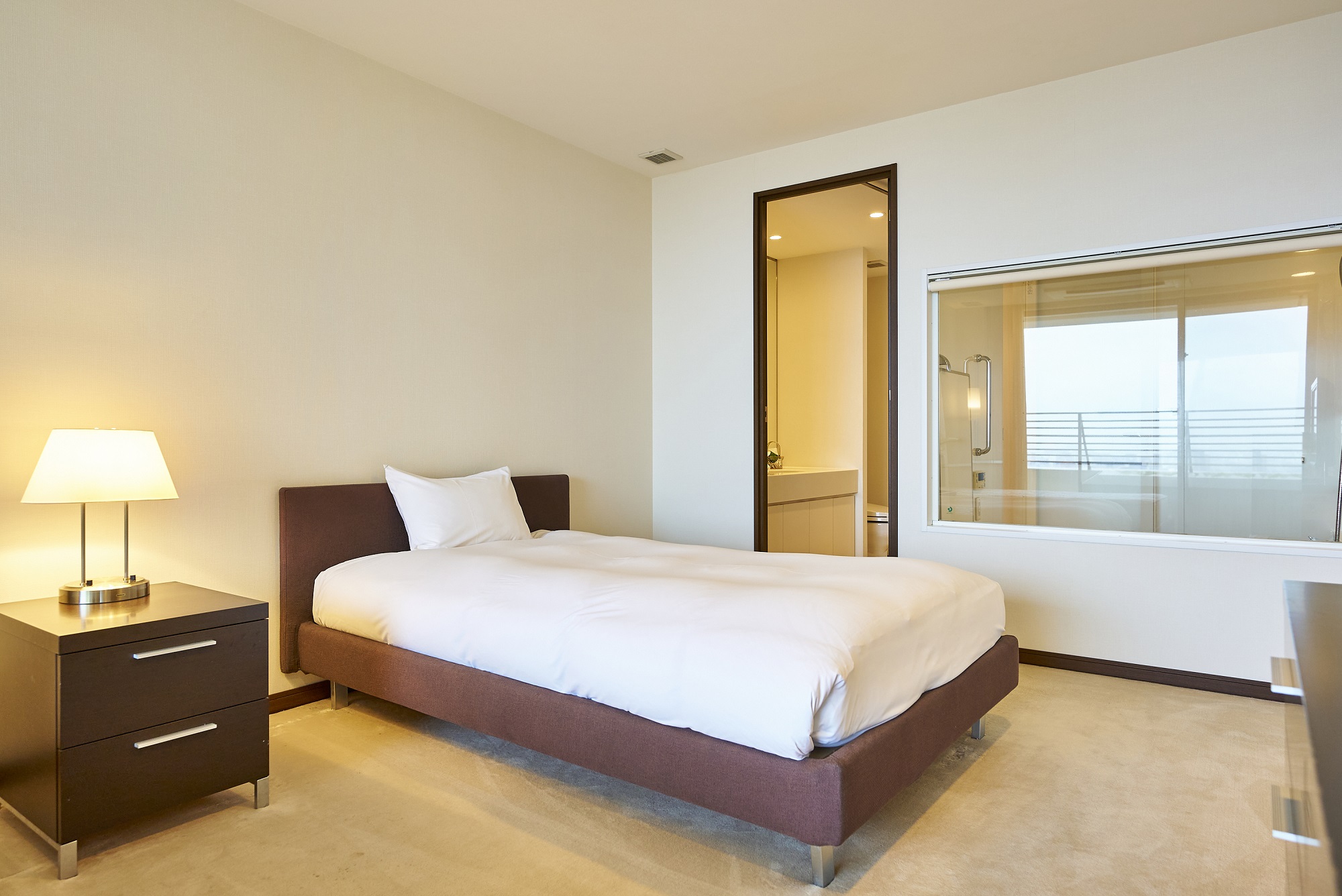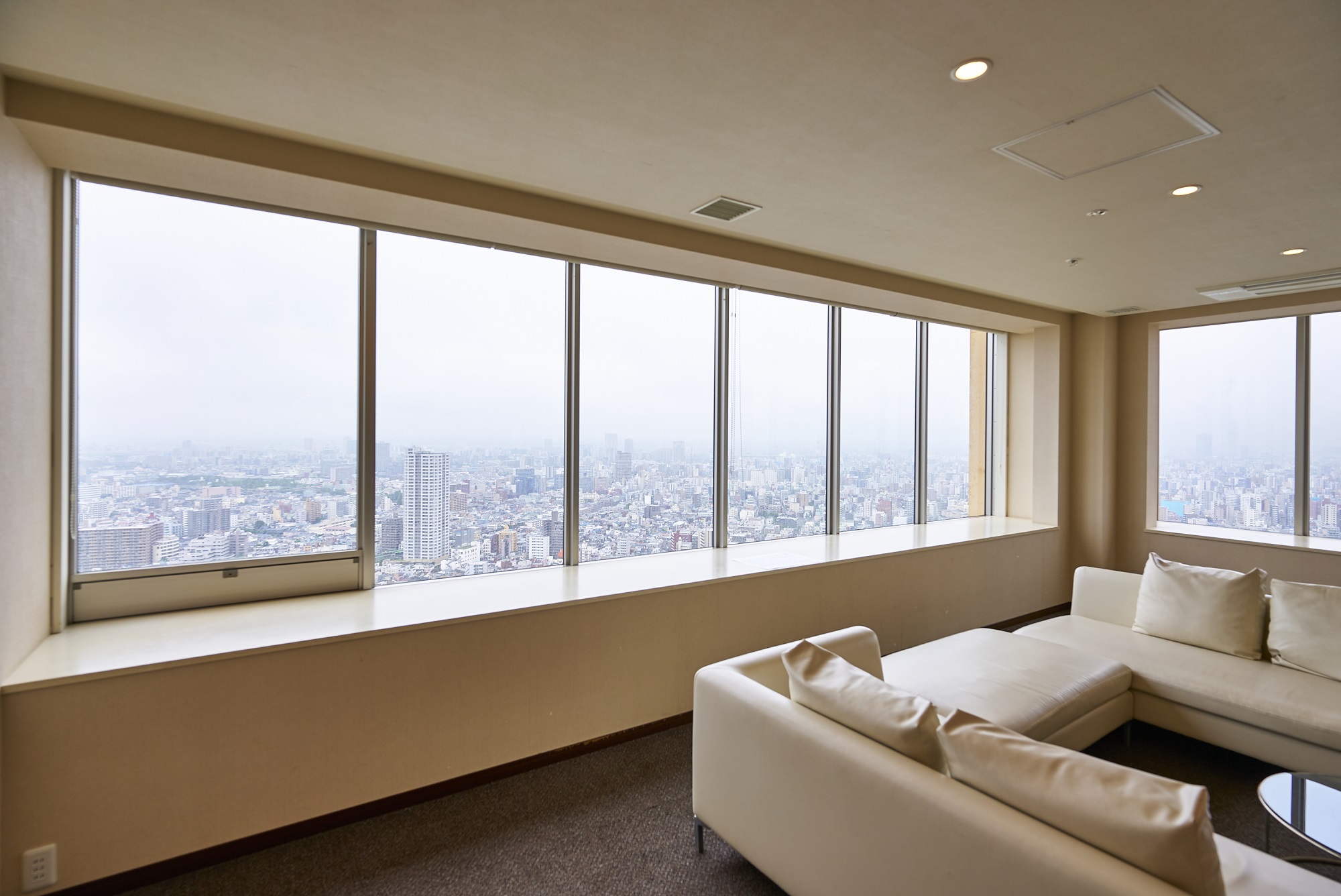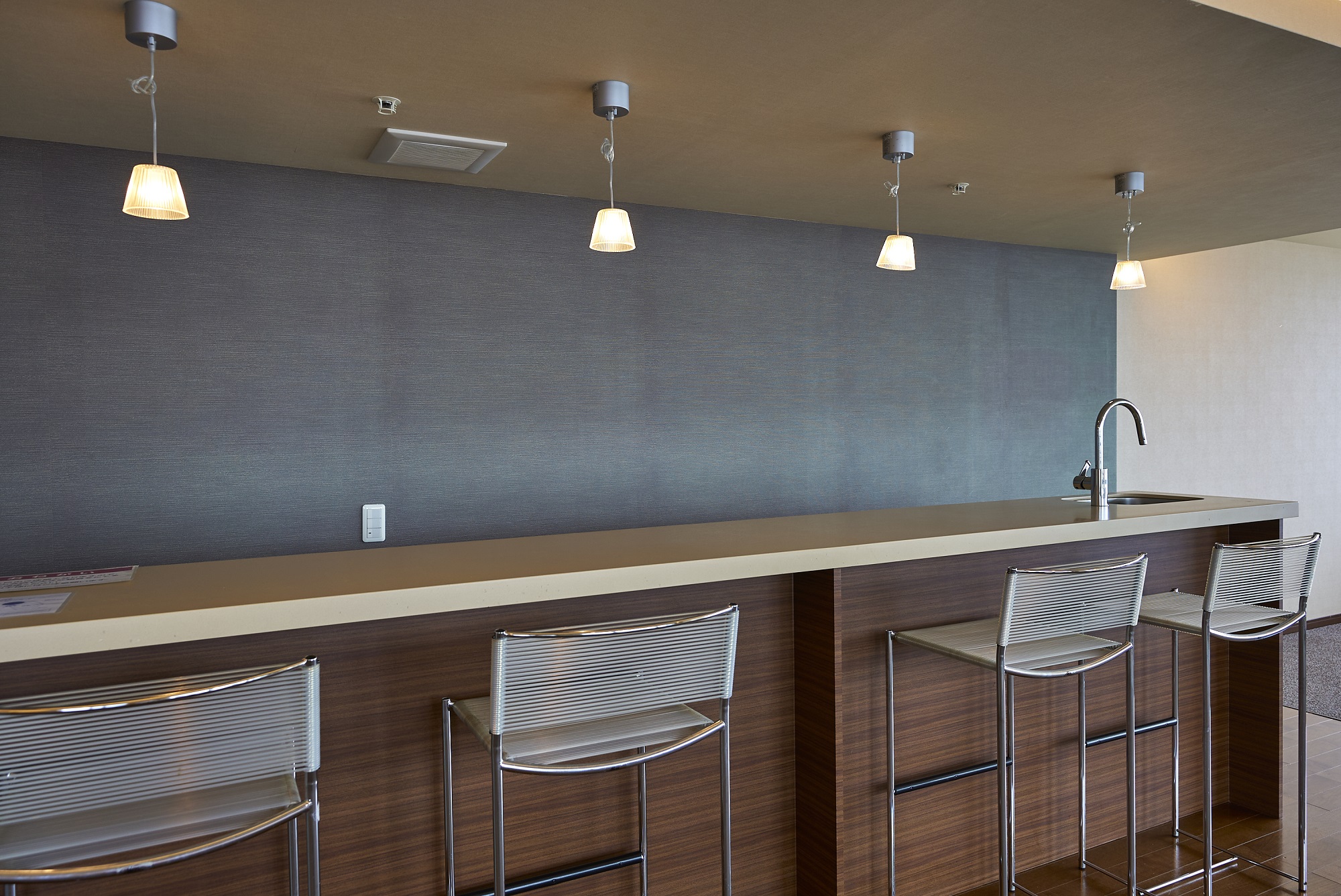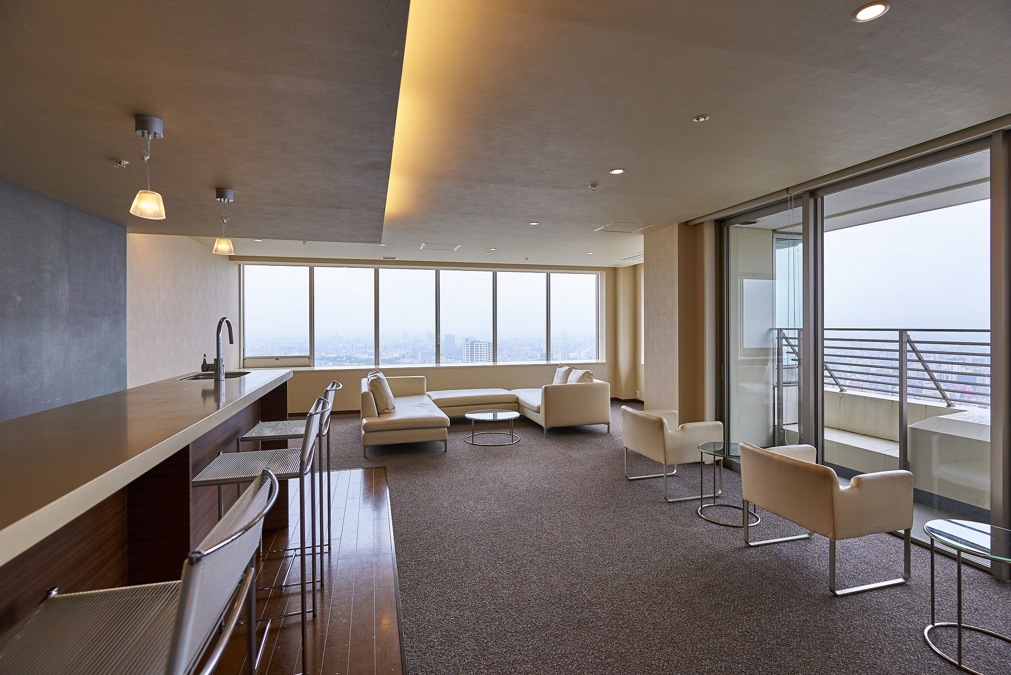 石貼りの床に美しいメタルスクリーンをしつらえたエントランスは、品格を感じさせる迎賓空間。扉の先には、円形のソファや丸く折り上げられた天井など、フォーマルな中にもどこか心和む雰囲気が漂うラウンジが用意されています。38階には、爽快な空を望む広々としたビューラウンジ。16階のゲストルームは、ベッドルームとリビンクのあるスイートルーム仕様です。開放感に満ちたくつろぎのひとときを味わえる、上質な共用空間が揃っています。