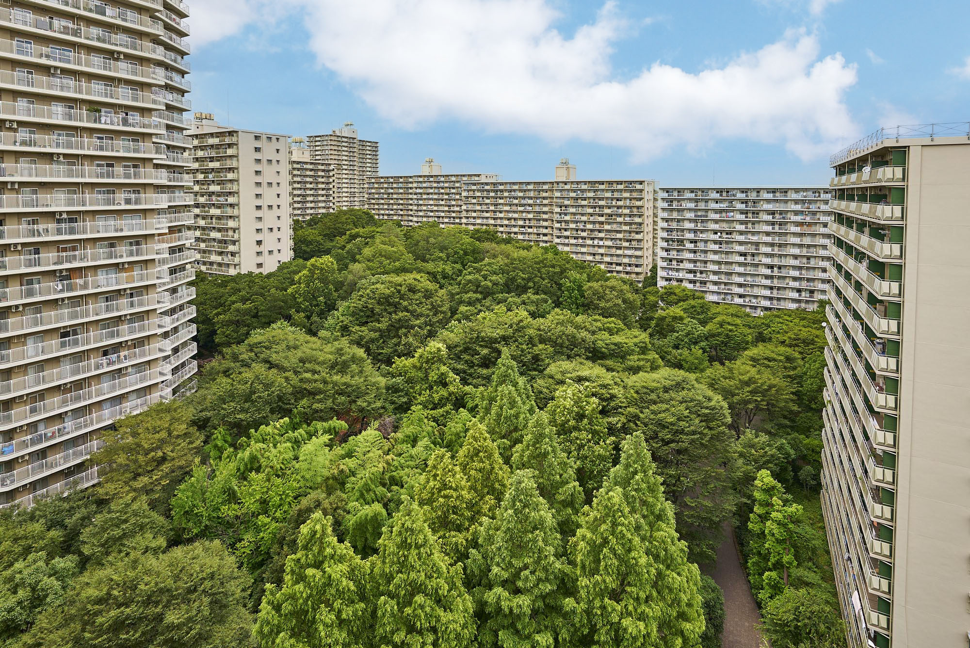 「サンシティ」は、1977年の分譲当時、約5万本もの植樹が施されました。今やその木々は森となって、A〜Jとサンシティ東の丘Ⅰ〜Ⅳの合計14棟もの建物を優しく包み込んでいます。広大な敷地にゆったりと配棟されているため、どの住棟も採光に優れ、陽光と緑溢れる暮らしを堪能できます。