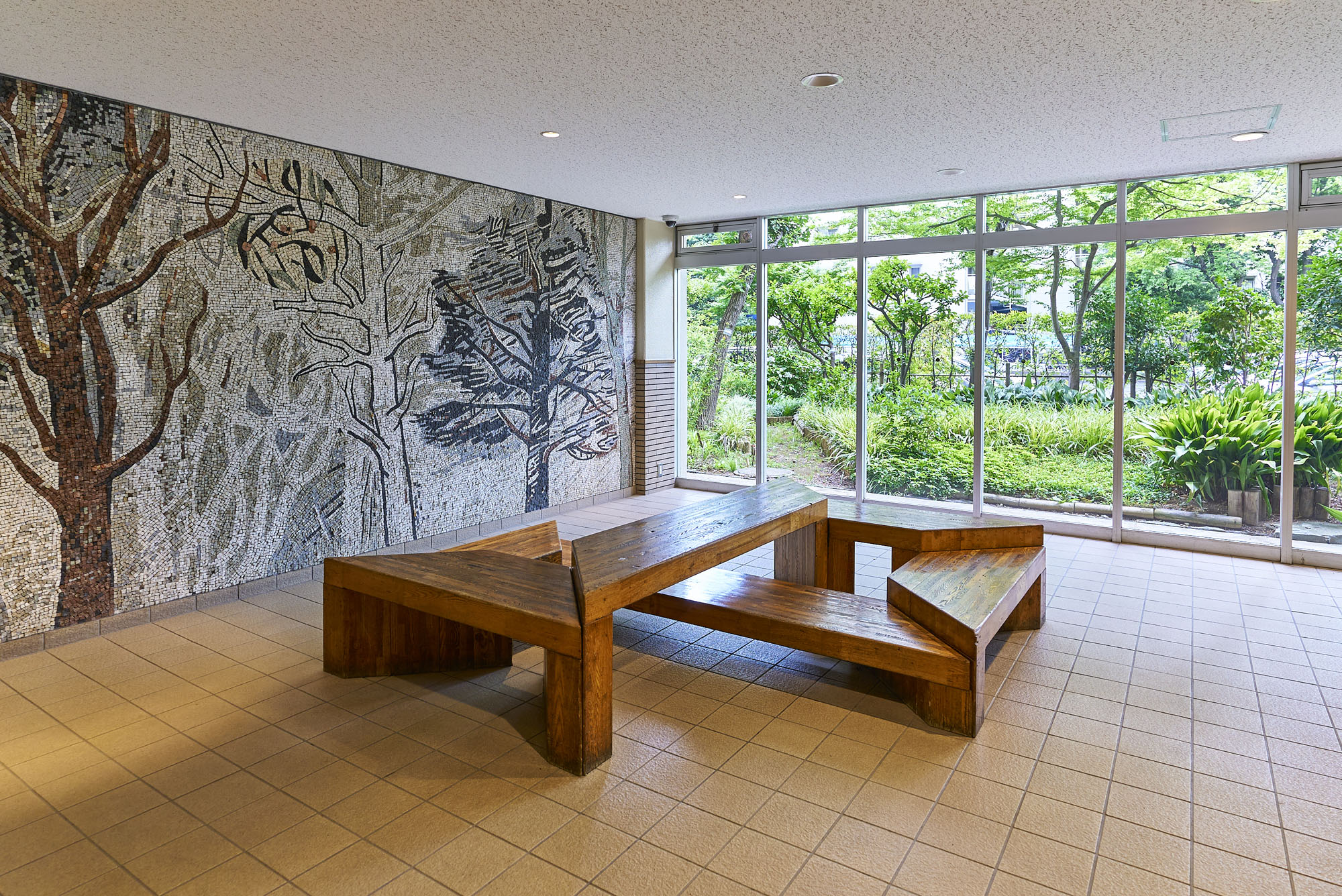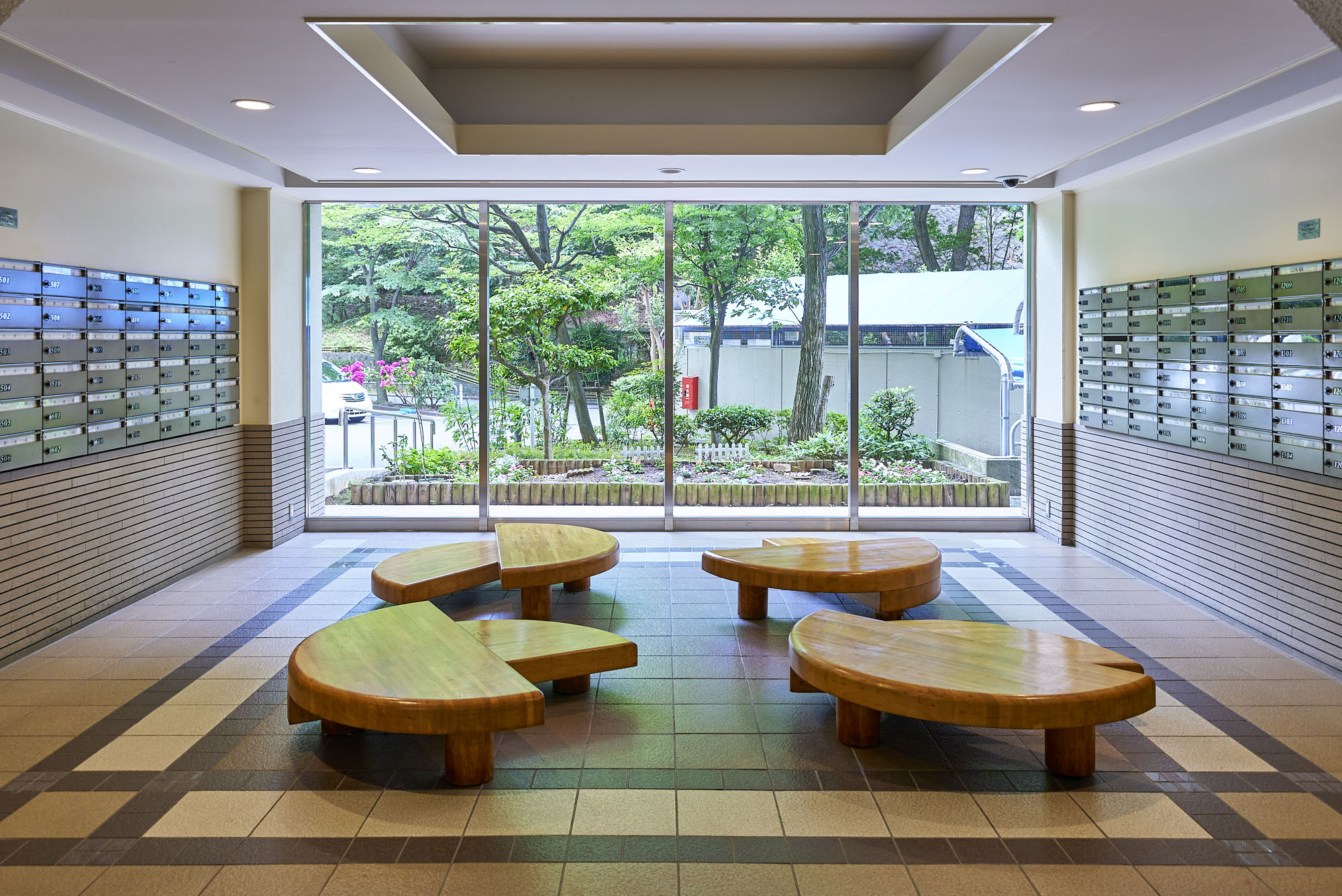 敷地内には、憩いやコミュニケーションの場として、多数の「広場」が設けられています。滝や小川などの景色を眺める広場、運動やバーベキューができる広場、子供が伸び伸びと遊べる広場。カルチャーセンターや子供用屋外プールなども設けられ、子供から大人まで楽しめる、まさにビッグコミュニティのためにつくられたガーデンです。また、豊かな自然は建物内へとその趣きを波及。各住棟のエントランスには木のアートや木製のベンチが置かれ、温もりある空間をつくりあげています。