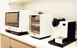 キッチン家電も見事に白で統一され、形も大きさも整然と