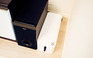 ごちゃつき防止のケーブルボックスも白ですっきり