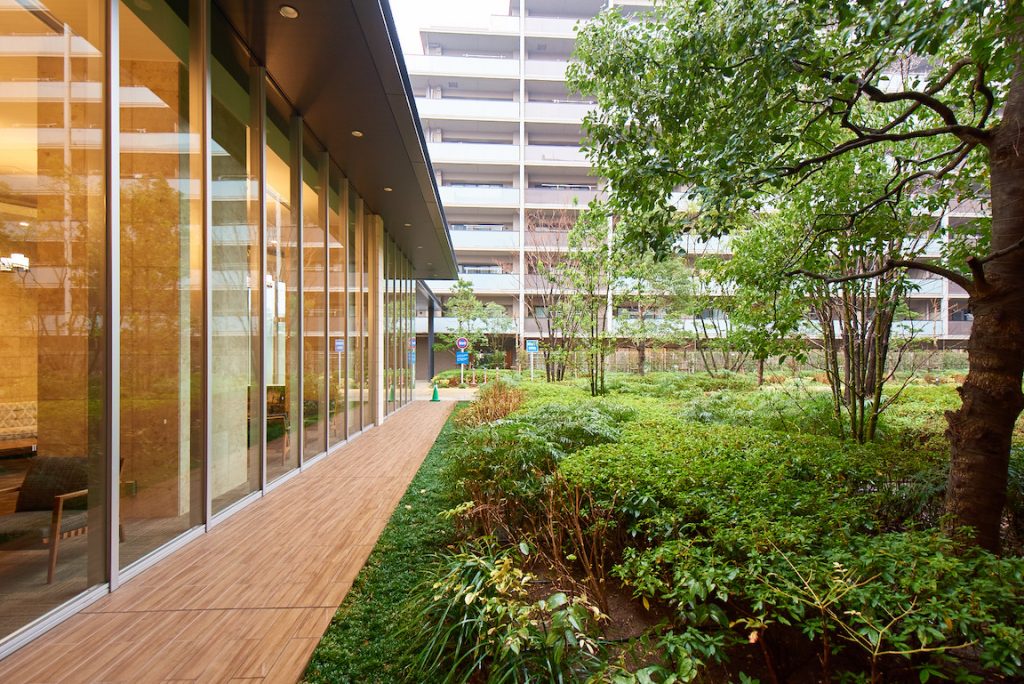 デザイン こだわったのは、いつも緑を感じるくらし。 現地に隣接する袖ヶ浦第2緑地のほか、大小さまざまな公園、面積約83haの稲毛海浜公園、海沿いに広がる松原など。検見川浜の暮らしと豊かな緑は常に密接な関わりを持ち続けてきました。〈ザ・レジデンス検見川浜ガーデンズ〉では、この街にふさわしく、“豊富な緑量”にこだわったランドスケープをデザインしました。