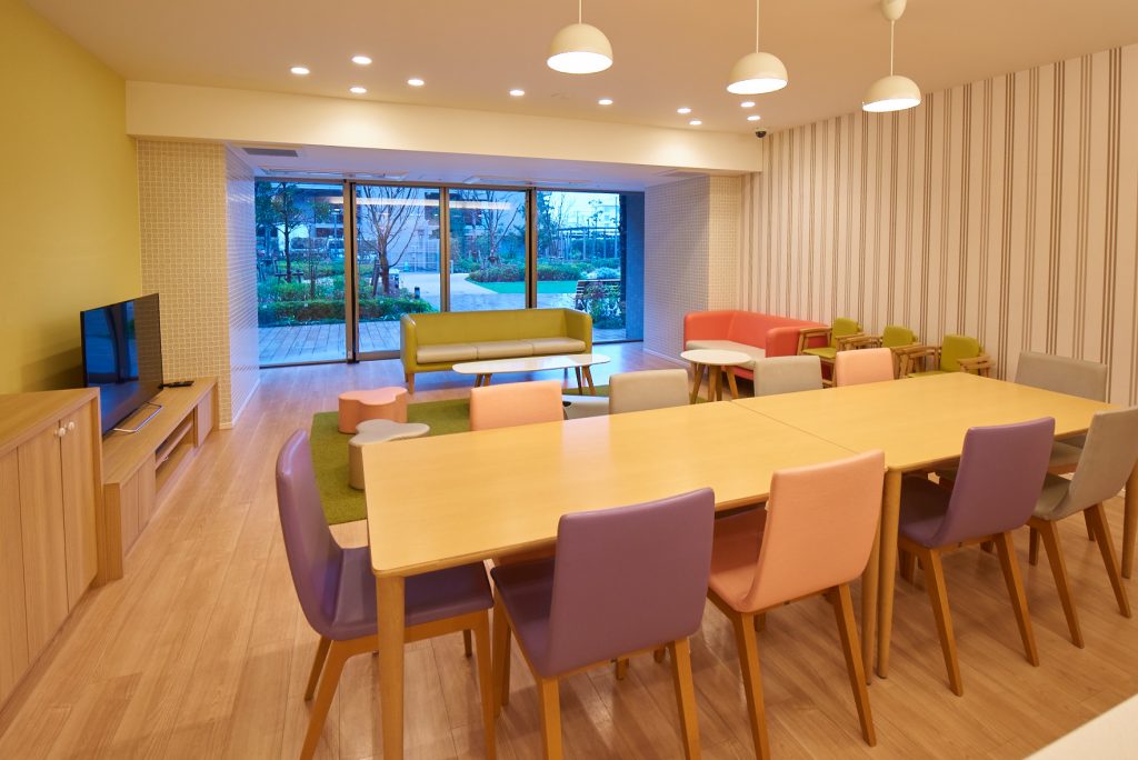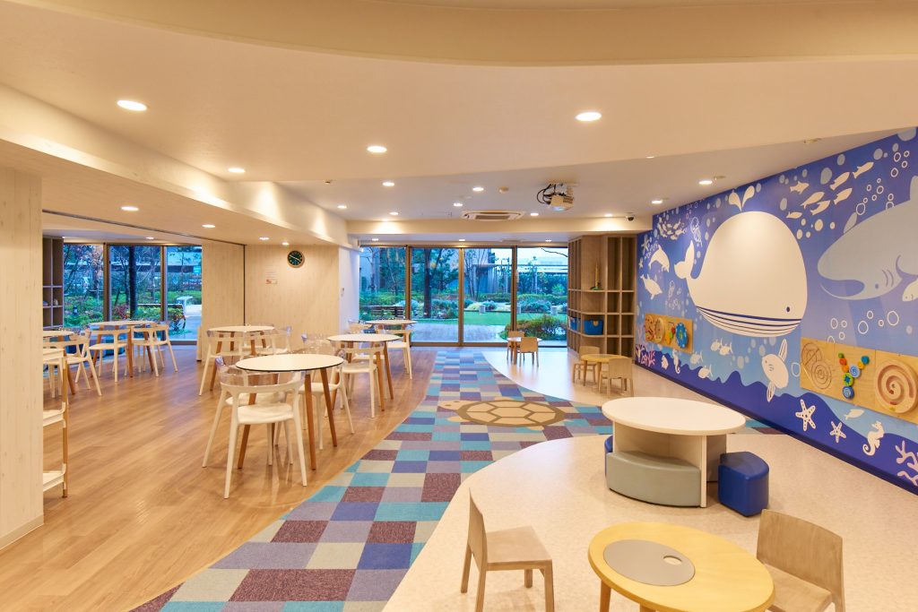 広々としたスペースに多彩な機能を設けた「ハミングラウンジ」は、まさに大規模プロジェクトならではの共用施設です。遊び方とお子様の世代に応じてさまざまなゾーンを配置。また、お子様を見守りながらゆったりと寛げる大人のためのカフェテーブルエリアもご用意しました。