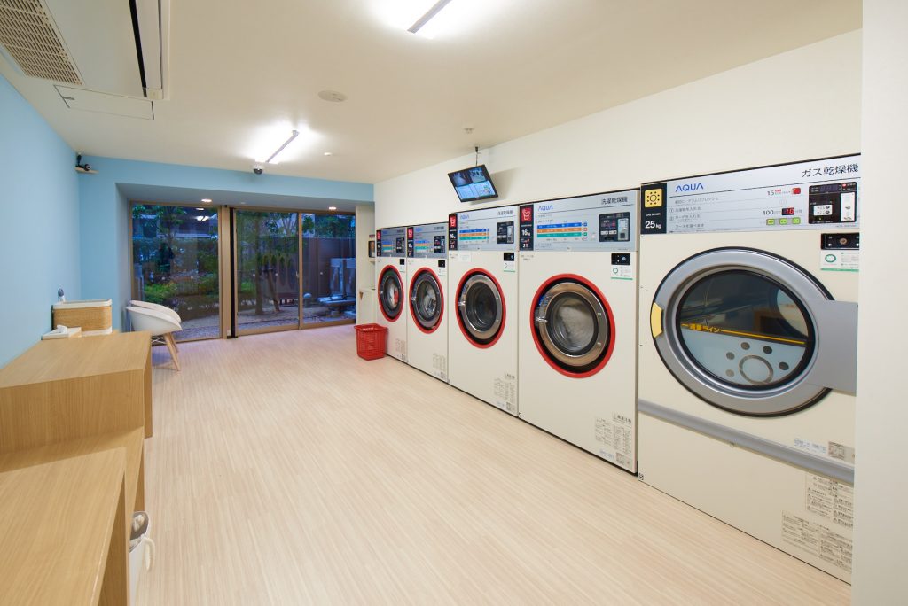 靴や毛布も洗える「ランドリールーム」。機器の空き状況を携帯電話やPCで確認できるので便利。