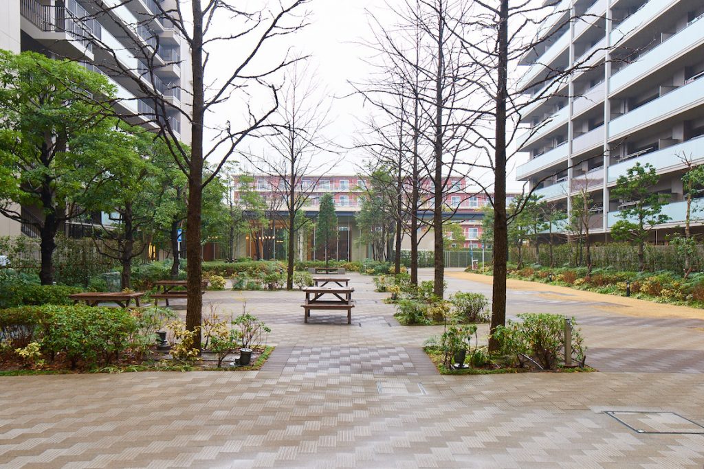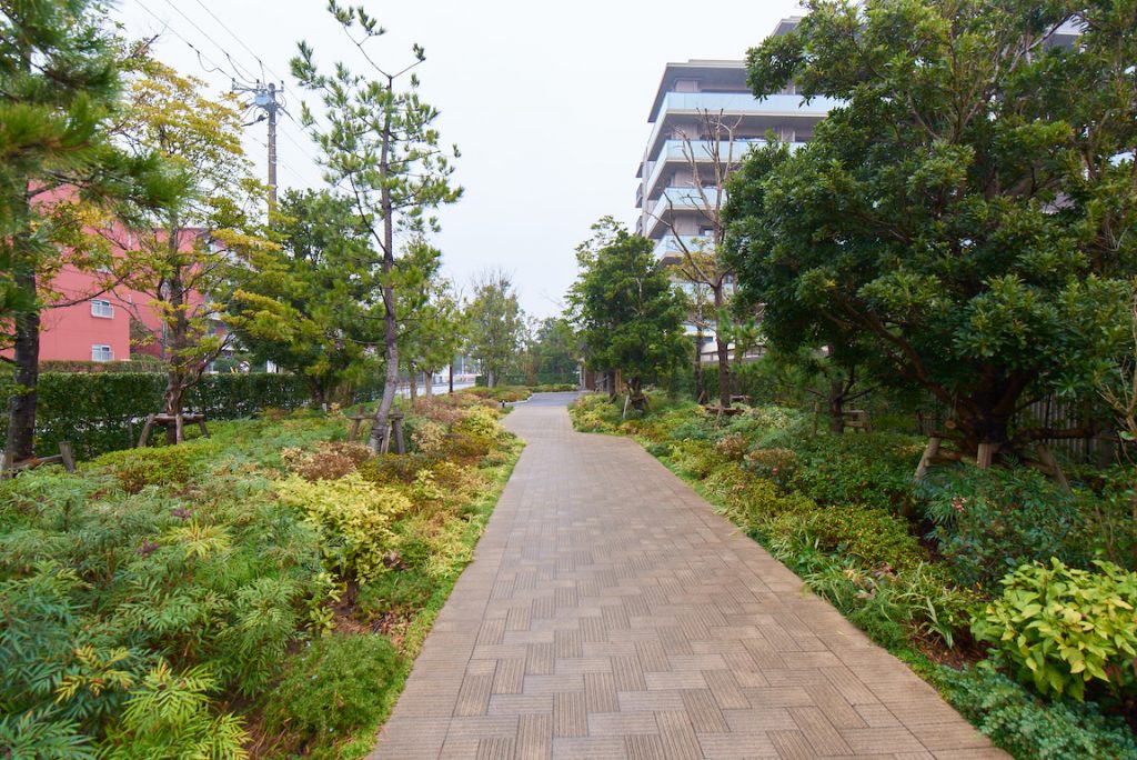 この街周辺の海岸風景を受け継ぐガーデン。黒松が街並みに趣深さを添えます。