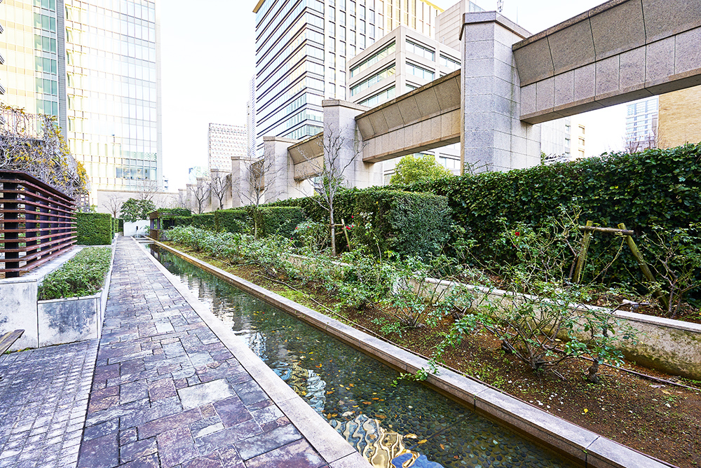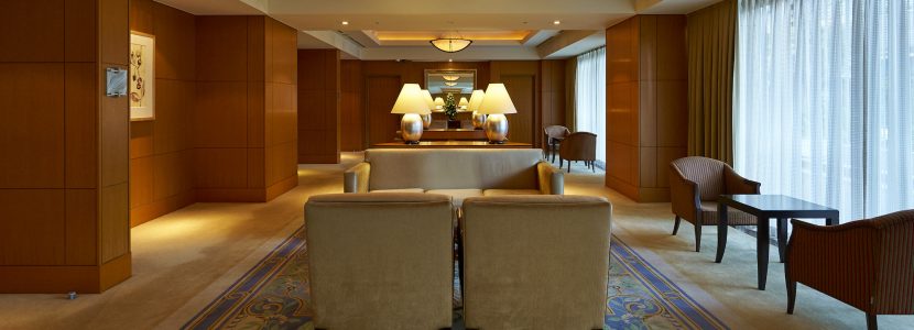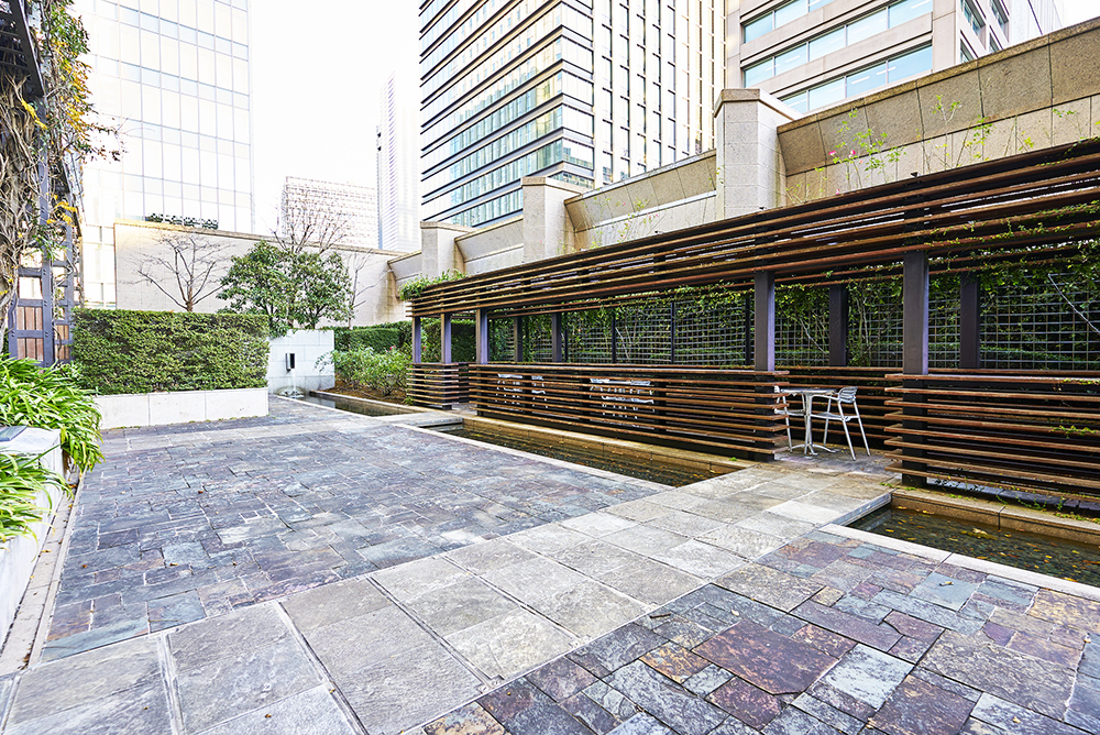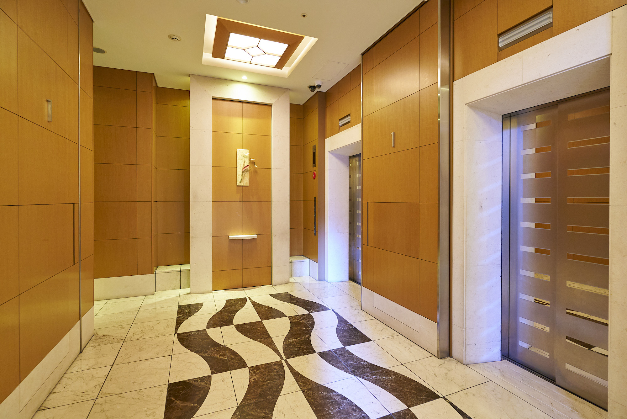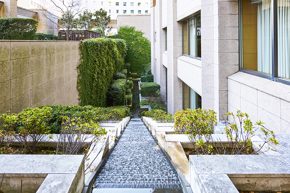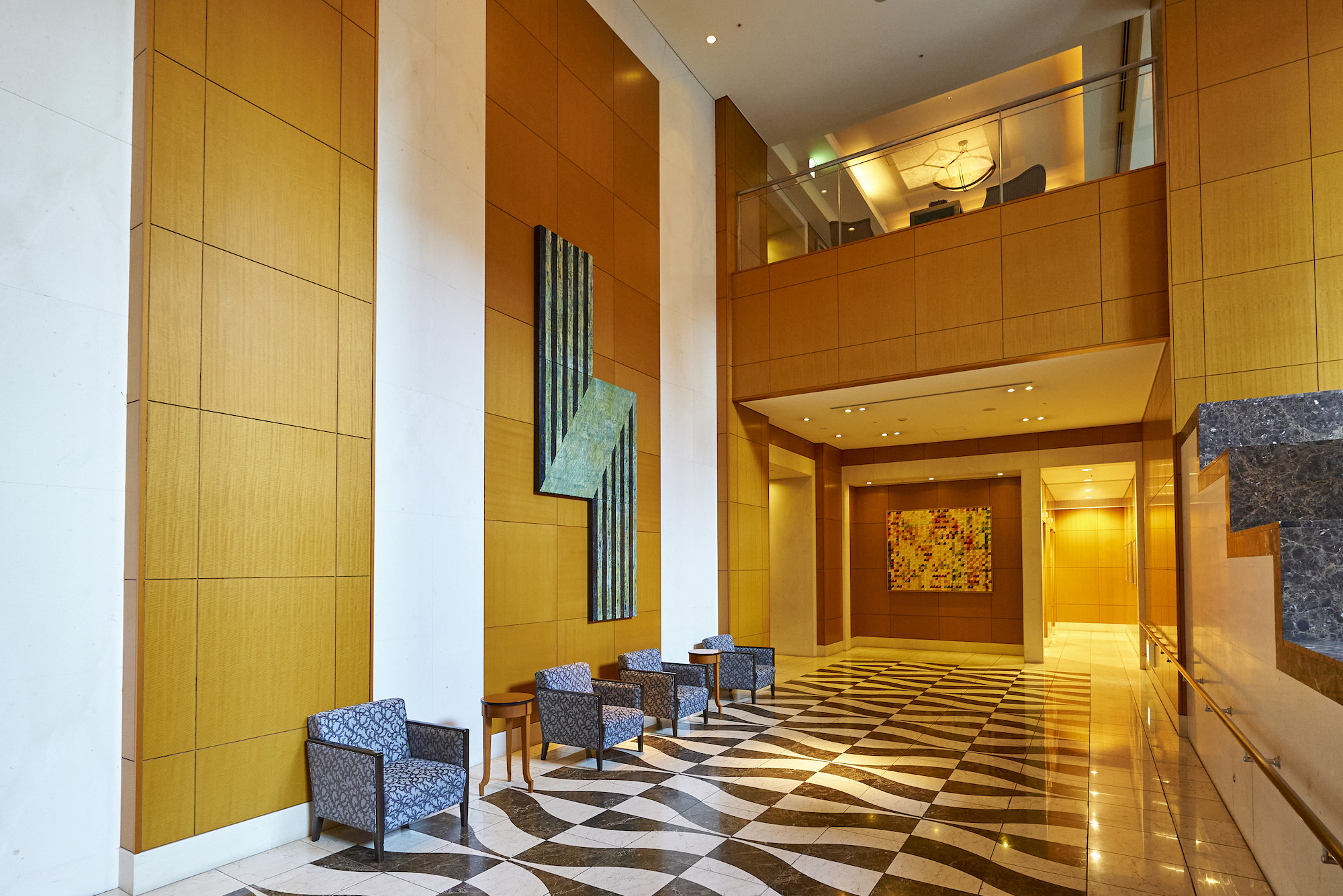 「東京1区」が持つ歴史の面影を現代的な造形美で蘇らせる——そのコンセプトを最も象徴的に表したのがグランドエントランスです。堂々とそびえ立つ約12mのエントランスゲートには、格調高くシンメトリックに配された天然石造りの4本の列柱と、クラフト感あふれるアイアンワークス。大きく張り出したガラスのキャノピーと、アーチ型ウインドウが華やかさを演出し、両側の花壇がいっそうの華麗さを引き立てます。開放感と水のせせらぎがプライベート空間へと誘うプレリュードホールを抜けると、その先にはクラシックホテルのような上質な落ち着きと近代的なセンスが融合した、壮大なグランドロビーが広がります。大階段を上がった2階はコモンスペースとなっており、大きな窓越しに美しい庭園を望む「ガーデンラウンジ」や大切なお客様を迎えるための応接室「フォーマルサロン」、会議やパーティーなど様々な用途に対応する「パークタワーホール」が備えられています。