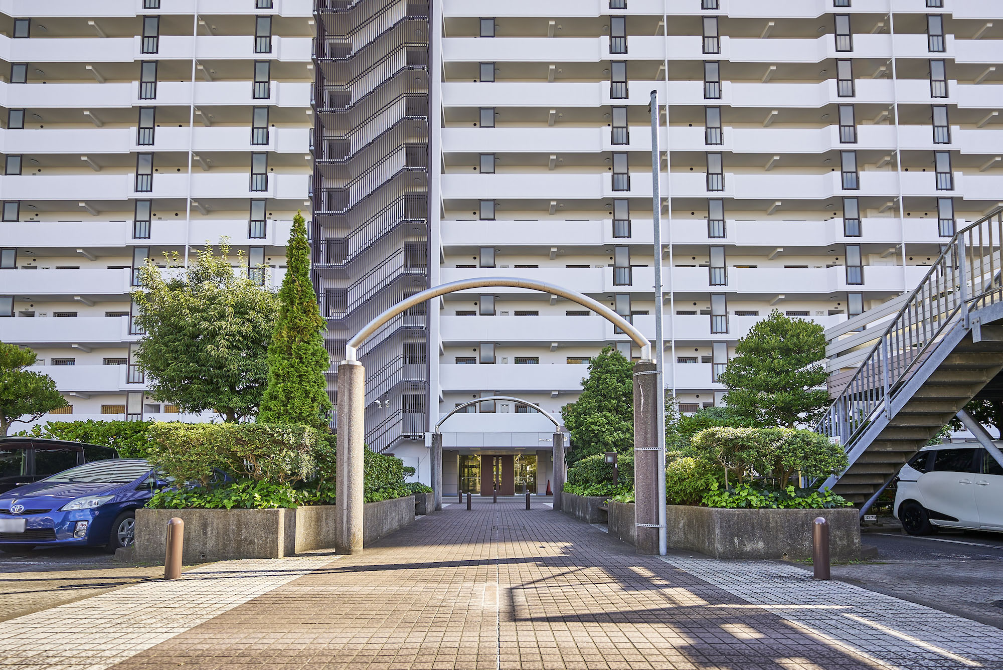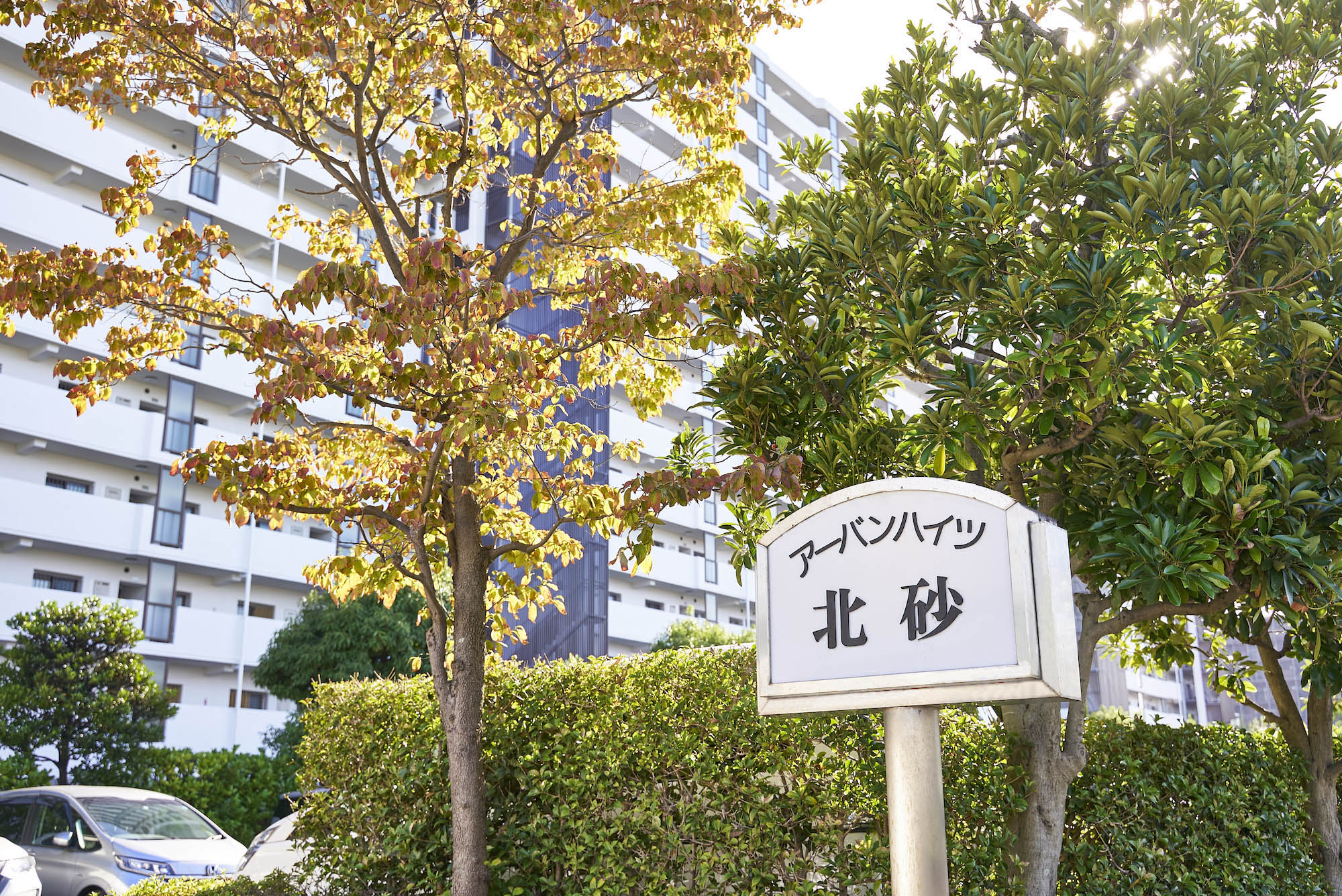 小名木川沿いに位置する「アーバンハイツ北砂」は、地上15階建て、総戸数304戸の大規模レジデンスです。全戸南向きで、南側は区立中学校のため、日当たりが良く眺望が抜けています。外観は白を基調とし、堂々としたフォルムで落ち着きある佇まいです。白い外壁は大規模修繕を経て、美しく青空に映えています。敷地内には植栽も多く、丁寧に整備されており、緑と潤いの溢れる穏やかな雰囲気が漂っています。