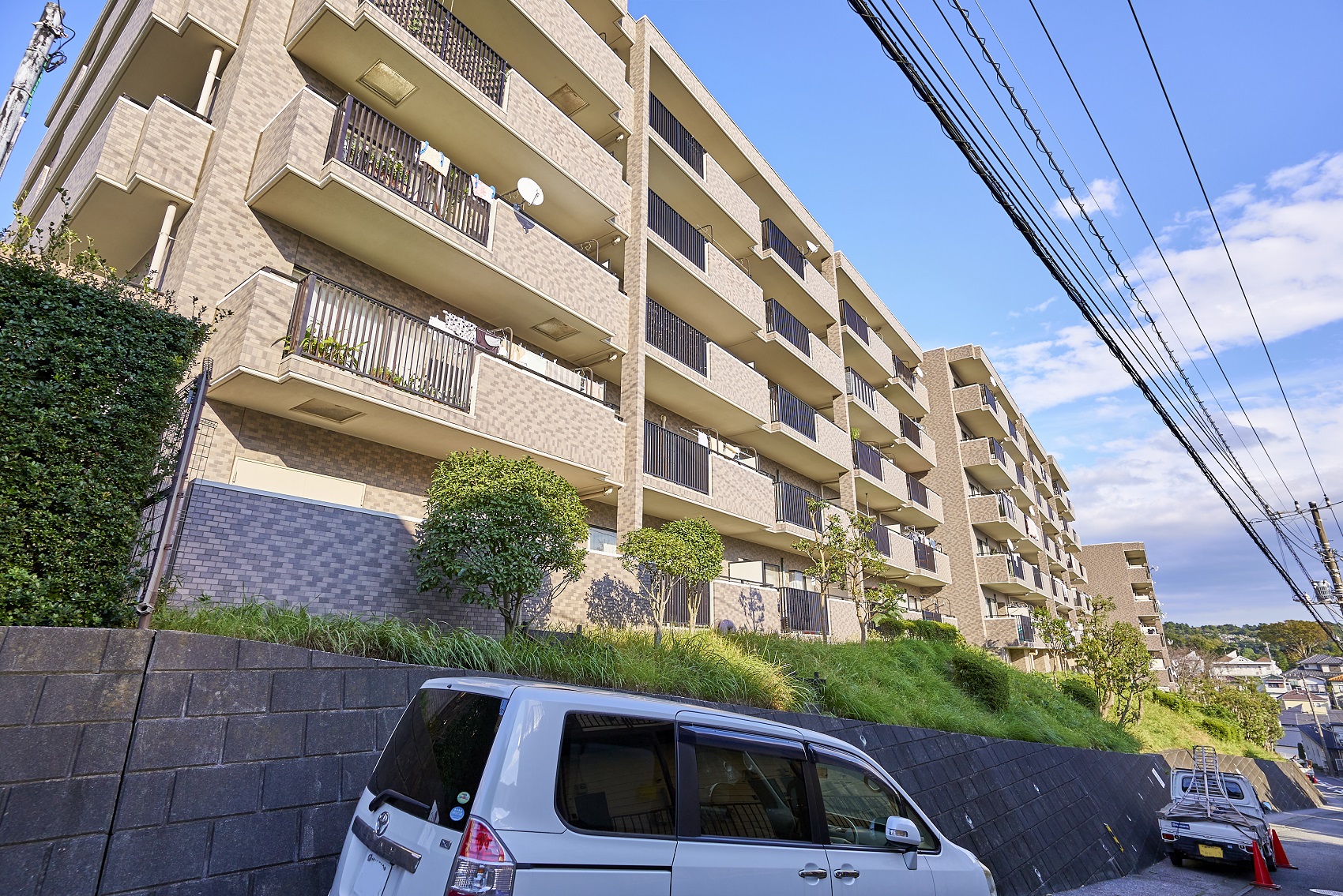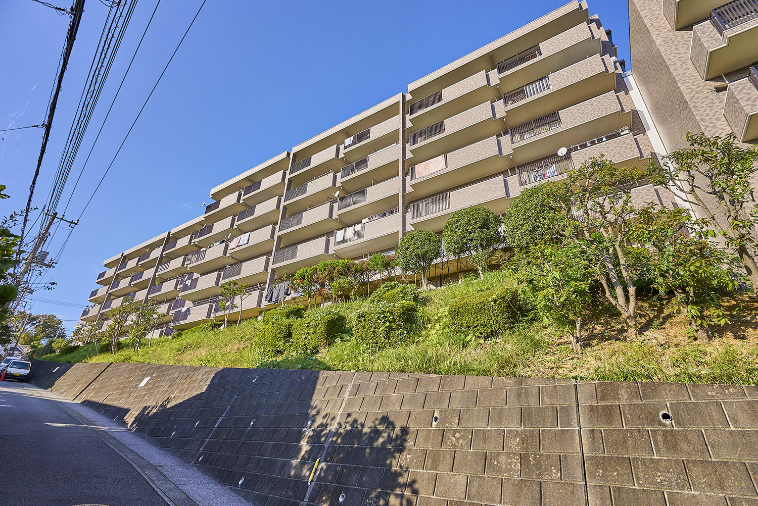 「アーバンクレスト横浜上永谷」は、光と風に包まれた高台の一画に位置します。敷地の形状に合わせて雁行された美しいフォルムに、外観は落ち着きあるブラウン系のタイル貼り。3種類の濃淡の差のあるタイルを使用することにより、温かみのある雰囲気を生み出しています。そのデザインはシャープで重厚。永住の住まいにふさわしい優しさも織り込んでいます。