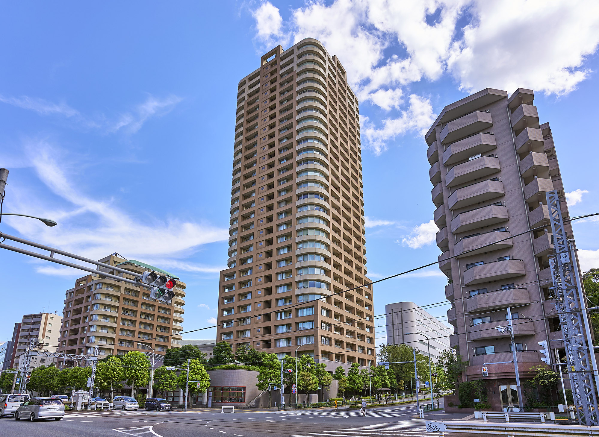 「アス西早稲田」は、「西早稲田パーク・タワー」「西早稲田東ウイング」「西早稲田南ウイング」の3棟からなる大規模開発街区の総称です。3棟はいずれもオレンジ色のタイル貼りに、エントランスや頭頂部のキャノピーのグリーンをアクセントとした外観デザインを共有しています。特に、地上31階建ての西早稲田パーク・タワーは、西早稲田のランドマークとして堂々と聳え建ち、隣接する新宿区立甘泉園公園の深い緑とのコントラストが、美しい景観を創り上げています。