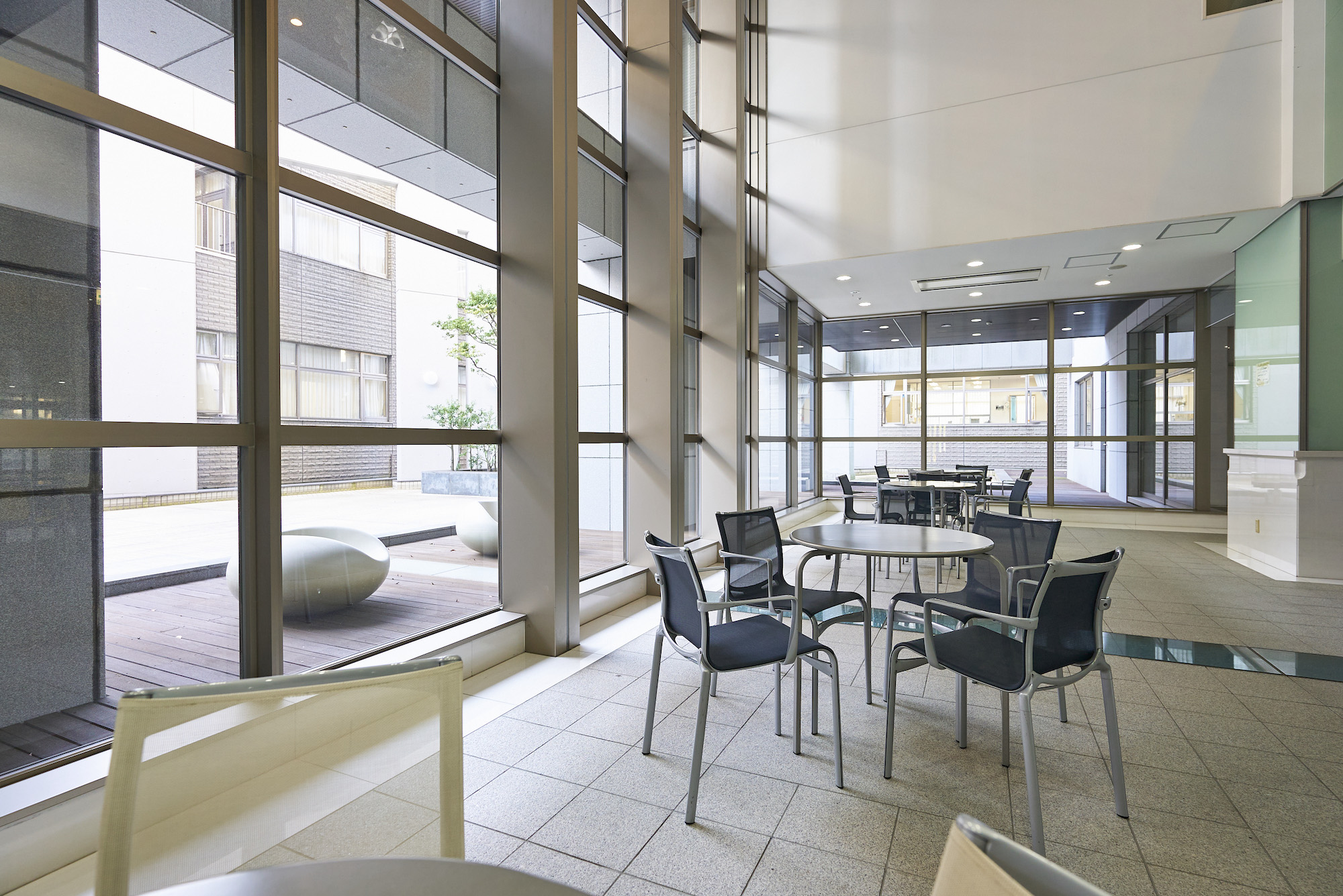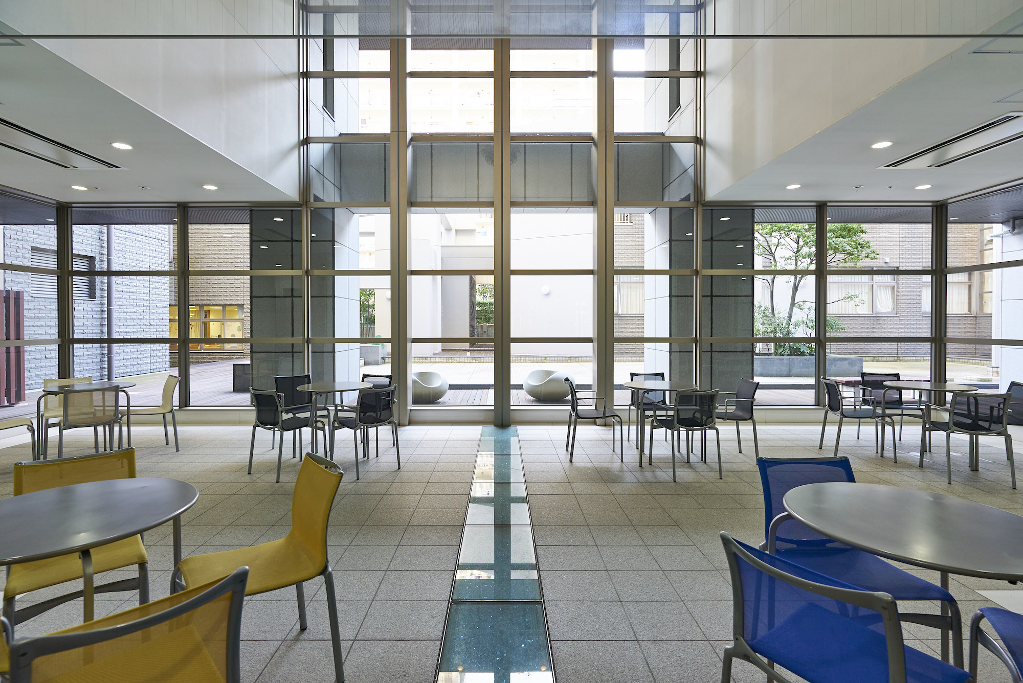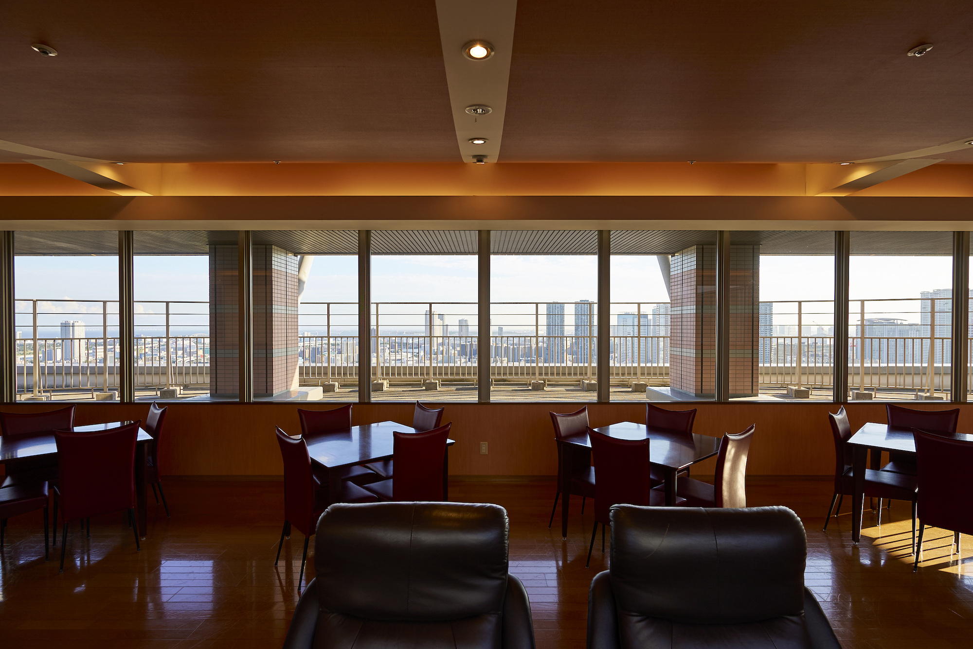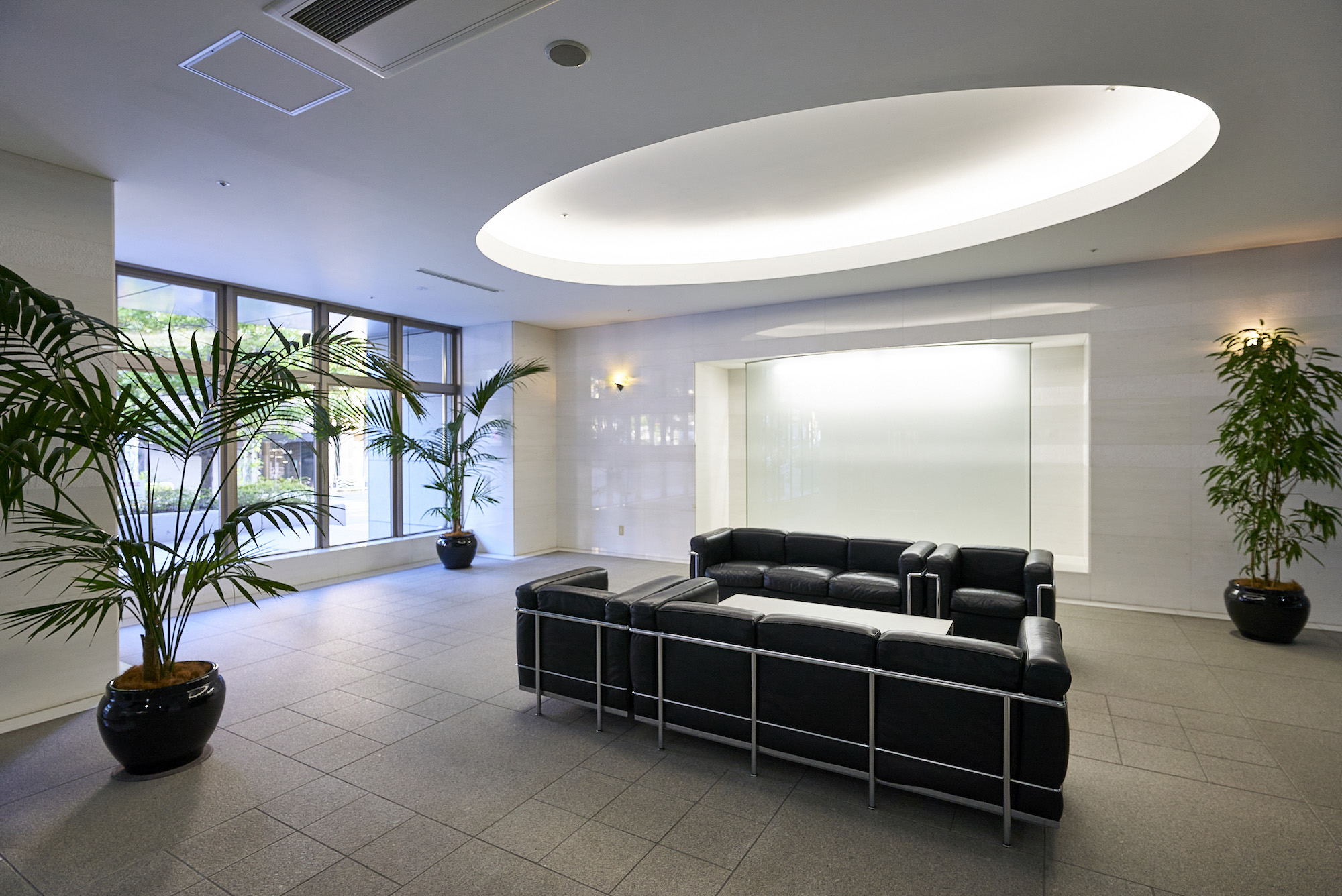噴水をモチーフにしたオブジェのある中央吹き抜けの「光庭」を中心に、ガラス張りで開放感のある1階ラウンジや、吹き抜け2階部分に広がるテラス、大正モダンが漂う約210㎡の集会室、2つのゲストルームなど、充実した共用スペースが配されています。シースルーエレベーターで35階まで昇れば、都心を一望できるビューラウンジも完備。江戸の文化が残る街並みと、都心の遠景、江戸と東京を同時に見渡せる至福感は、「ウエルタワー深川」でこそ味わえます。