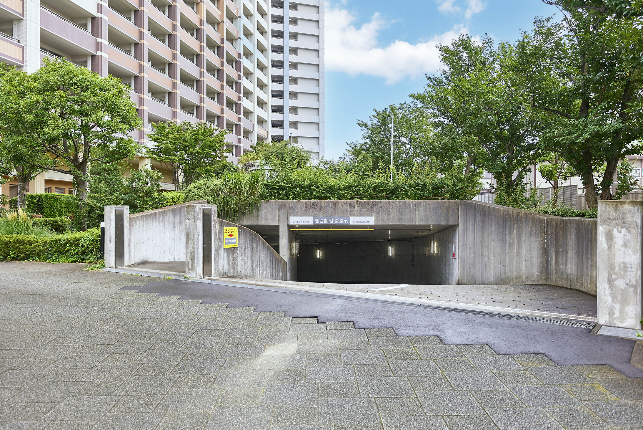 地下の機械式駐車場に170台分、2つのタワーパーキングにそれぞれ200台分と230台分のスペースを完備。洗車スペースも併設しています。
