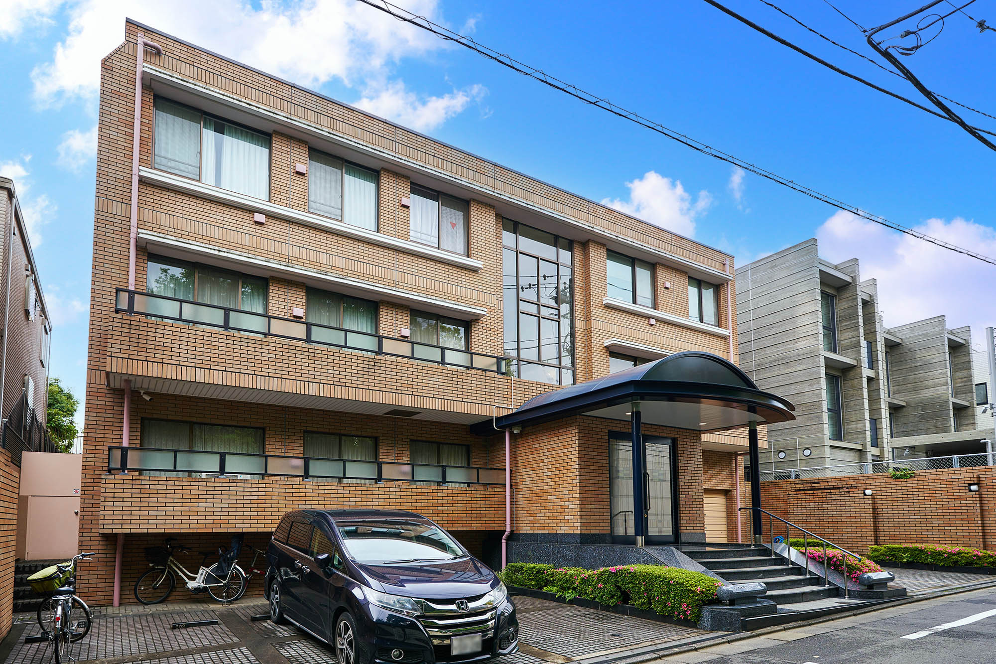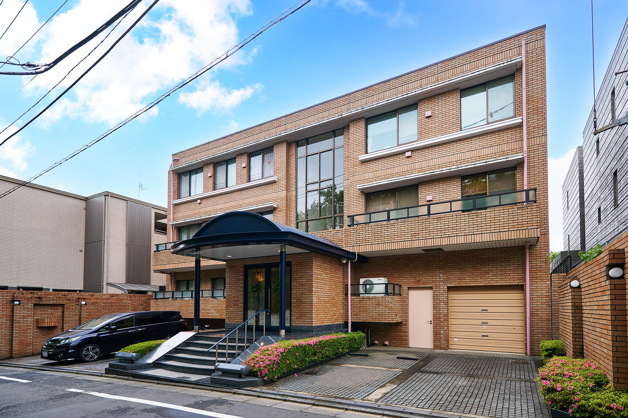 山の手の邸宅地として知られる渋谷区西原三丁目に位置する「代々木西原パーク・マンション」。緑濃い邸宅地に美しく映える、低層3階建ての瀟洒なフォルム。建物ファサードを意識し、意匠的にも趣向を凝らしたエントランス、そして高級タイルで装った美しい佇まいは、気品漂う街並みに相応しい風格を漂わせています。